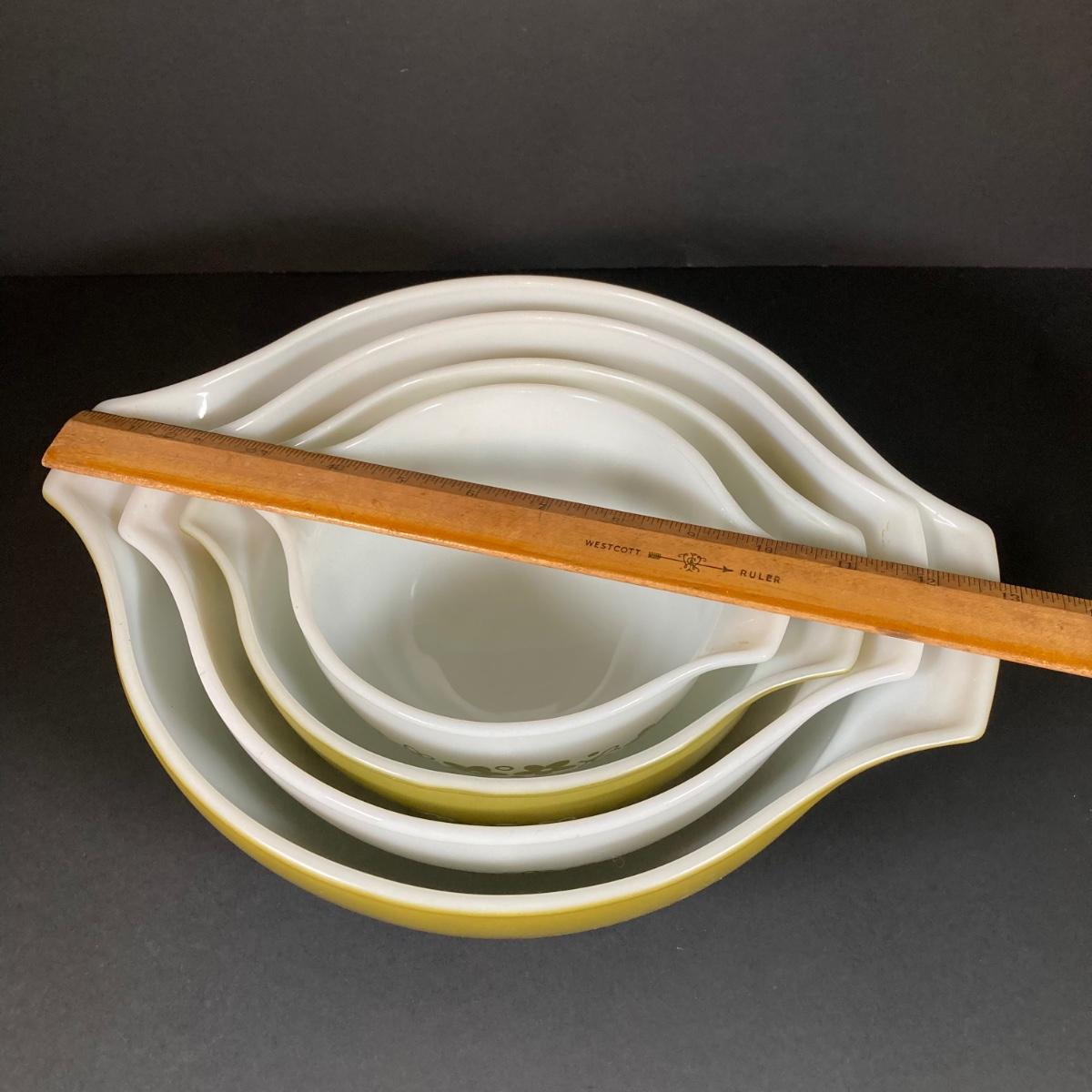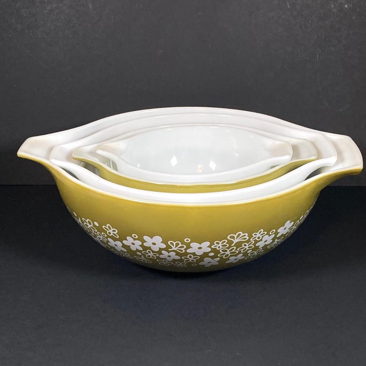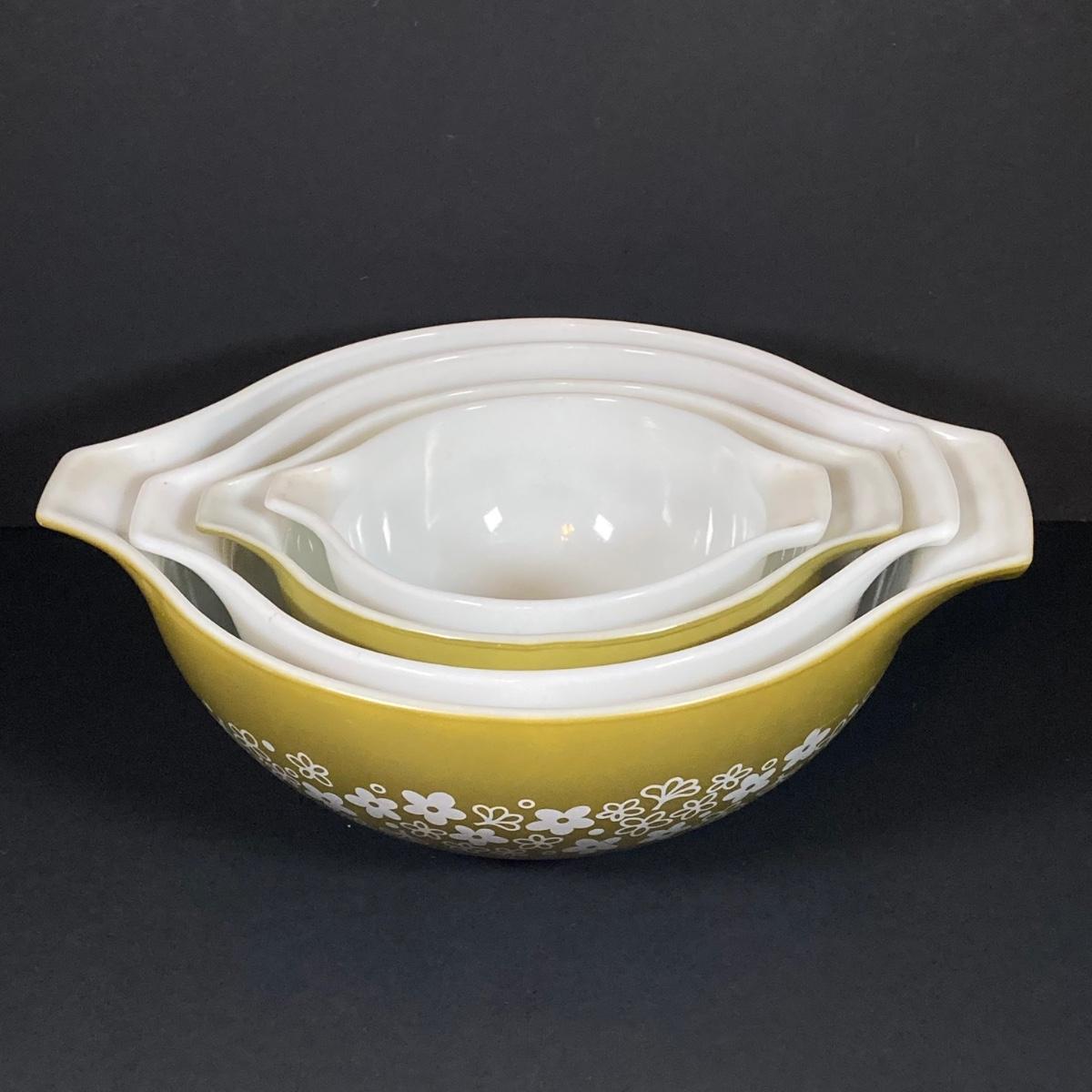 LOT 246: Vintage Four Piece Pyrex Spring Blossom Cinderella Mixing Bowl Set