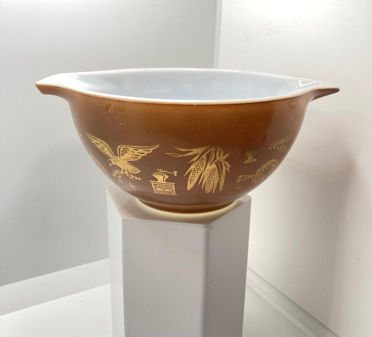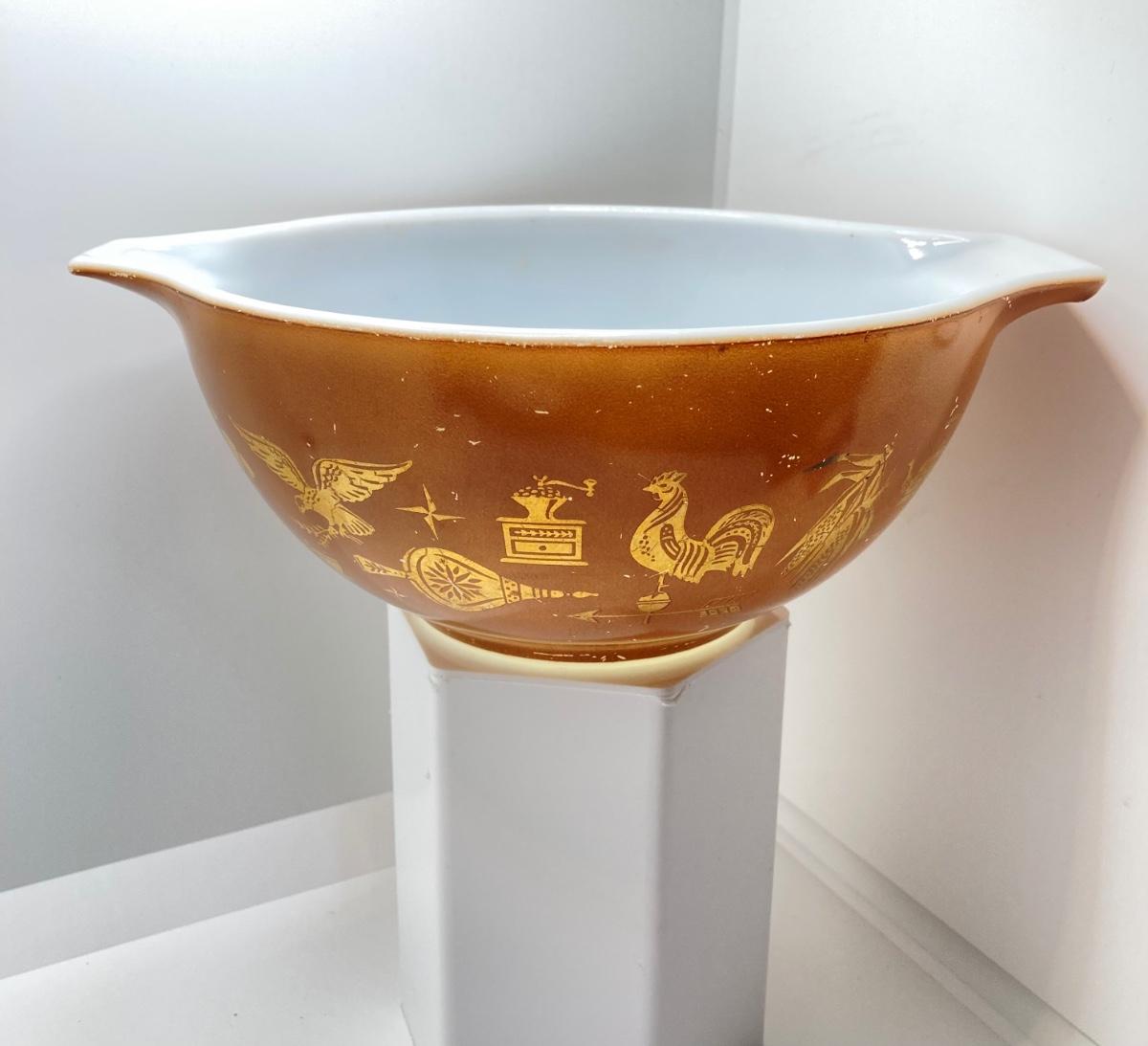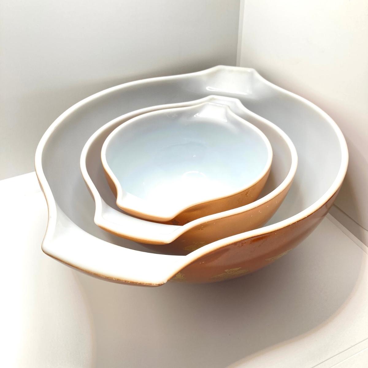 LOT 252: Three Piece Early American Pyrex Cinderella Mixing Bowl Set