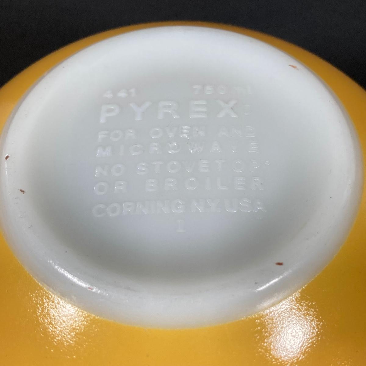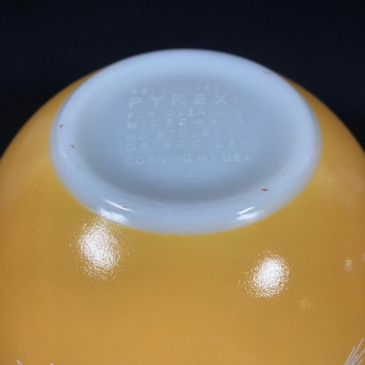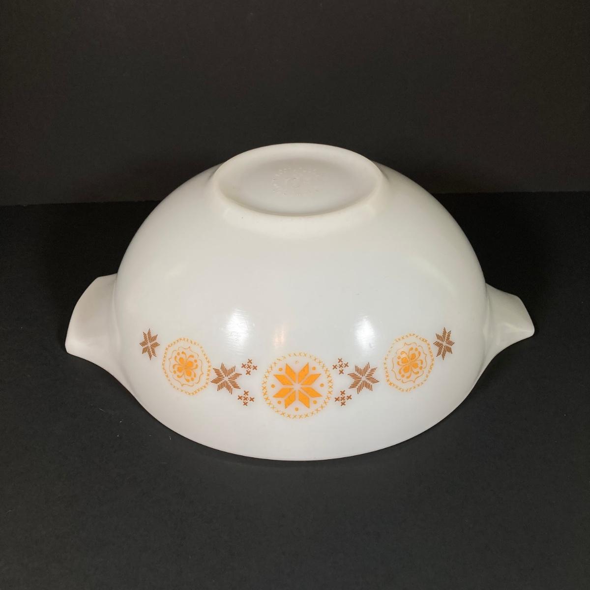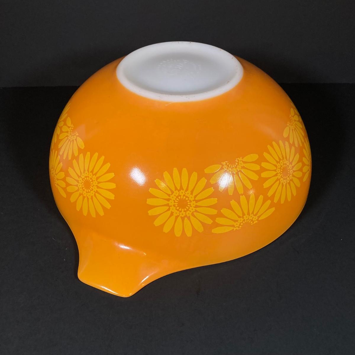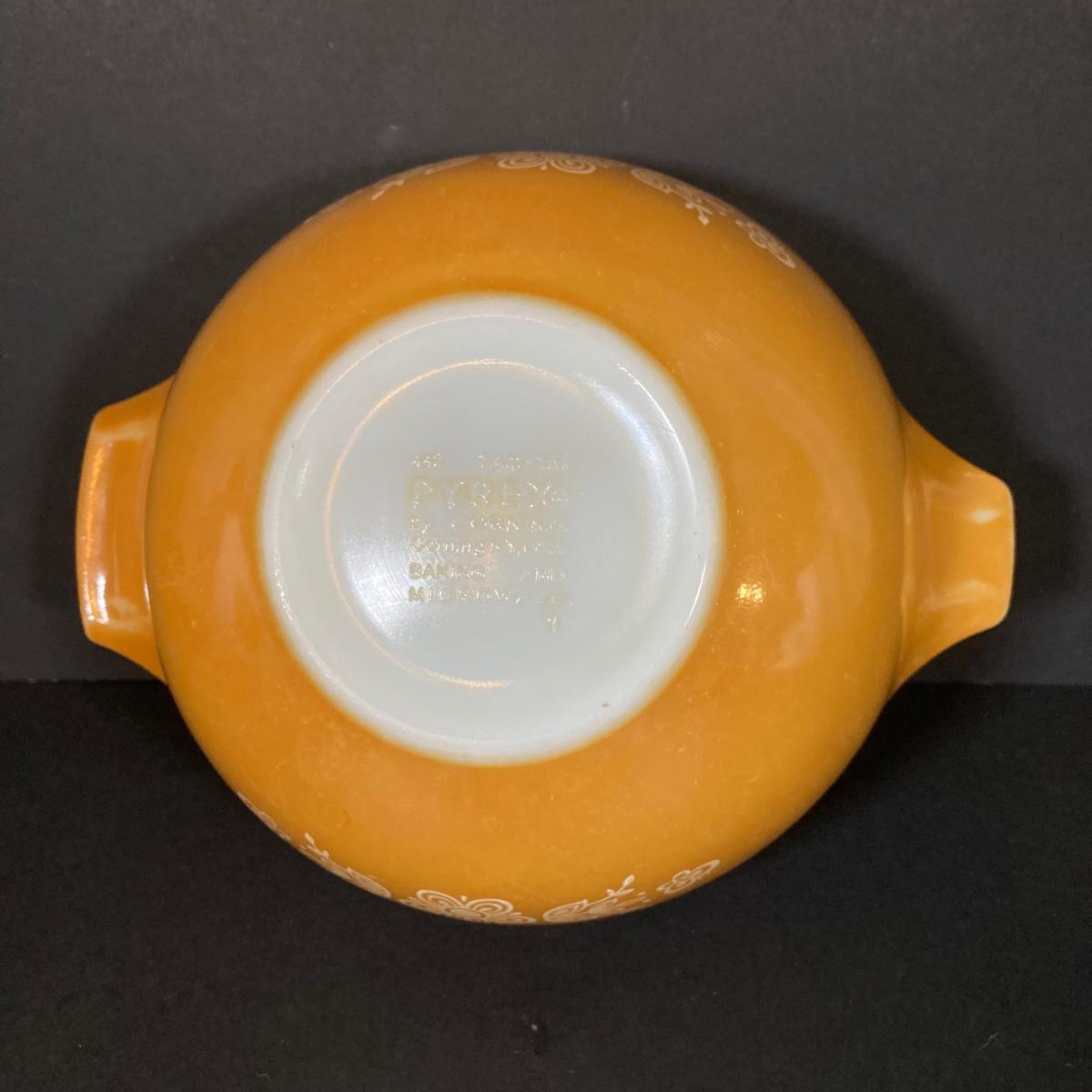 LOT 253: Four Pyrex Cinderella Mixing Bowls - Sunflower Daisy Citrus, Town and Country and Butterfly Gold