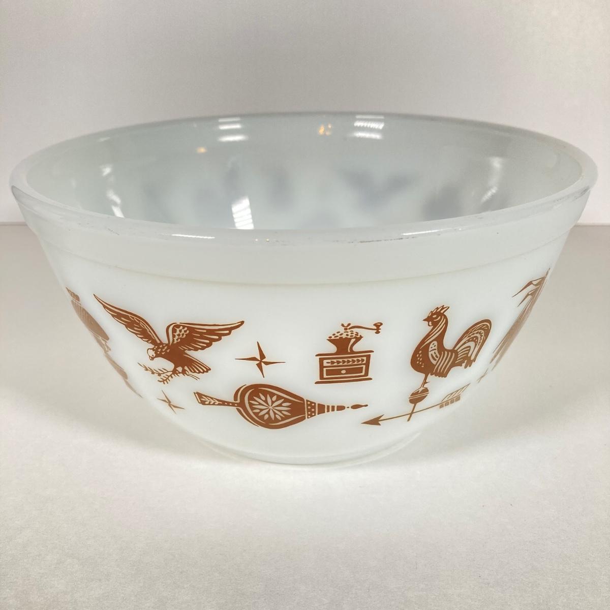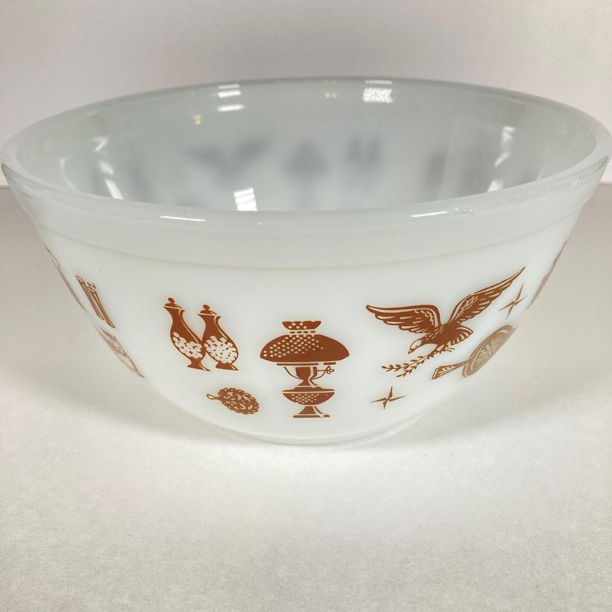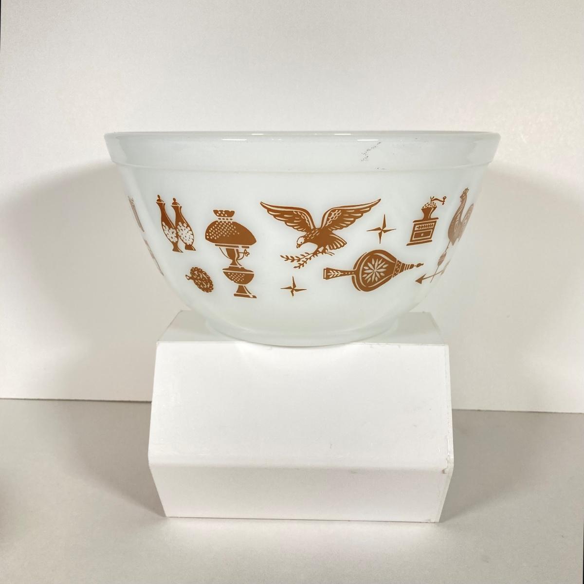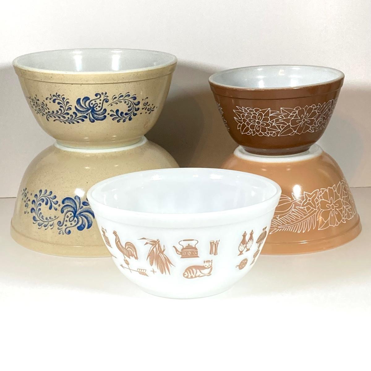 LOT 255: Collection of Five Pyrex Nesting Bowls - Early American, Homestead and Woodland Patterns