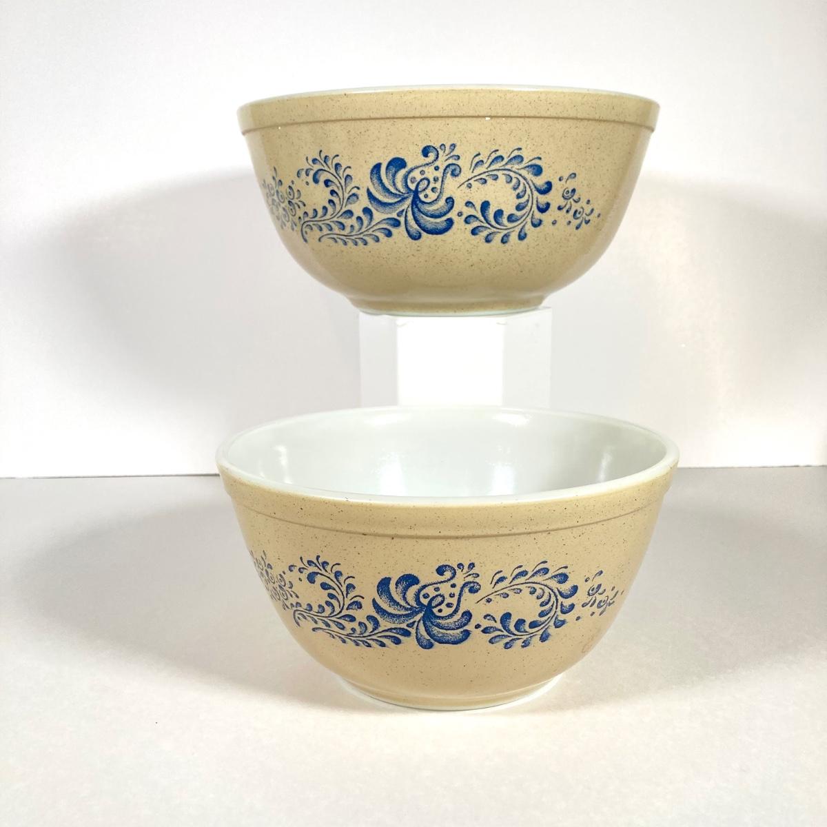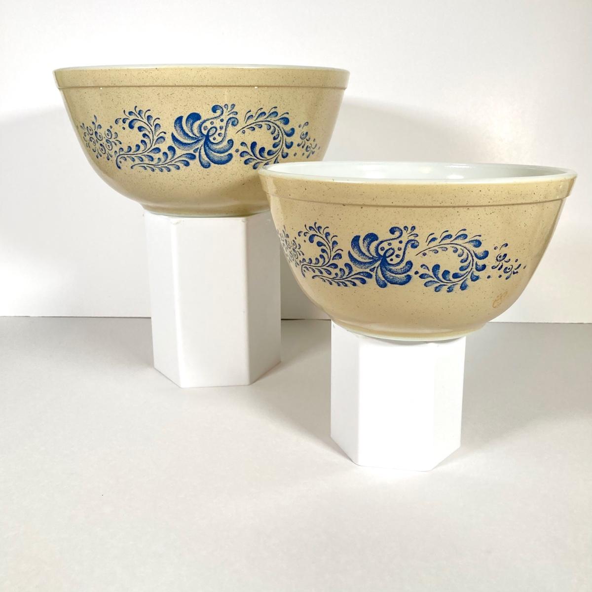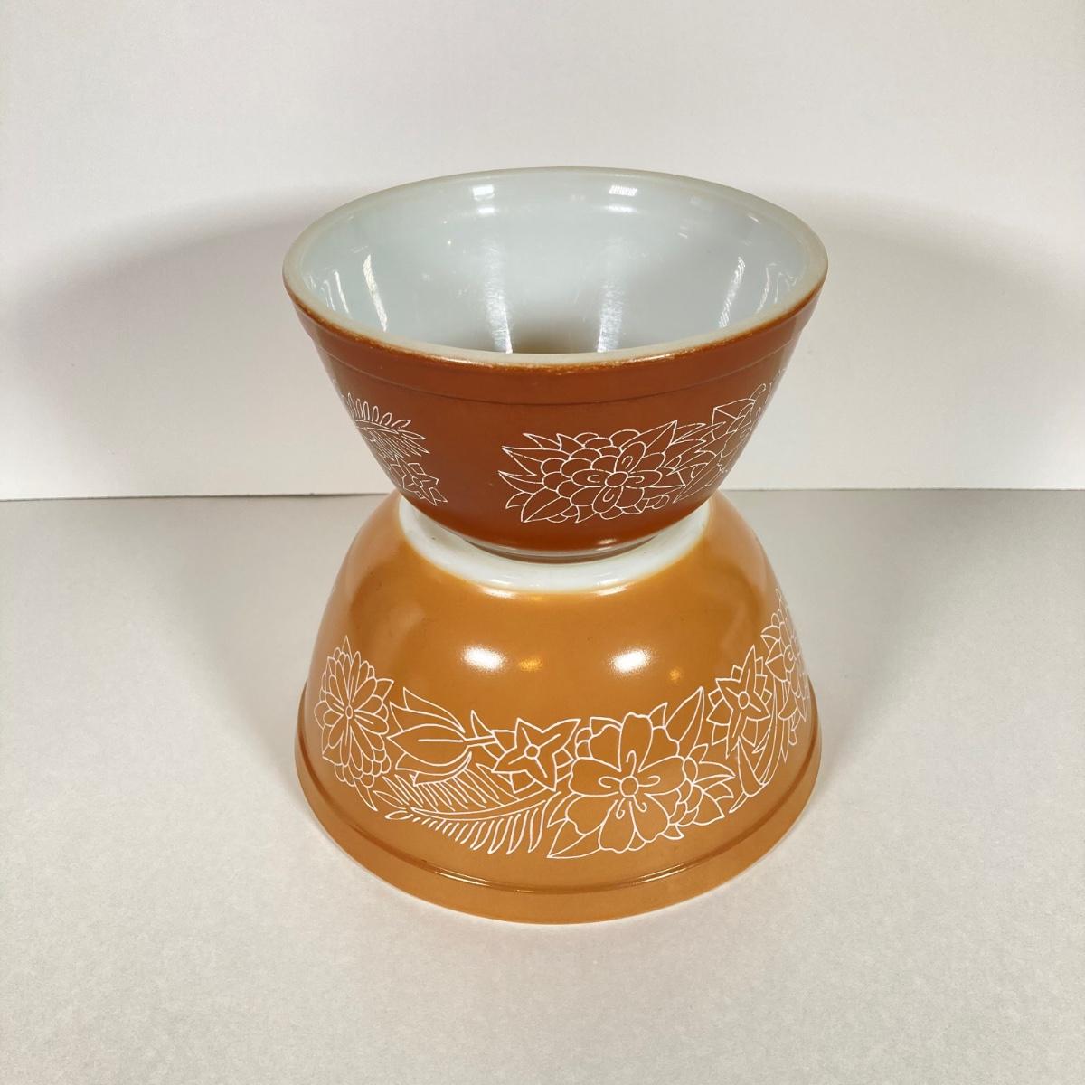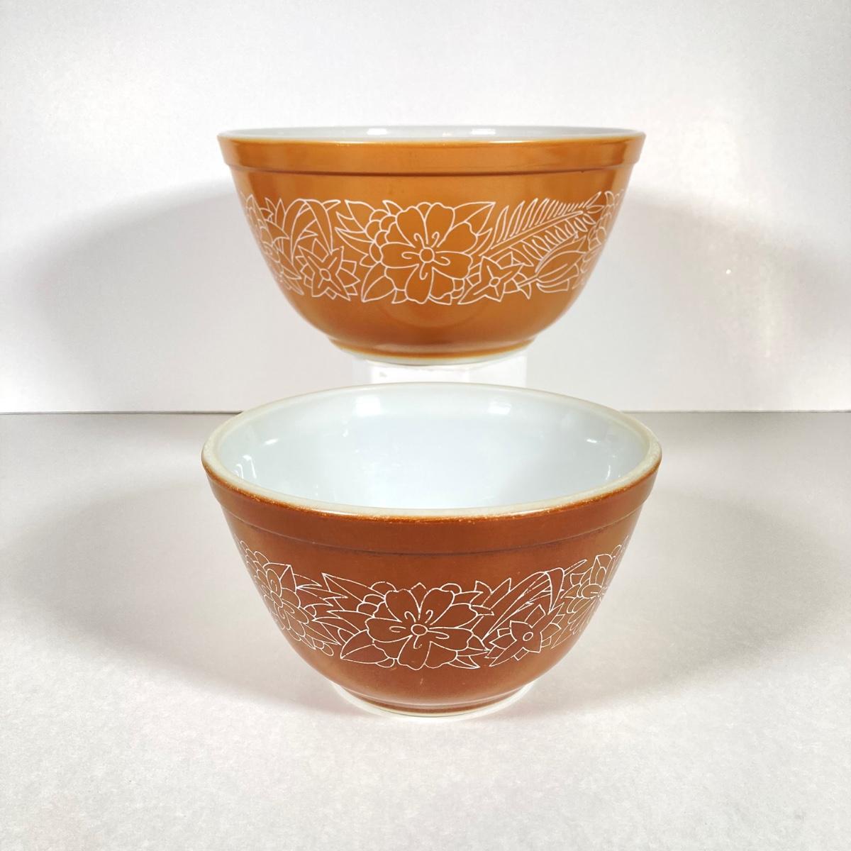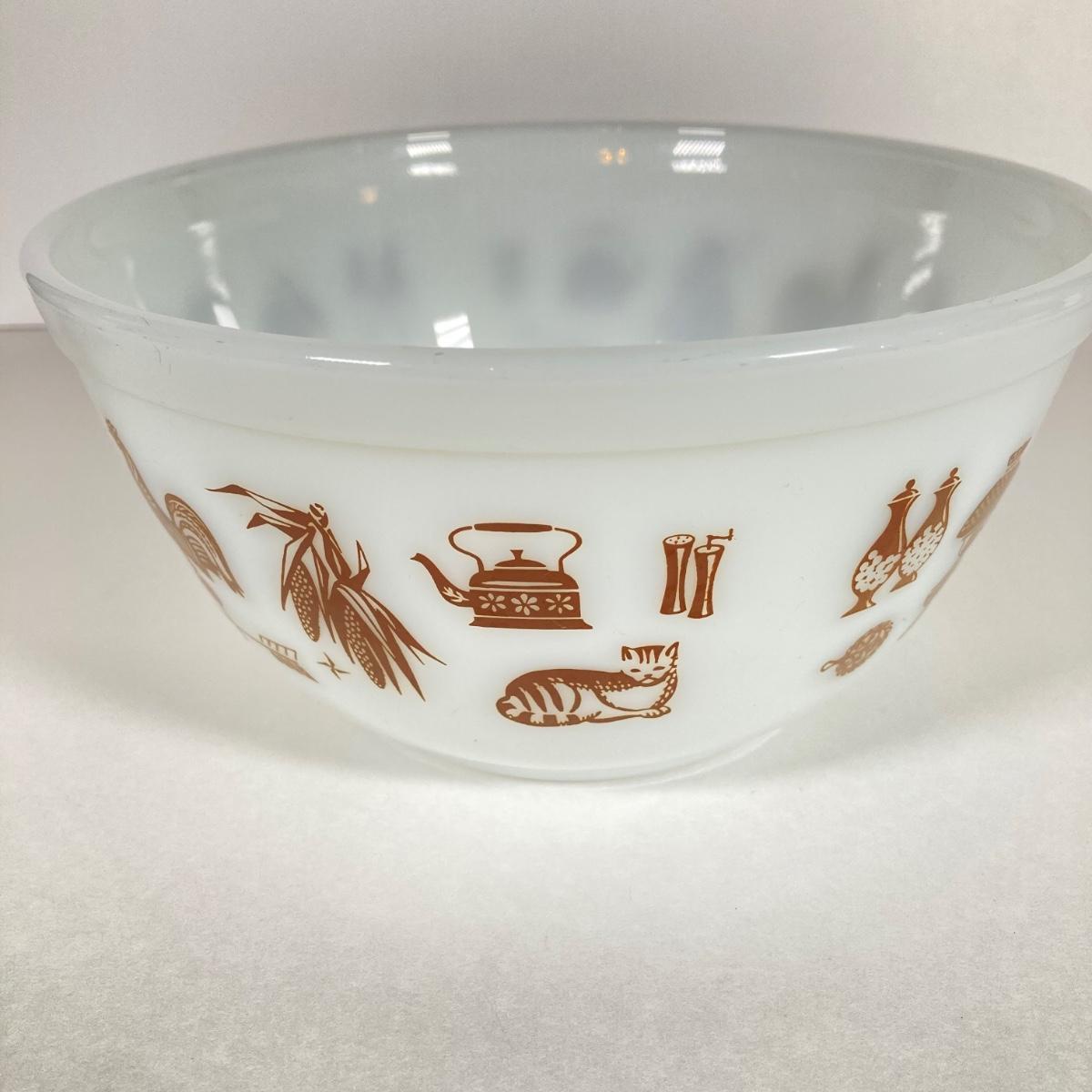 LOT 255: Collection of Five Pyrex Nesting Bowls - Early American, Homestead and Woodland Patterns