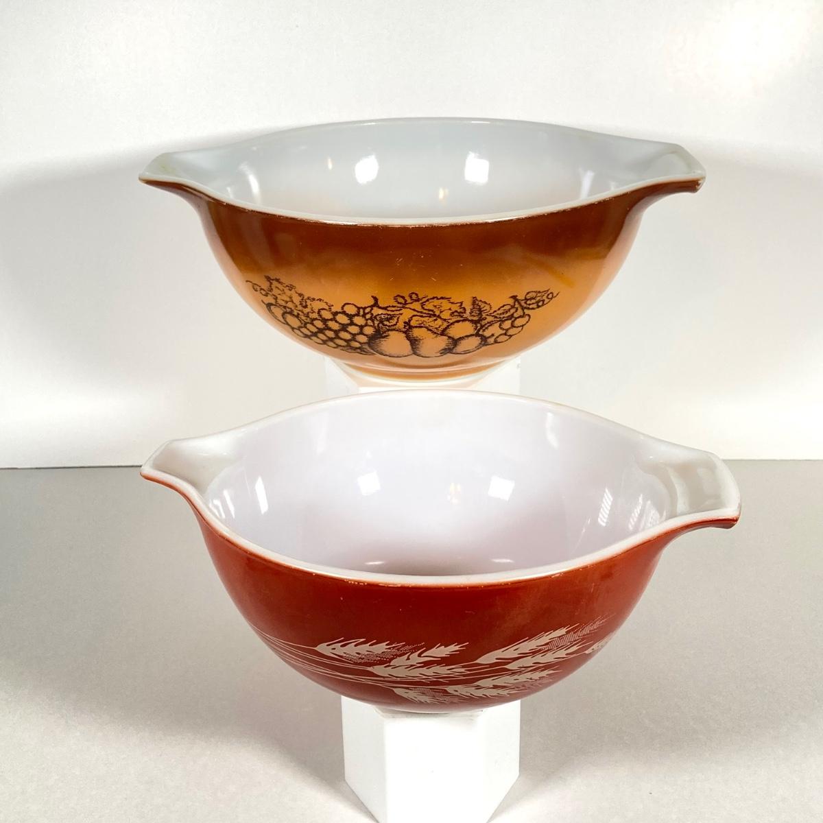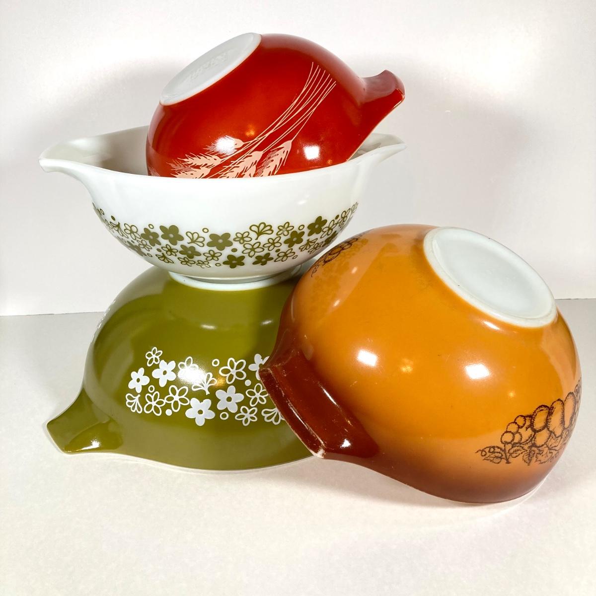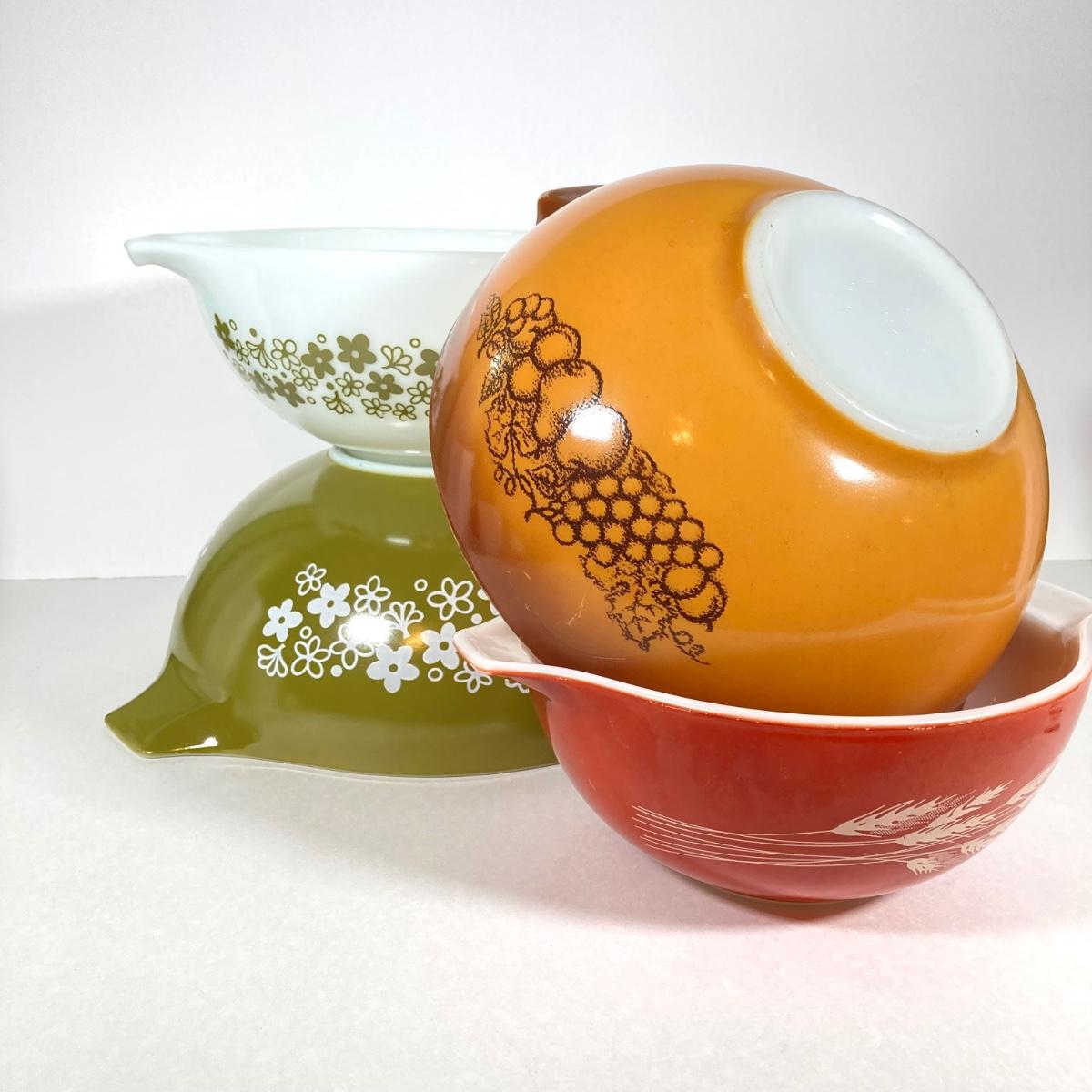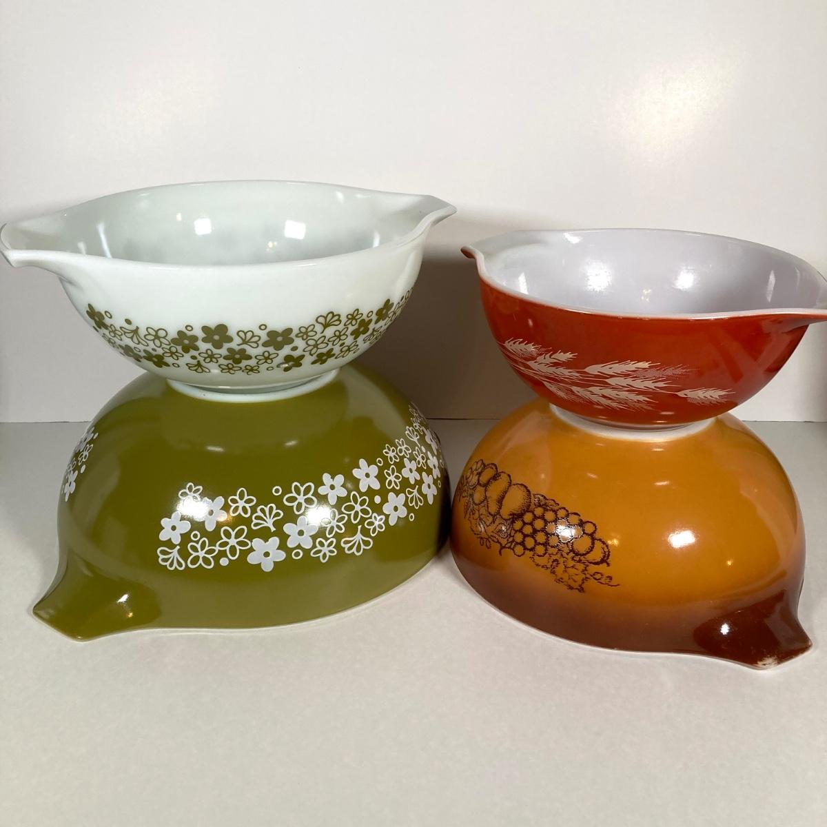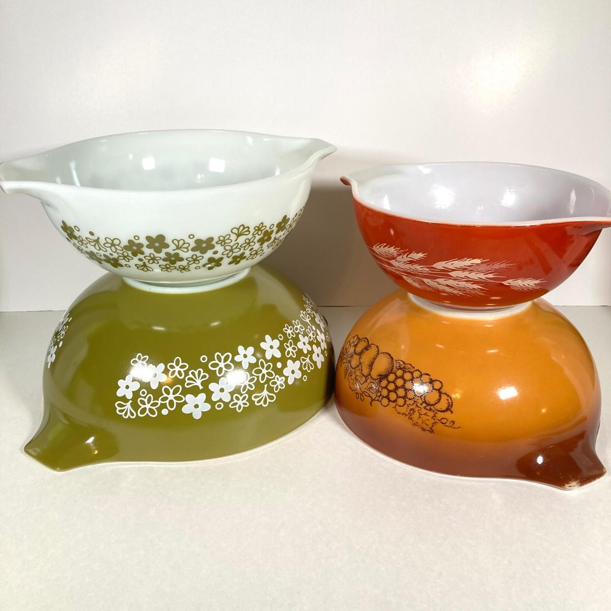 LOT 256: Four Vintage Cinderella Mixing Bowls - Spring Daisy Blossom, Autumn Harvest Wheat and Old Orchid