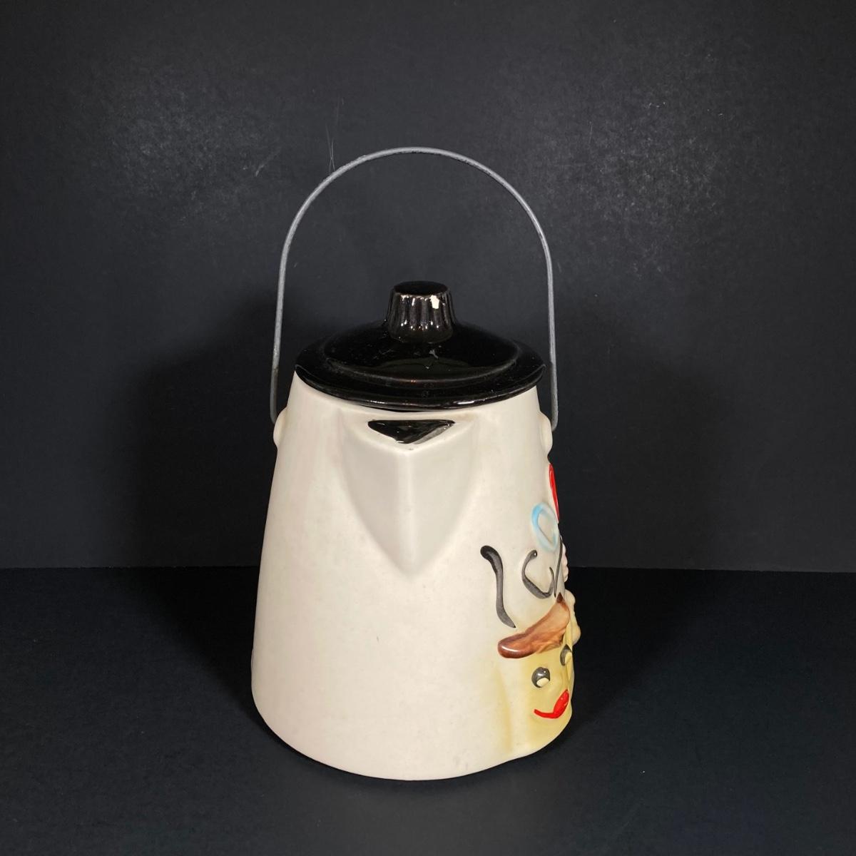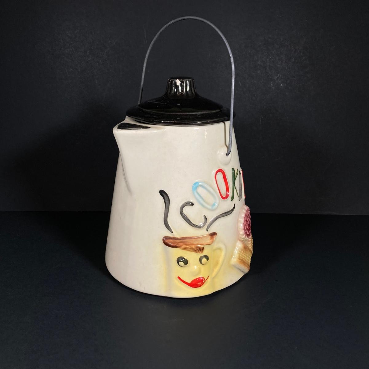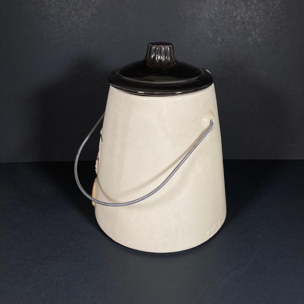 LOT 258: Vintage McCoy Tea / Coffee Pot Cookie Jar with Wire Handle