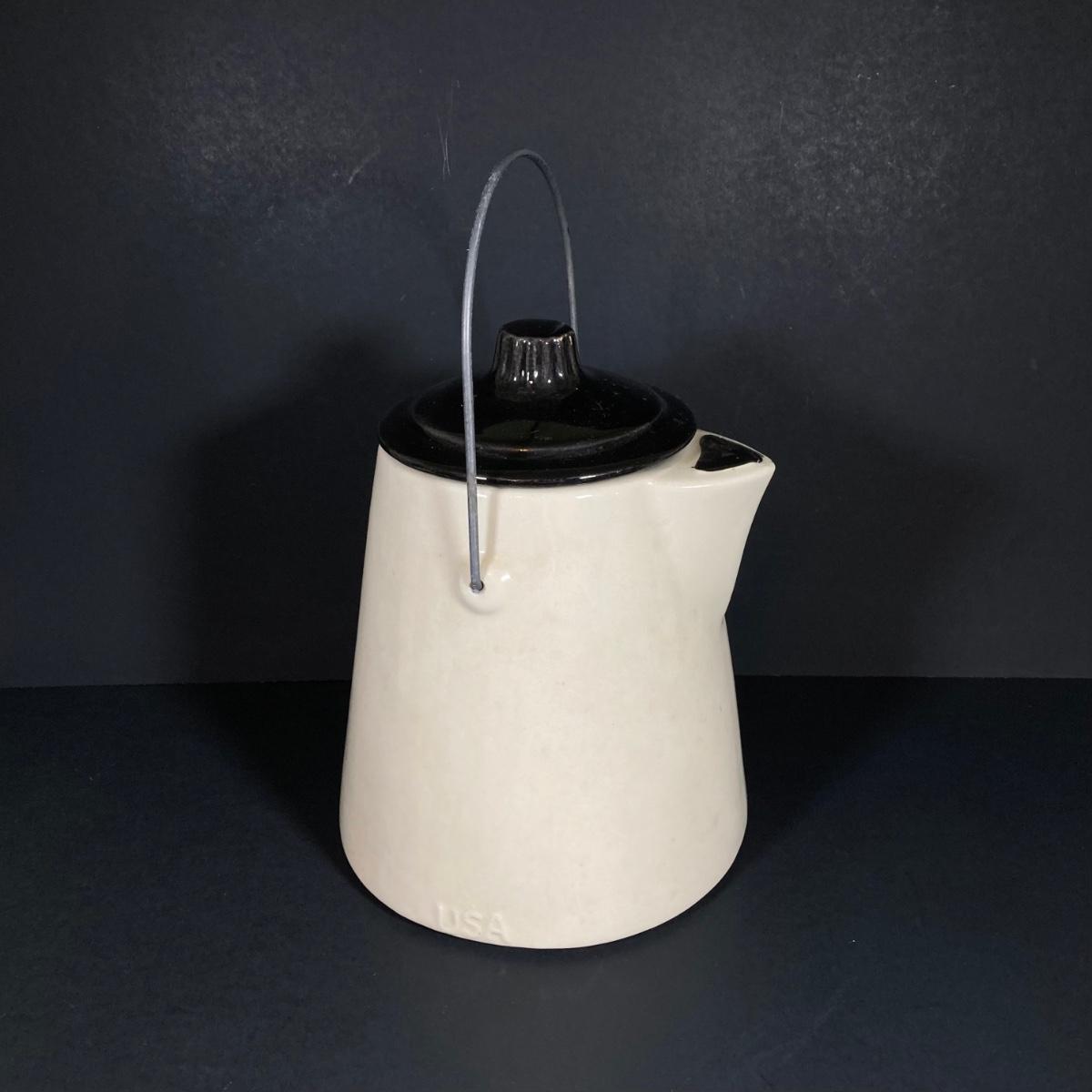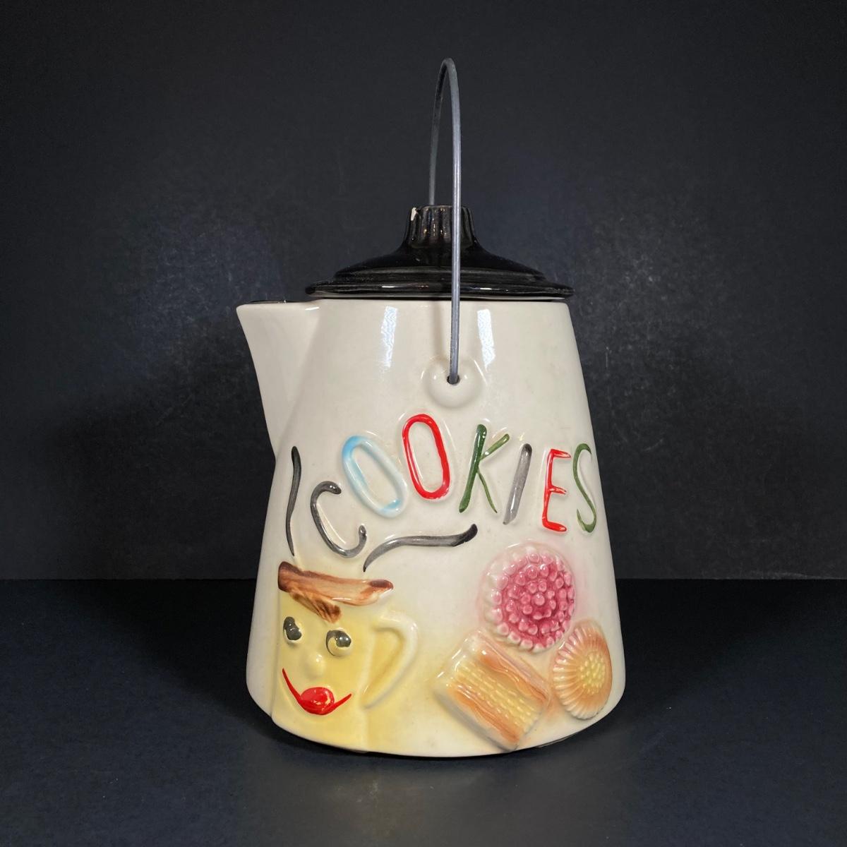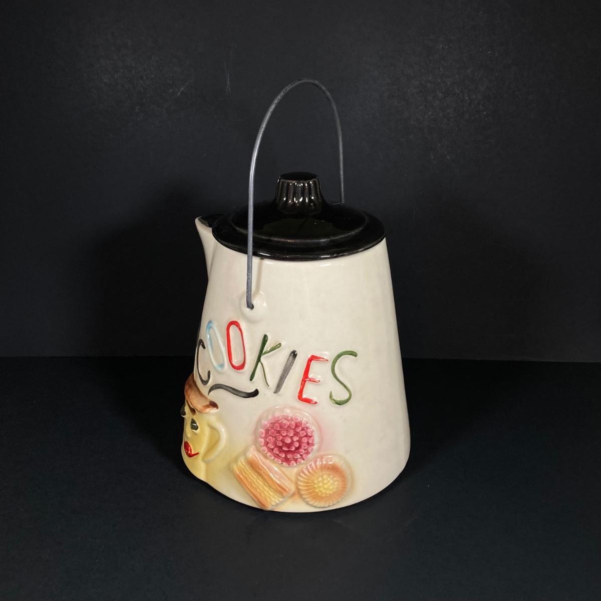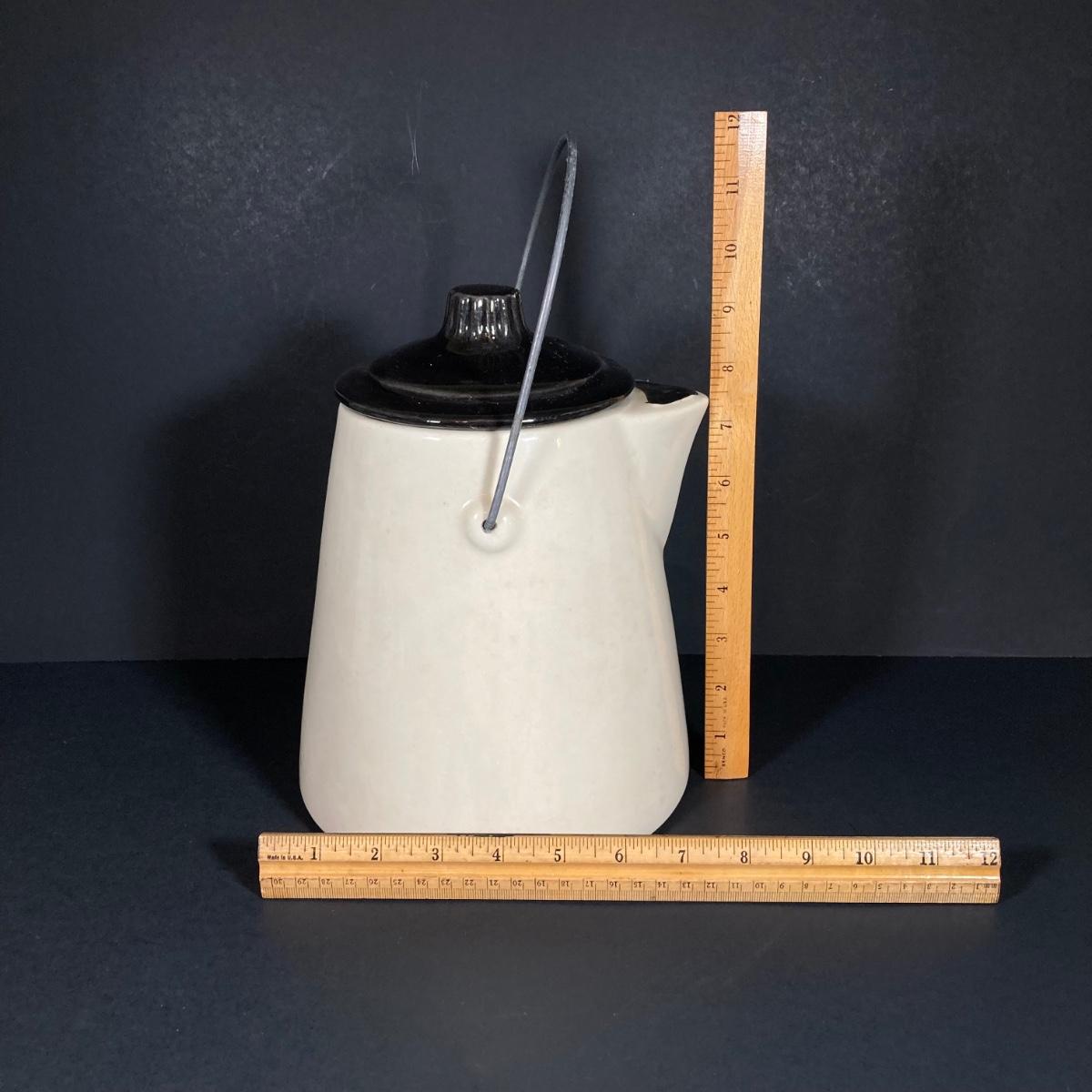 LOT 258: Vintage McCoy Tea / Coffee Pot Cookie Jar with Wire Handle