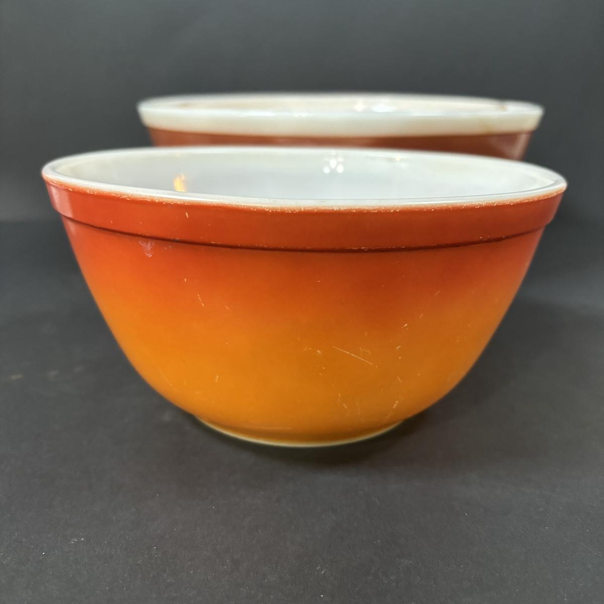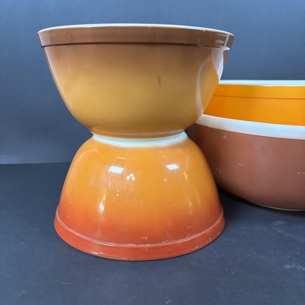 LOT 271: Vintage Pyrex Mixing Bowls: Old Orchard, Americana, Daisy Citrus & Flame Glo