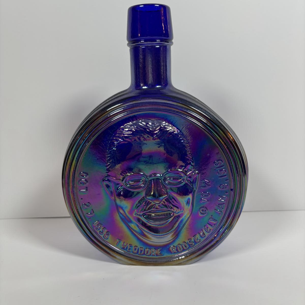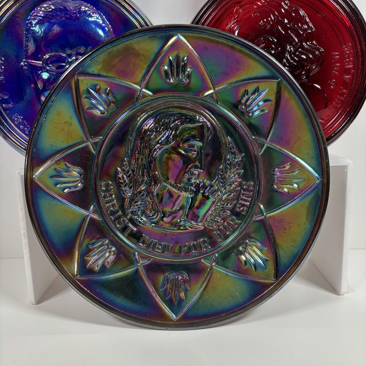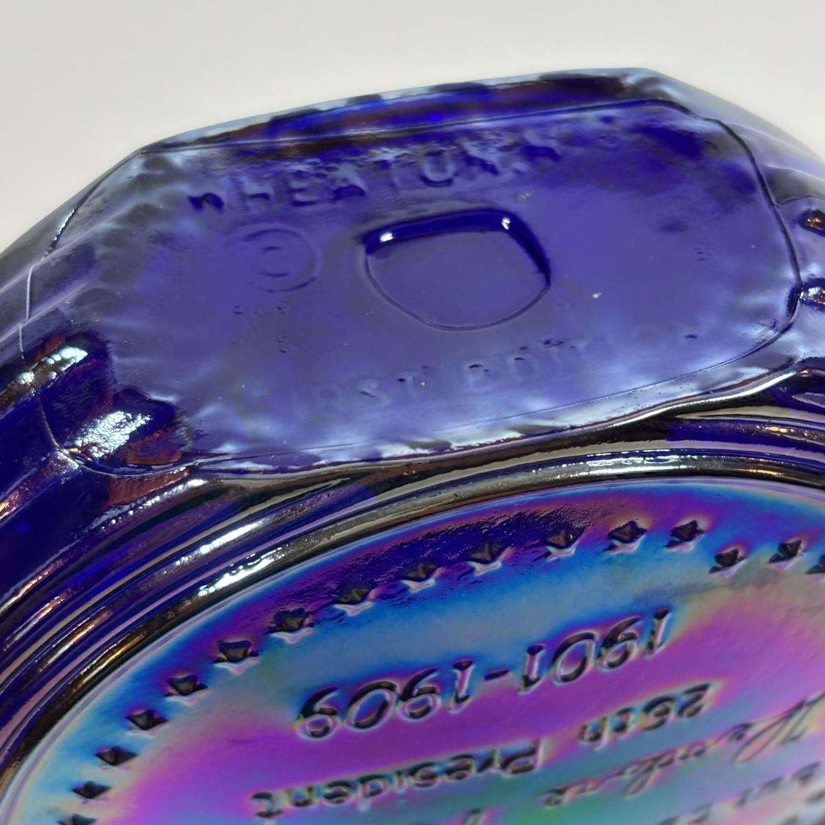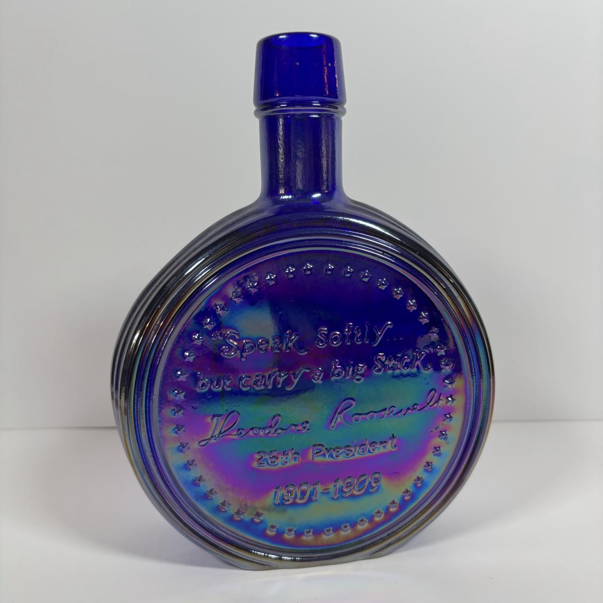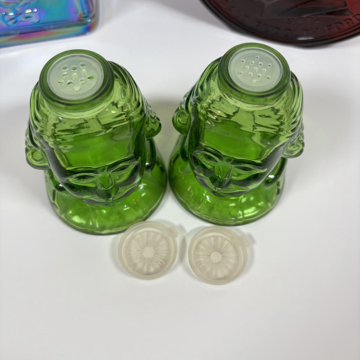 LOT 279: Vintage Wheaton Decanters/Bottles including a "Religious" Plate w/Iridescent Finish, George Washington Salt/Pepper Shakers