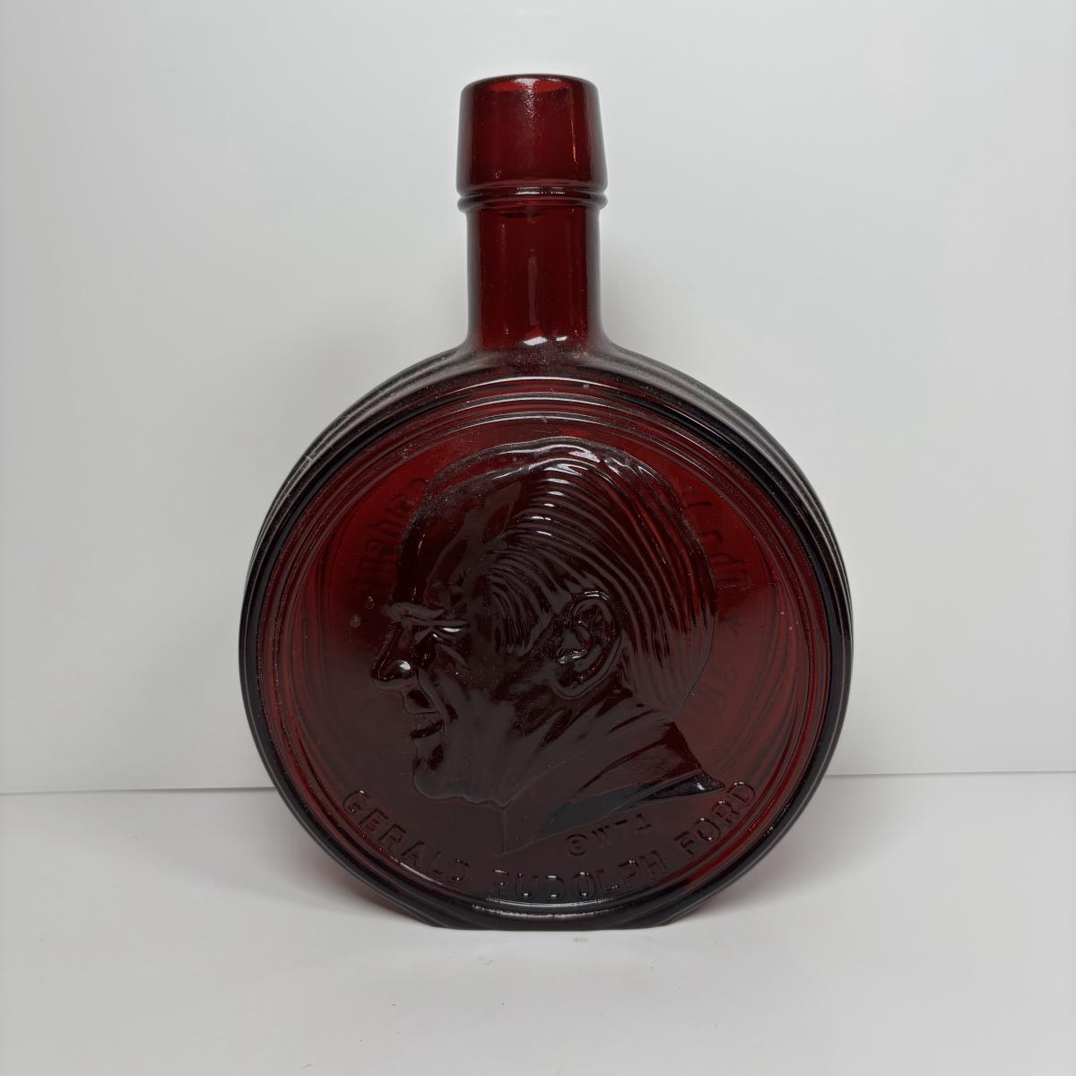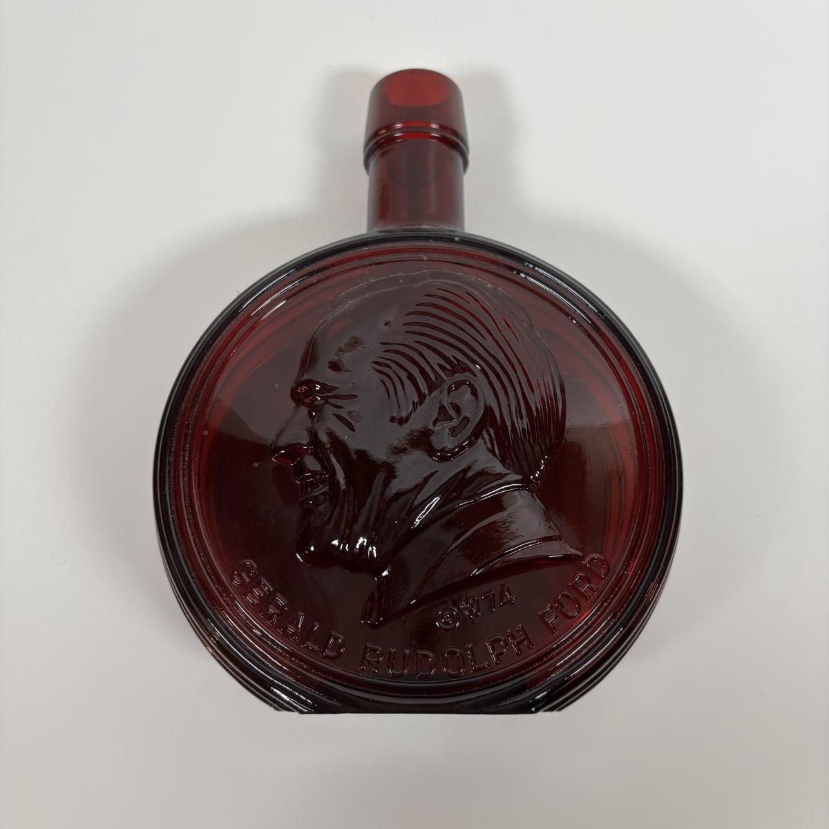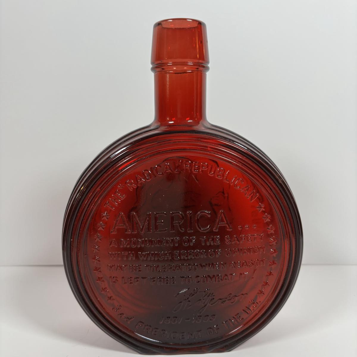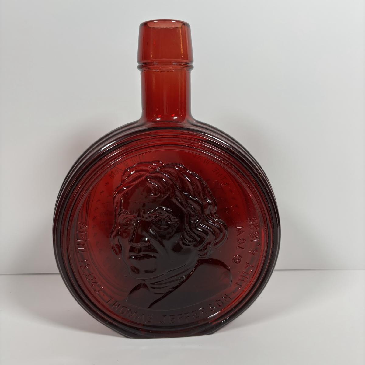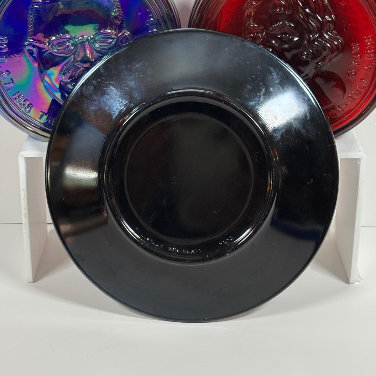 LOT 279: Vintage Wheaton Decanters/Bottles including a "Religious" Plate w/Iridescent Finish, George Washington Salt/Pepper Shakers