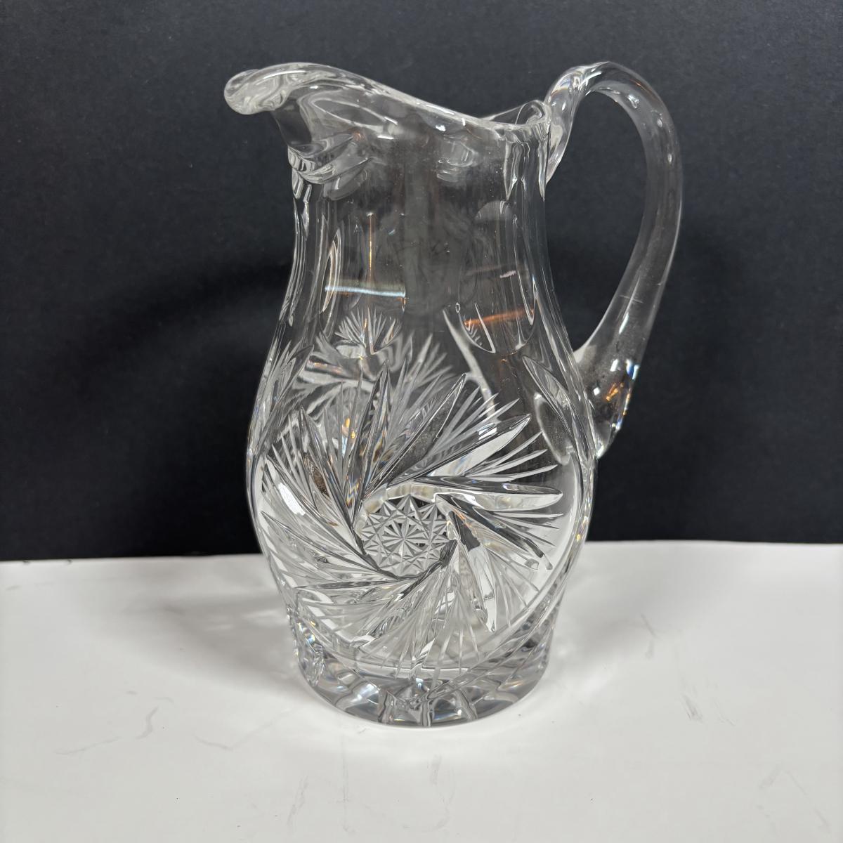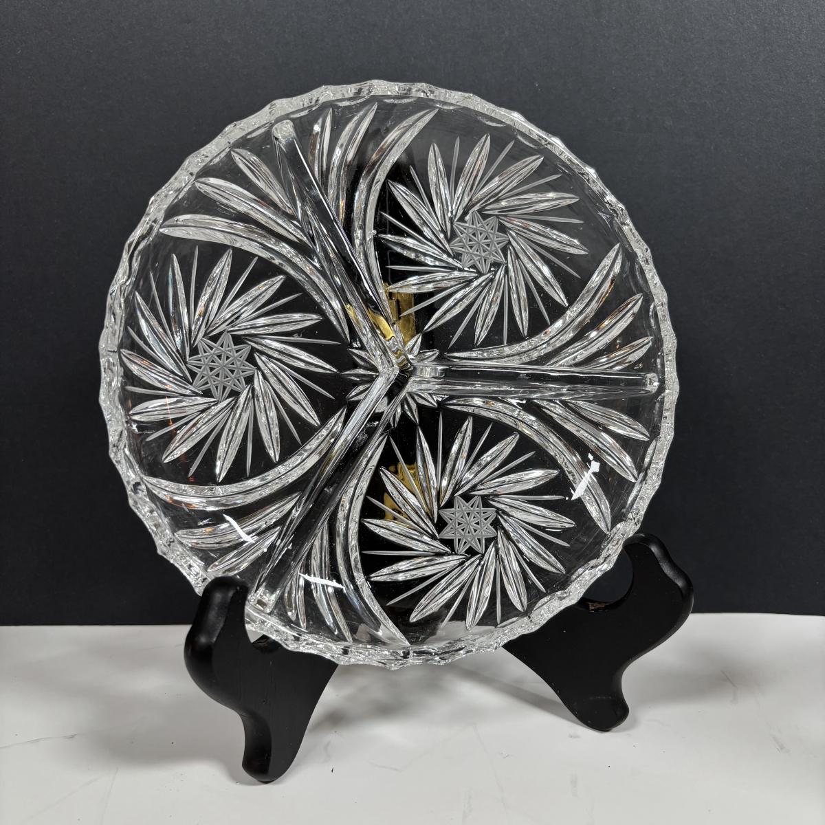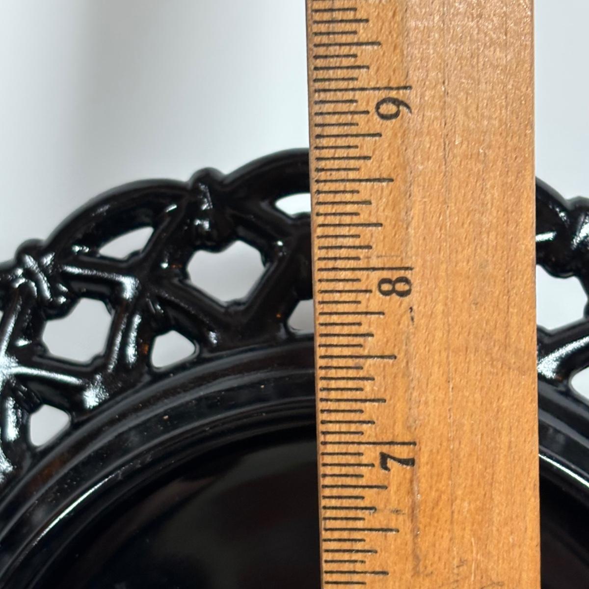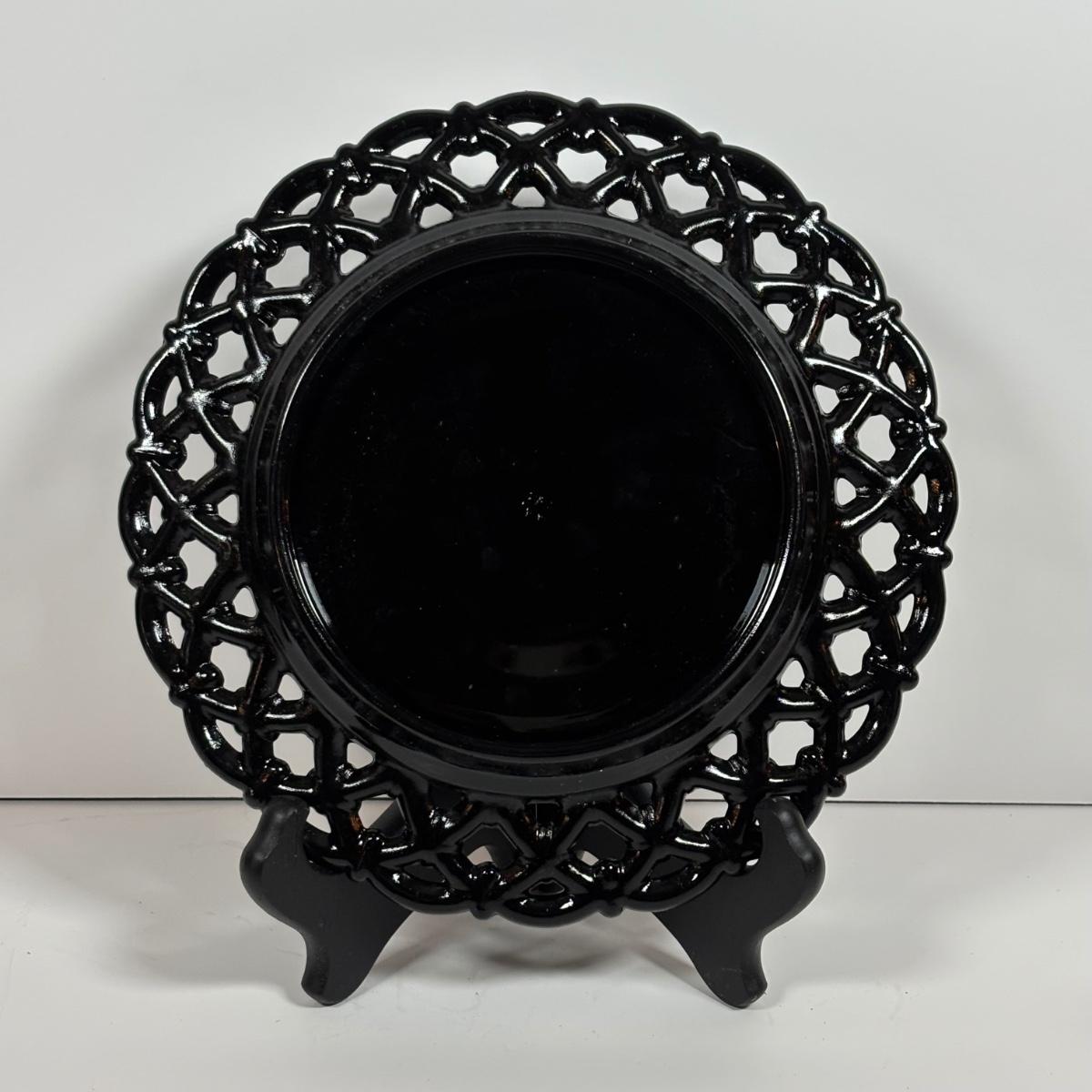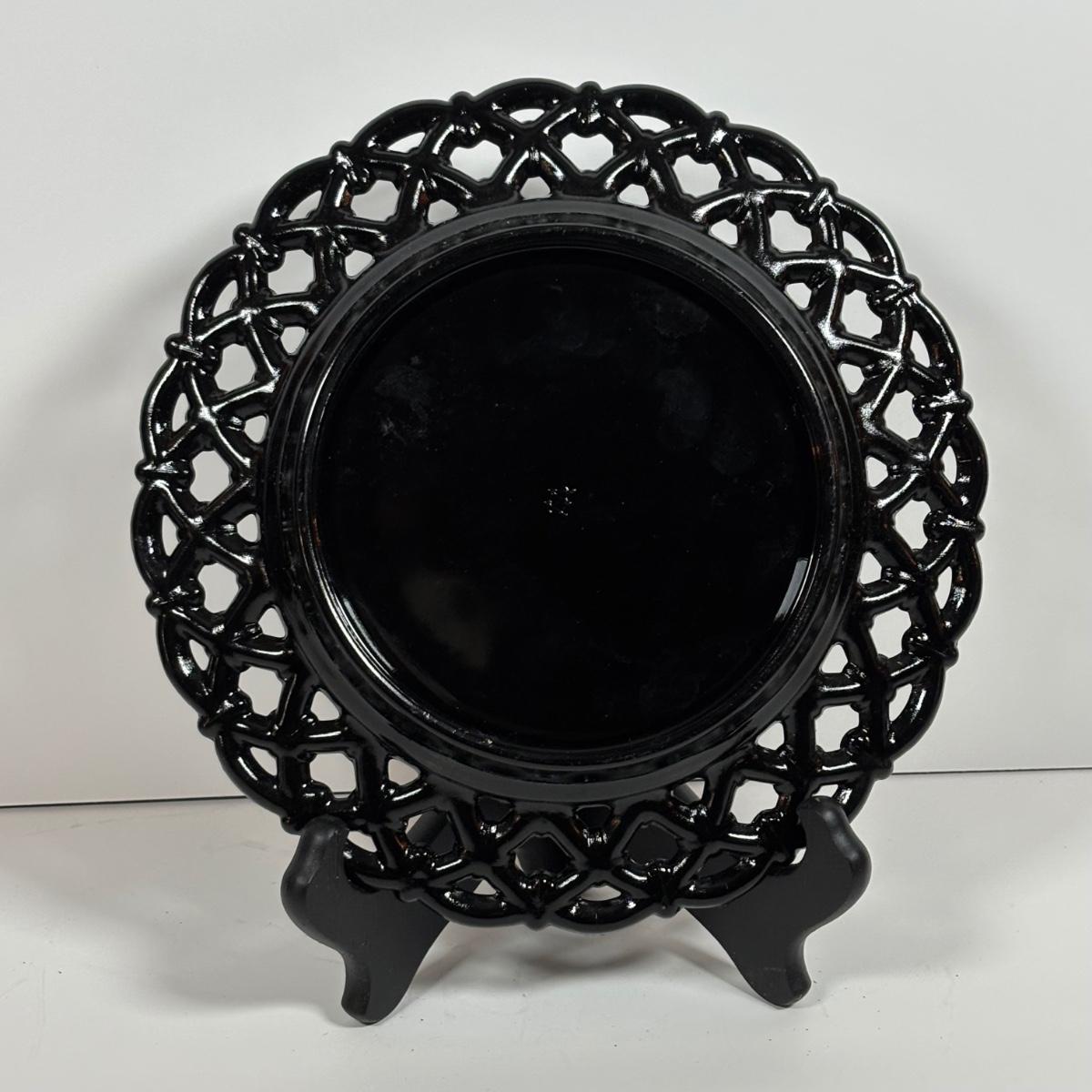LOT 280: Westmoreland Hand Painted by Artist Mary Gregory L. Plues 1973 Black Glass Lattice Plates, Brillant Cut Crystal Pitcher & Divided Dish & More