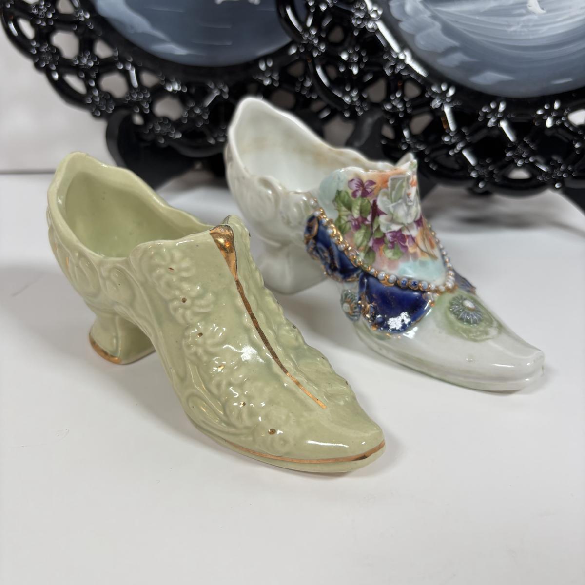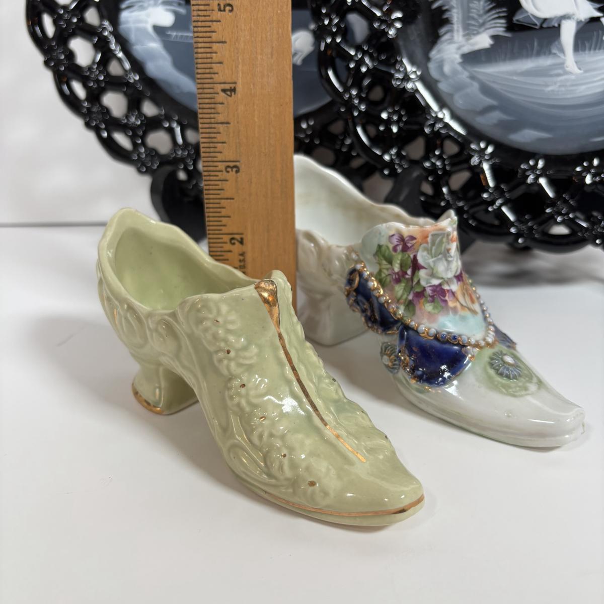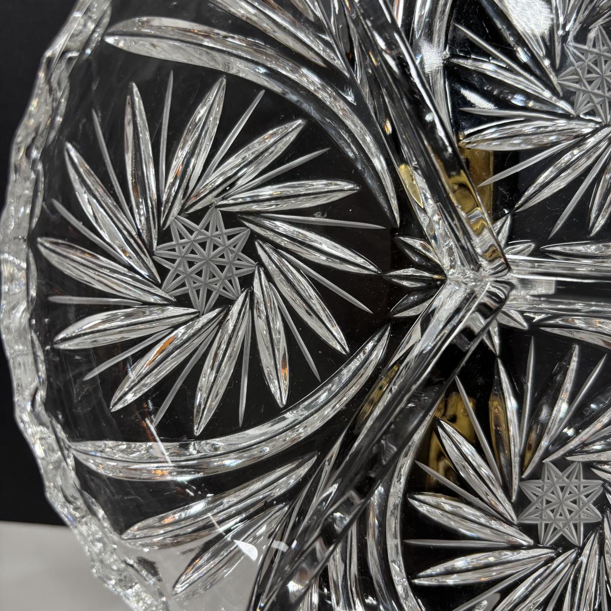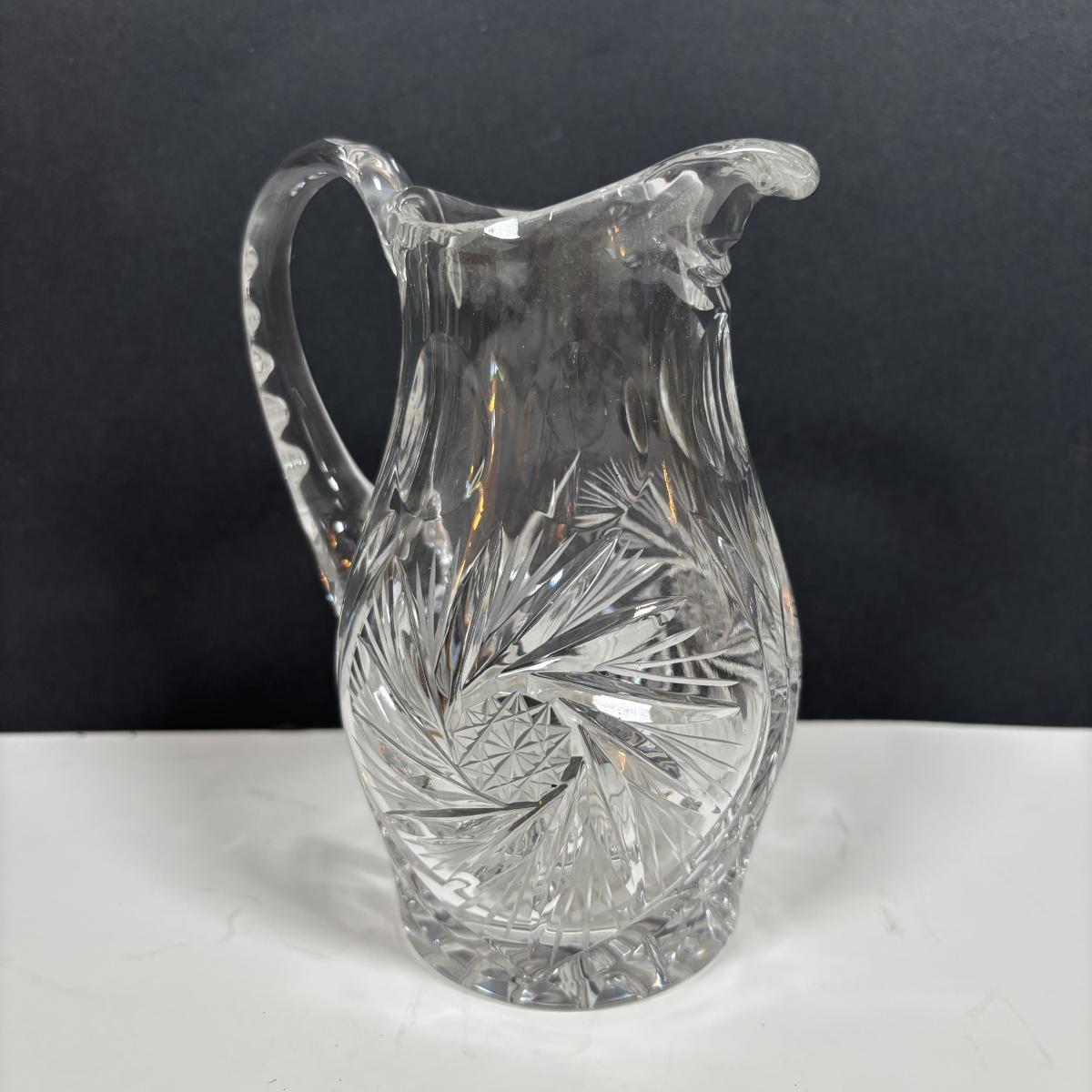 LOT 280: Westmoreland Hand Painted by Artist Mary Gregory L. Plues 1973 Black Glass Lattice Plates, Brillant Cut Crystal Pitcher & Divided Dish & More