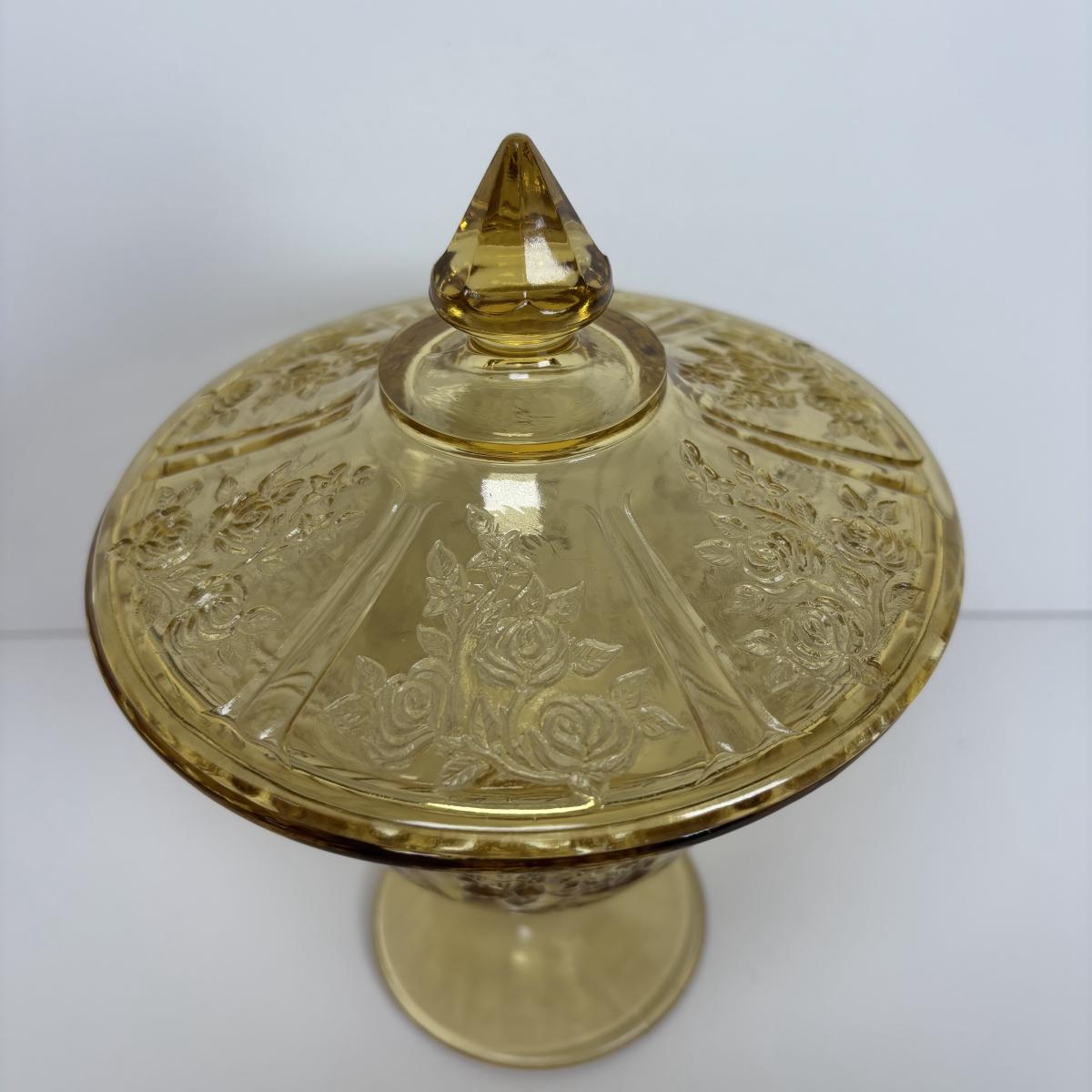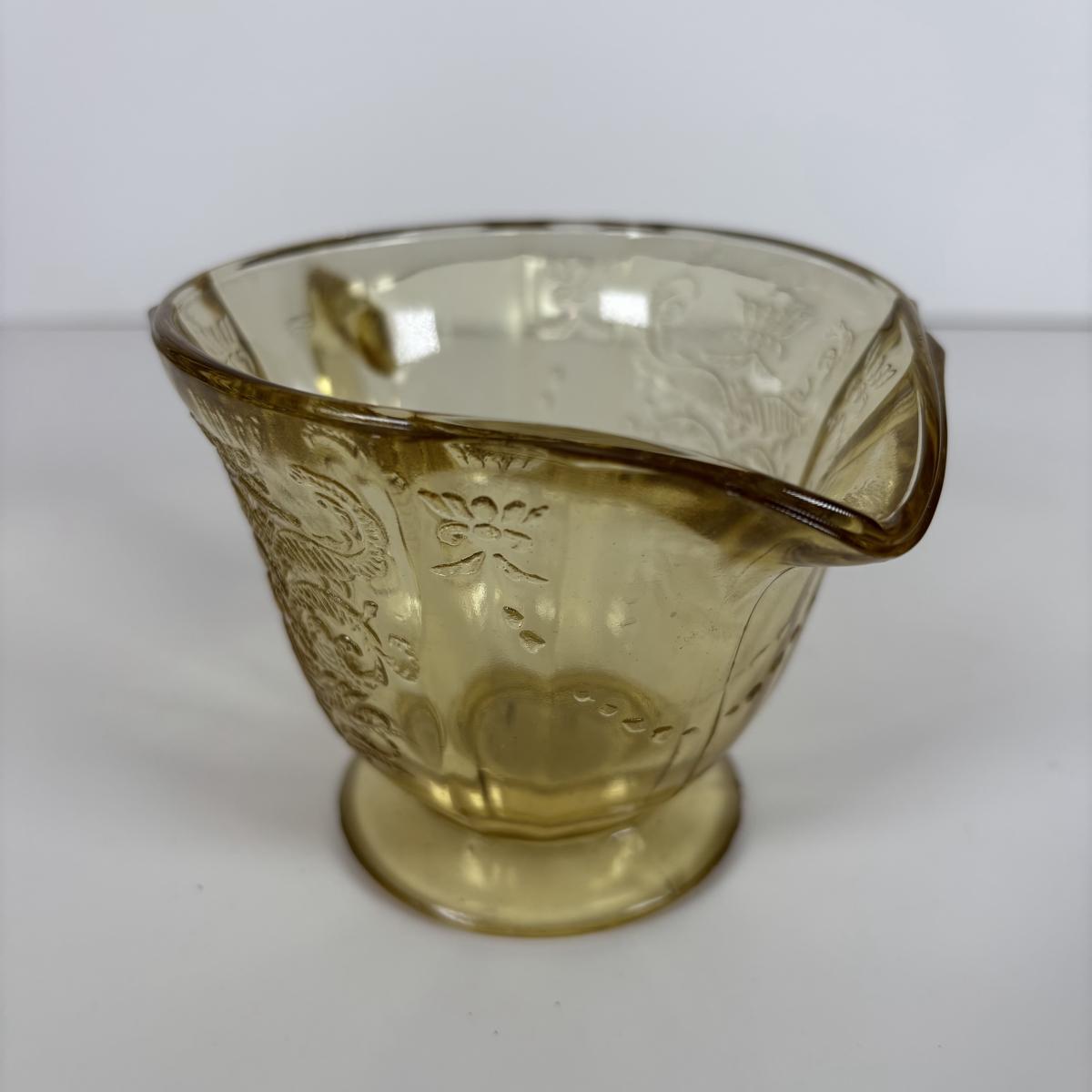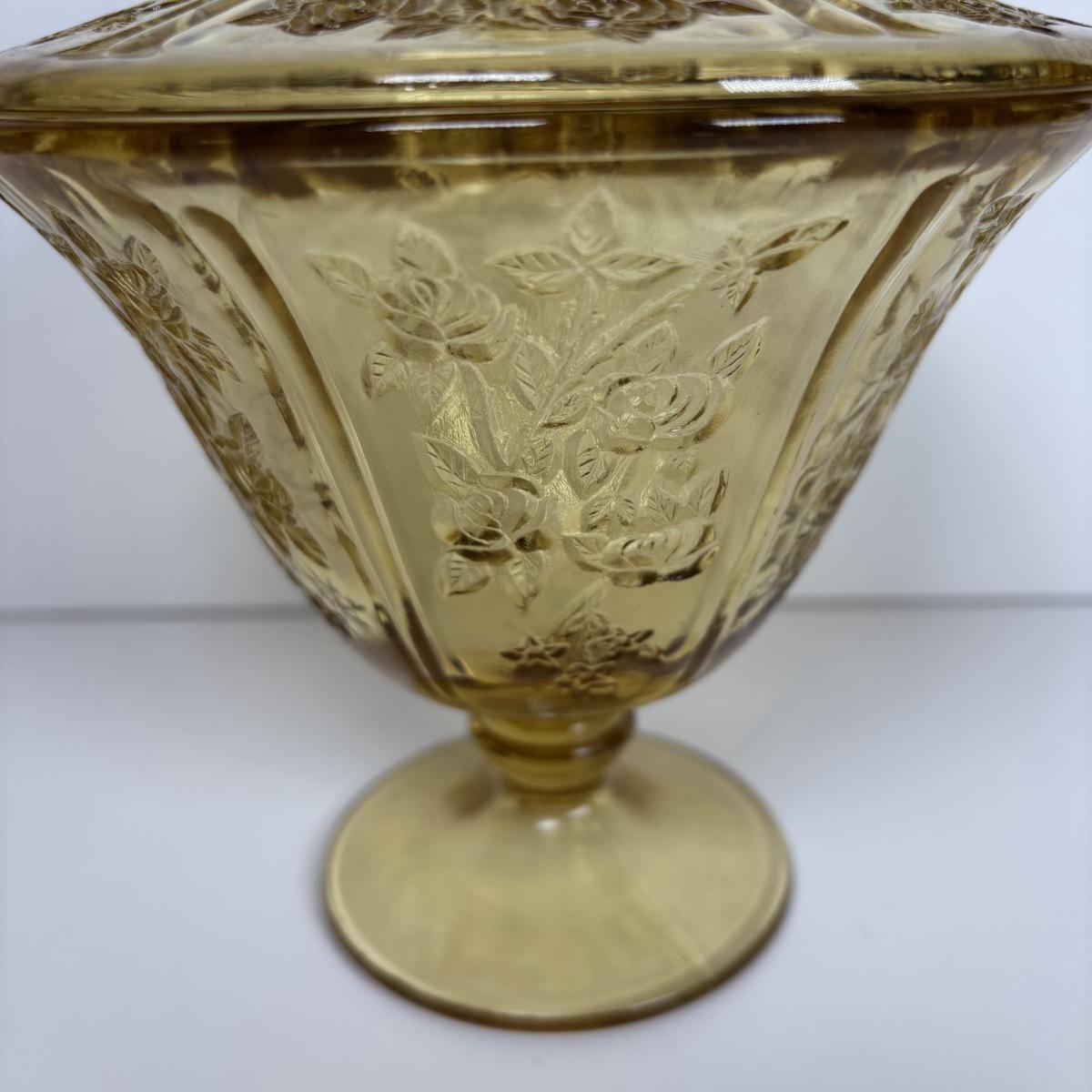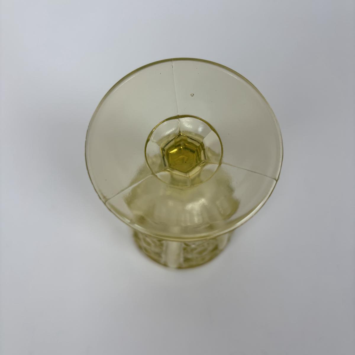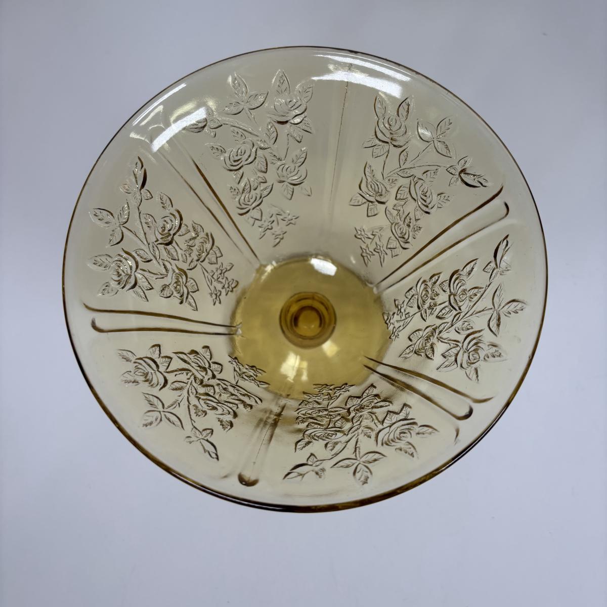LOT 284: Amber Depression Glass Collection: Uranium Glass Wine Glass, Covered Candy Bowl, Sugar/Creamers, Console Bowl