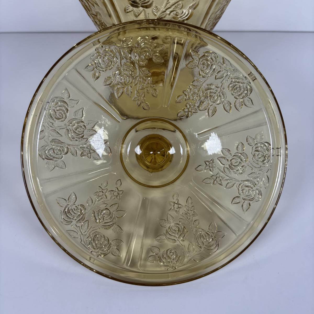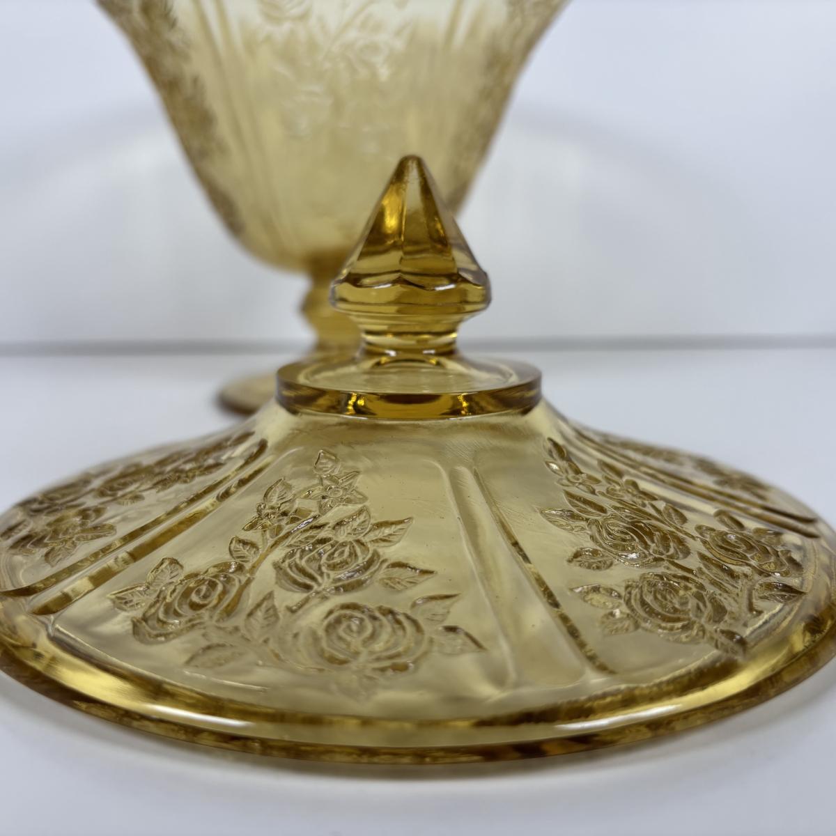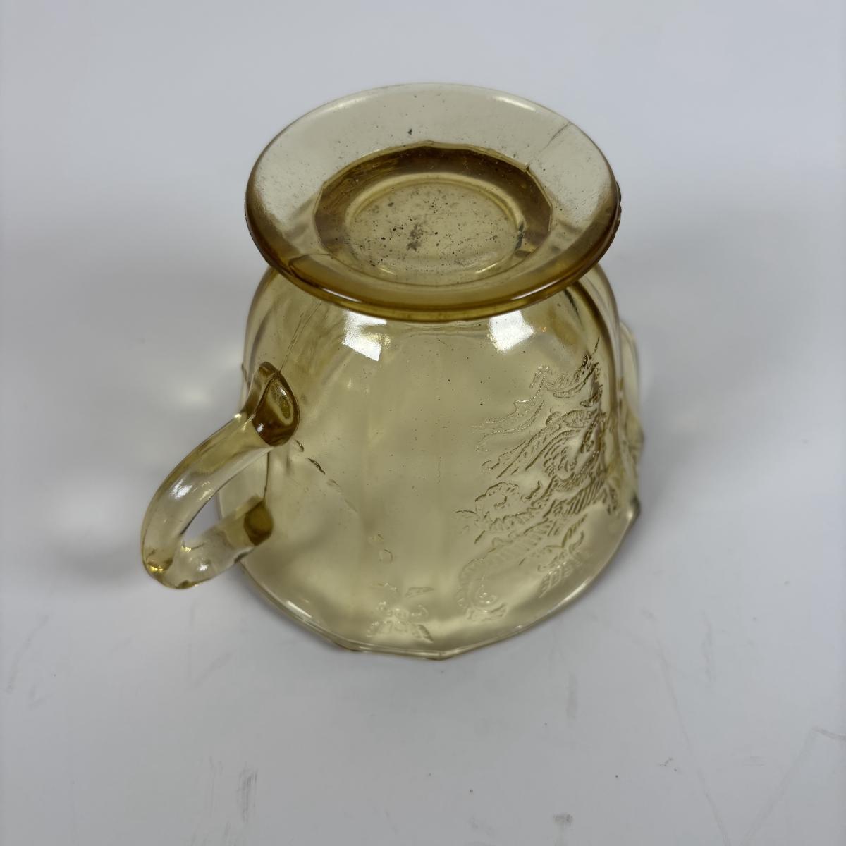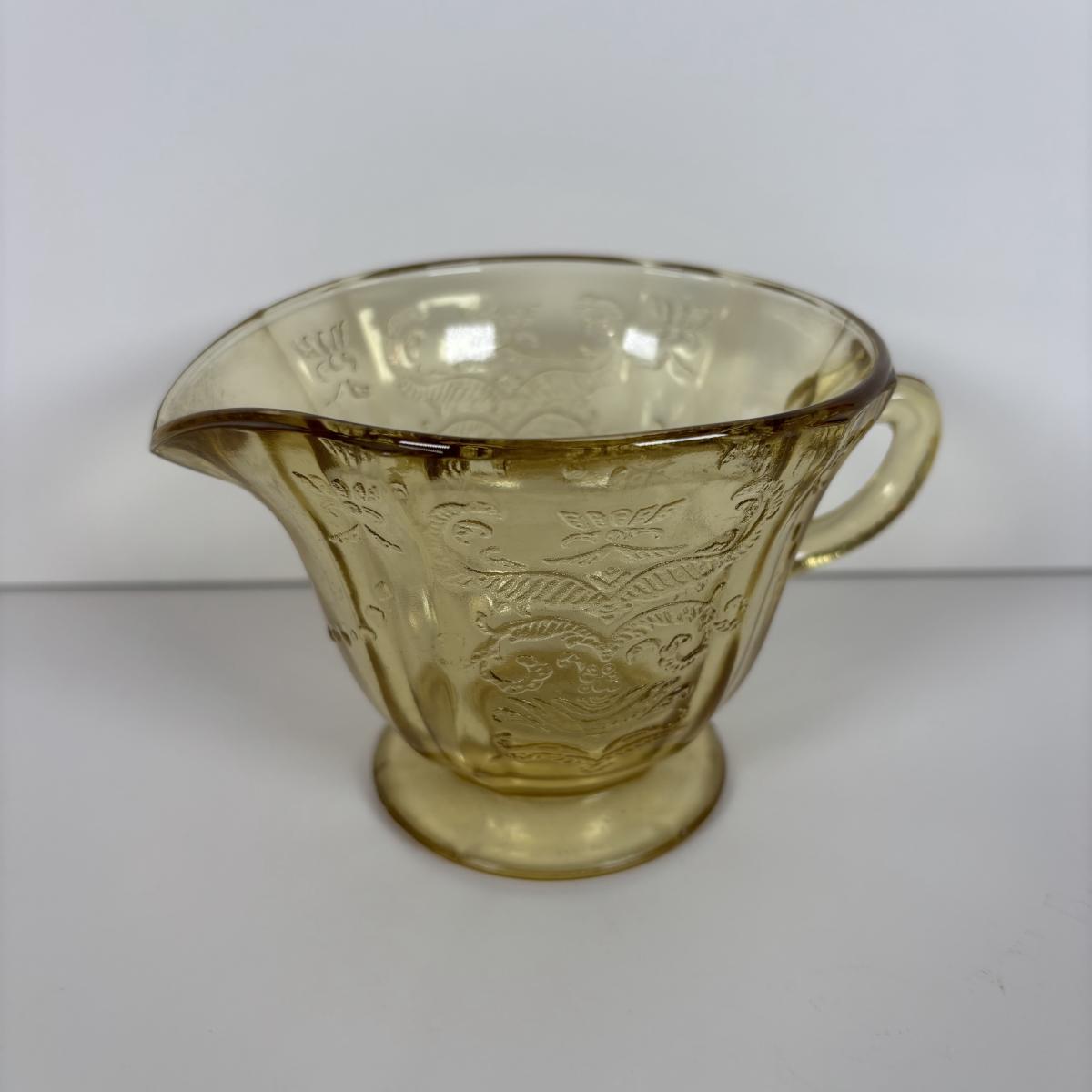 LOT 284: Amber Depression Glass Collection: Uranium Glass Wine Glass, Covered Candy Bowl, Sugar/Creamers, Console Bowl