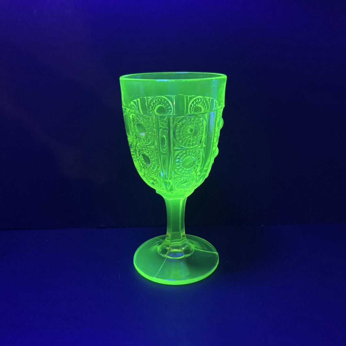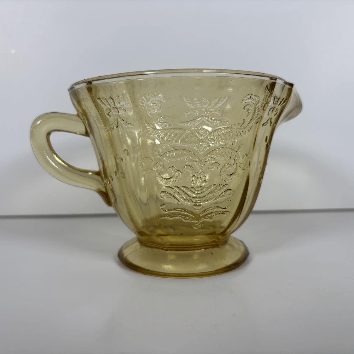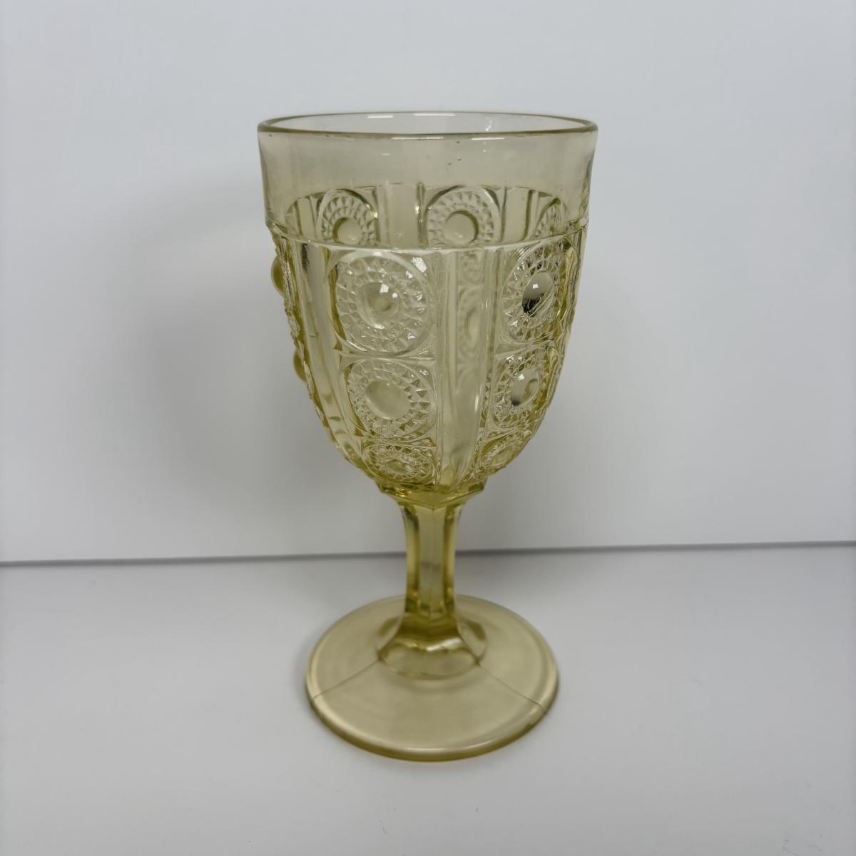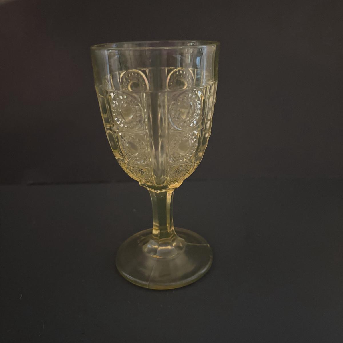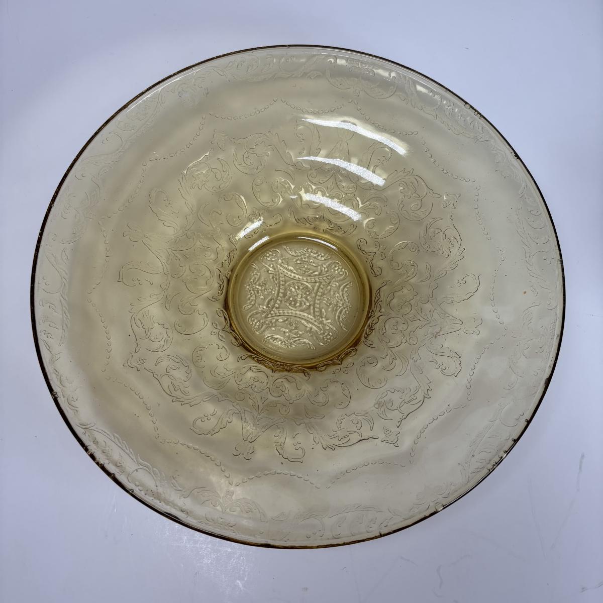 LOT 284: Amber Depression Glass Collection: Uranium Glass Wine Glass, Covered Candy Bowl, Sugar/Creamers, Console Bowl