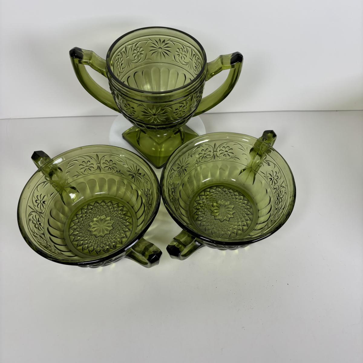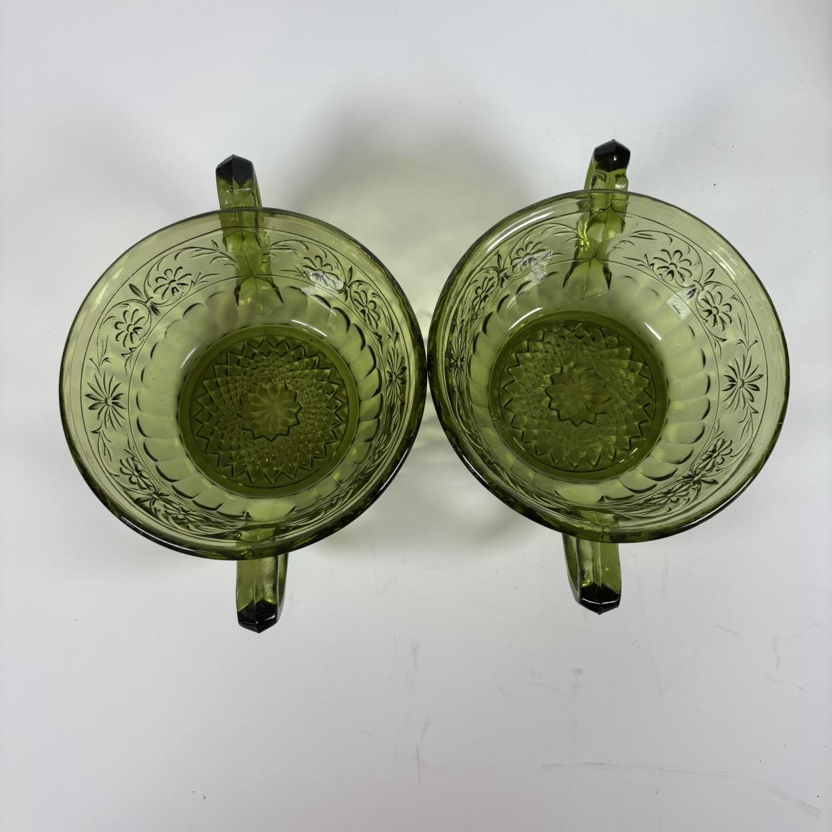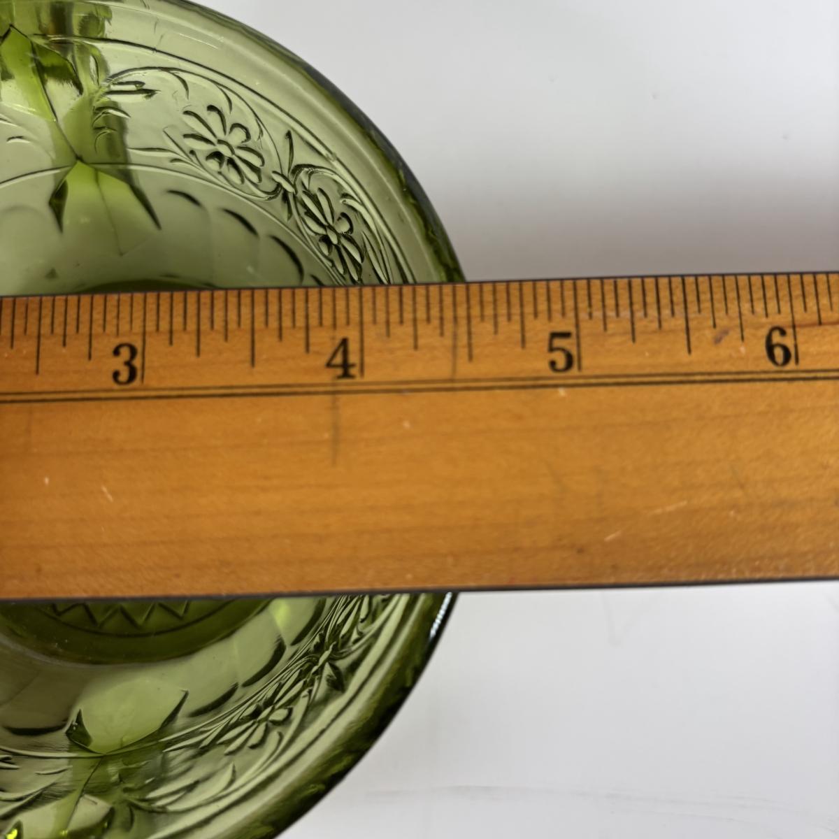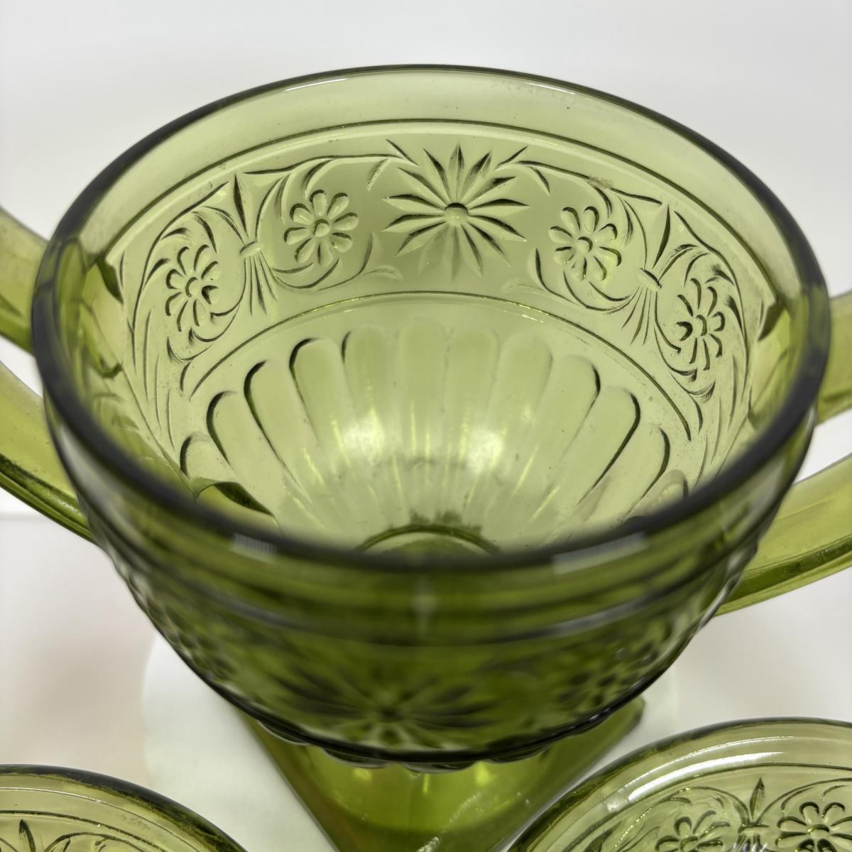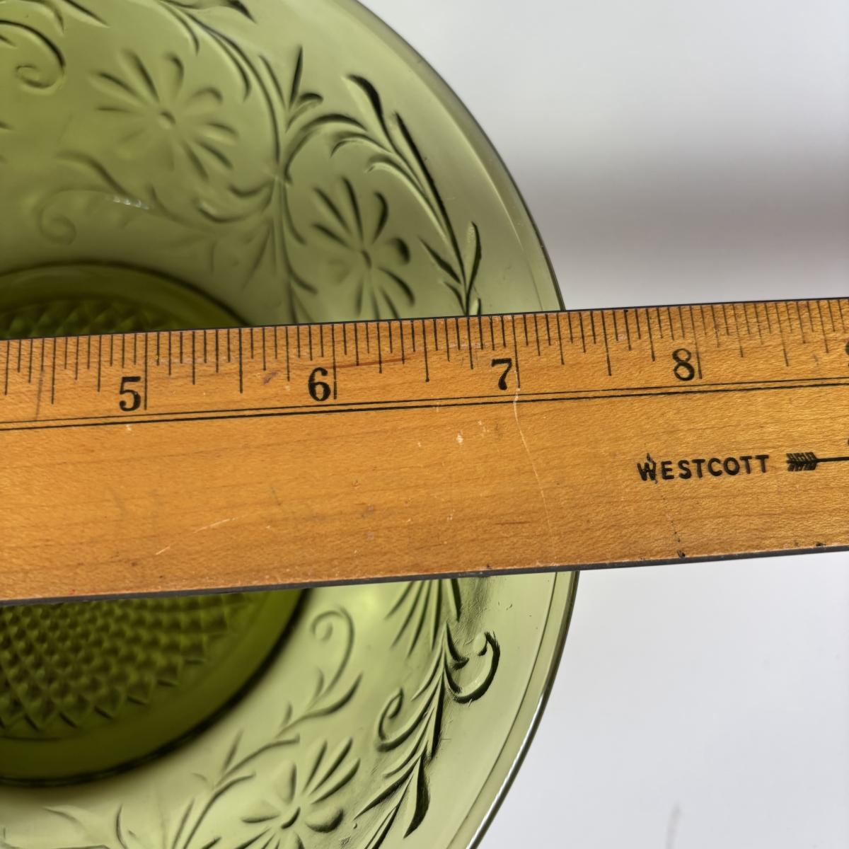 LOT 285: Vintage Colonial Green Hobnail Trumpet Vase and Avocado Green Glassware