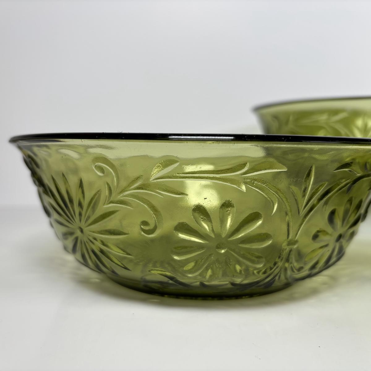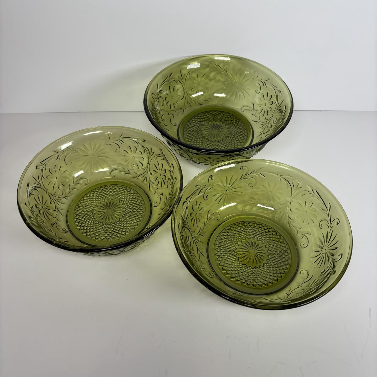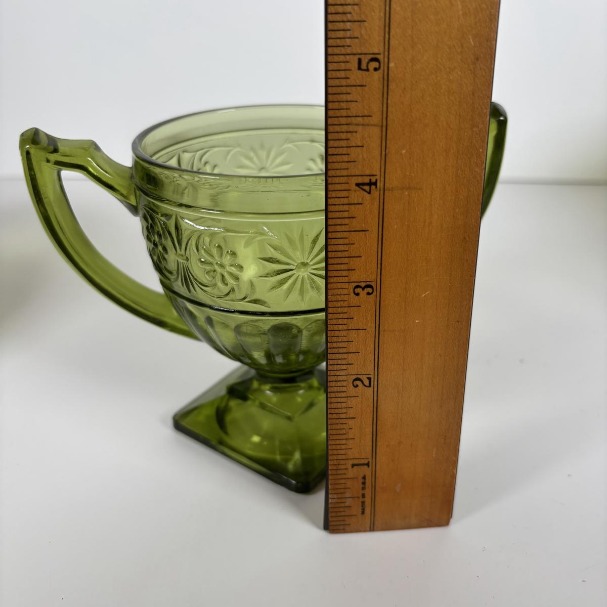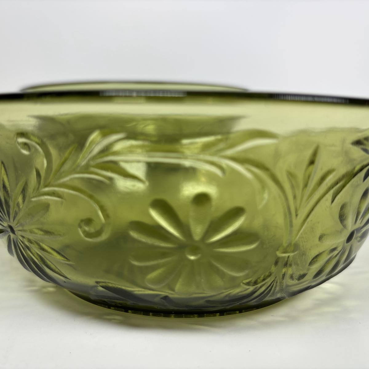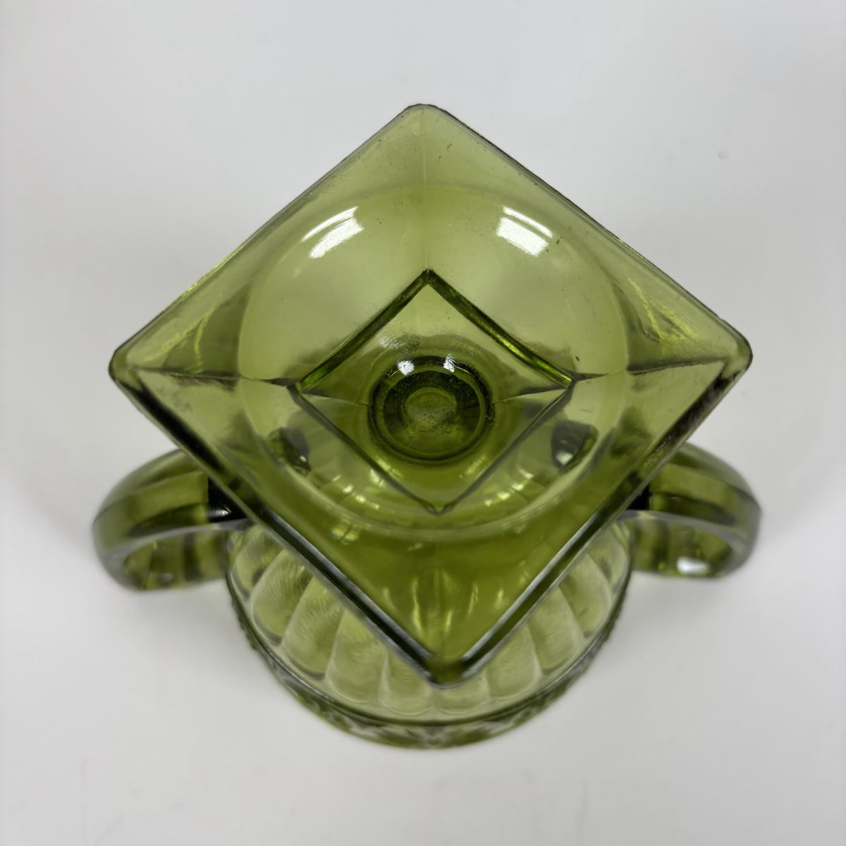 LOT 285: Vintage Colonial Green Hobnail Trumpet Vase and Avocado Green Glassware