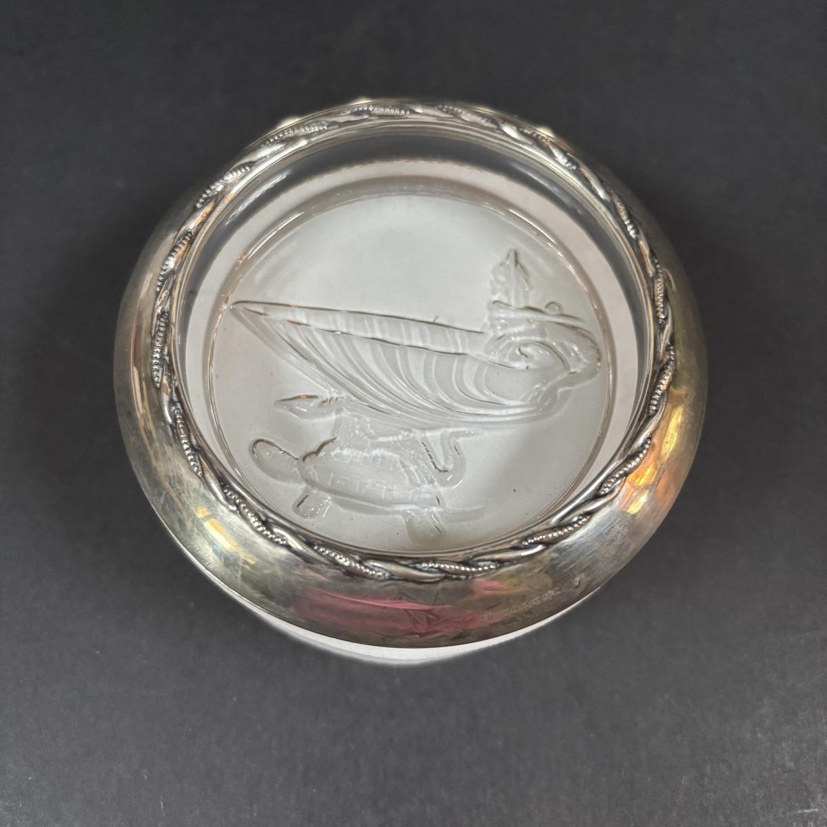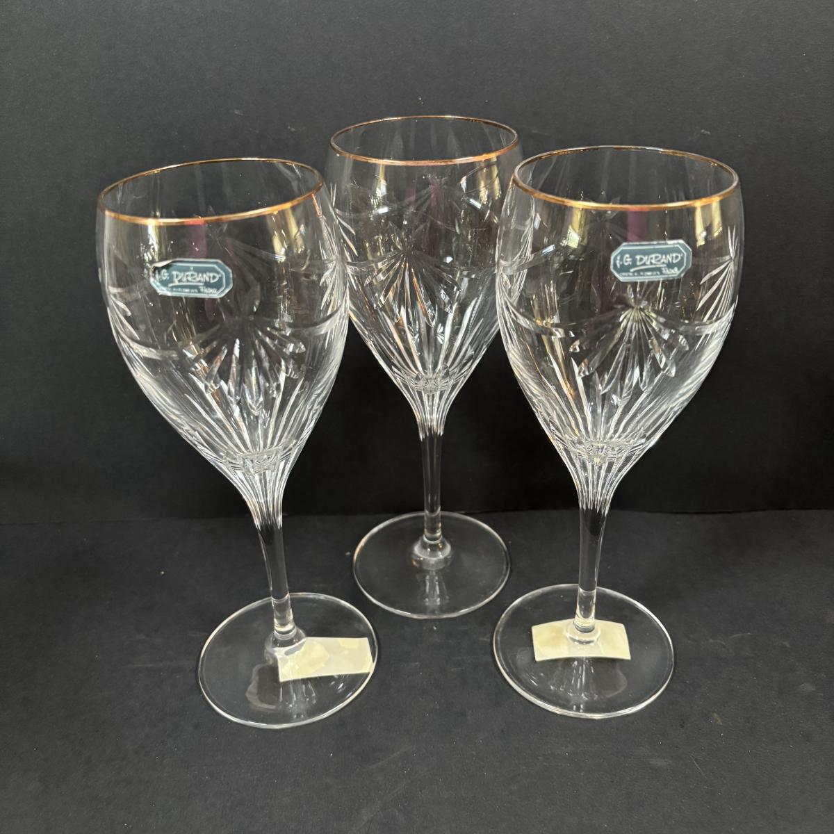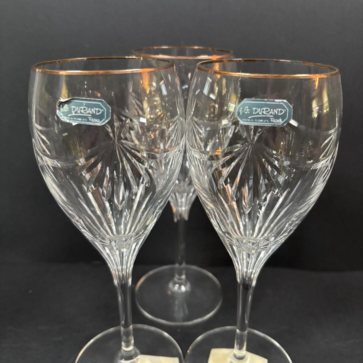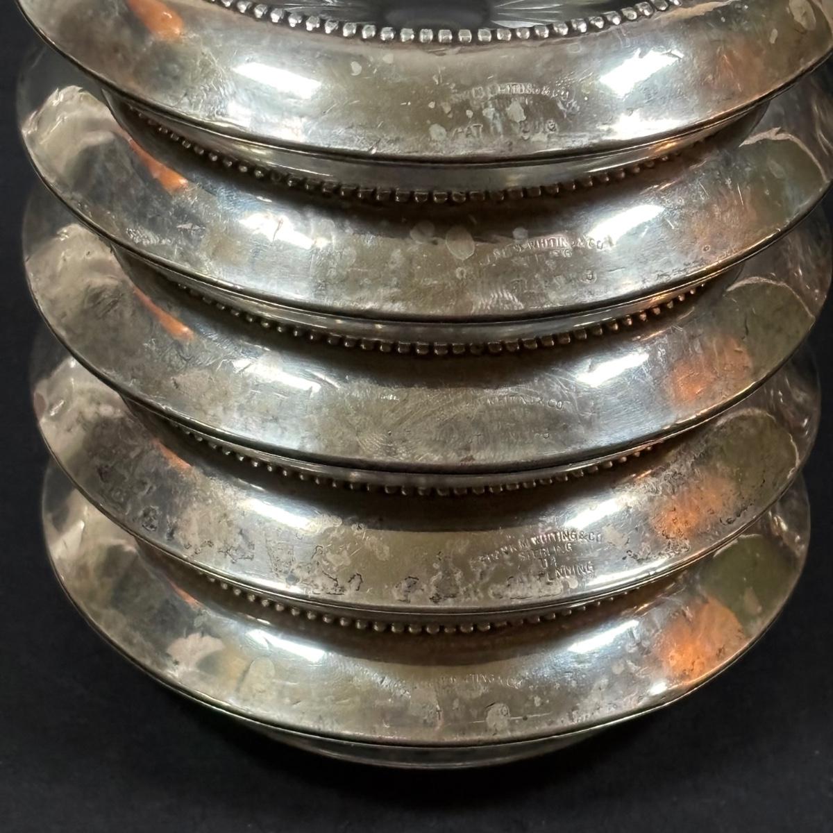 LOT 289: Sterling Silver & Crystal Coasters (11) JG Durand Glasses (3), Beautiful Cut Glass Pitcher