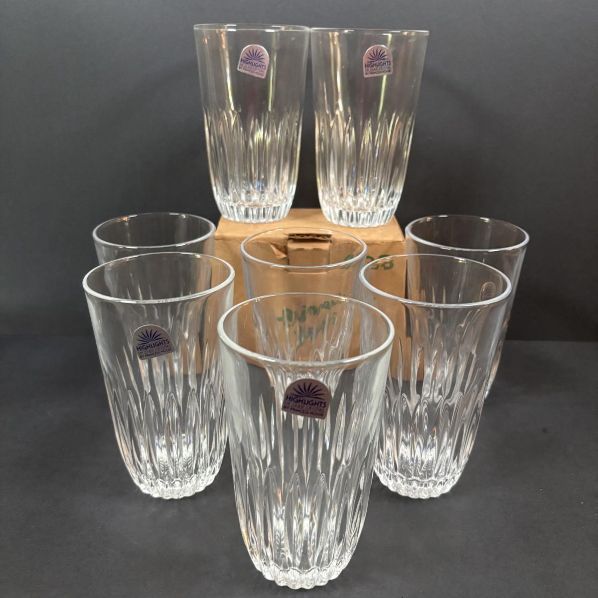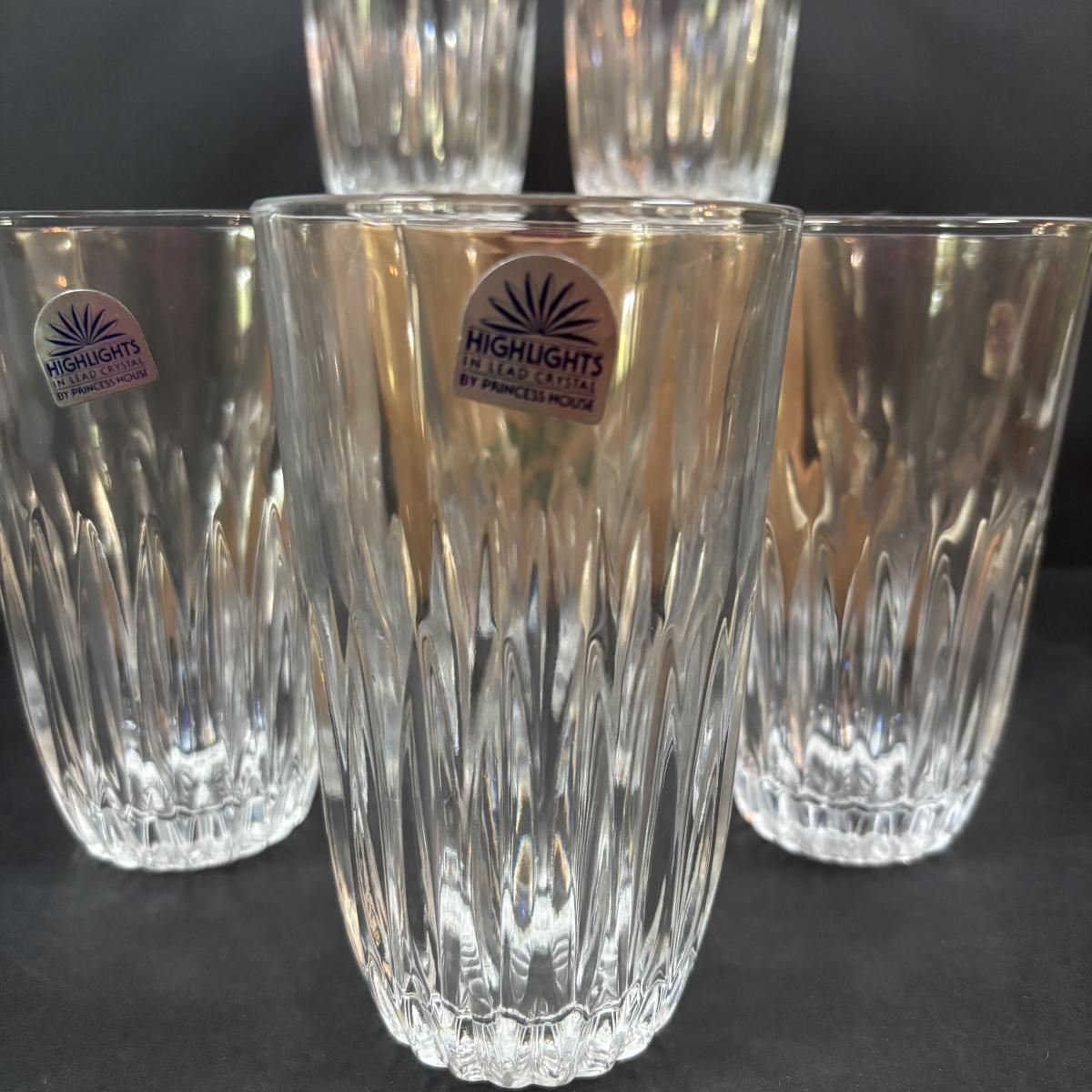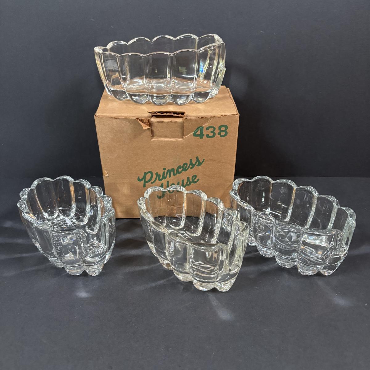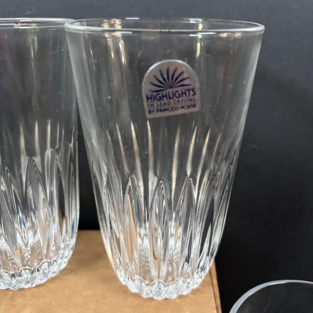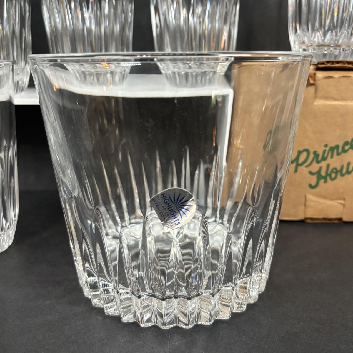 LOT 290: MCM Amston Sterling Silver & Crystal Coasters (6) along with Princess House Ice Bucket, Glasses, Flatware Holders