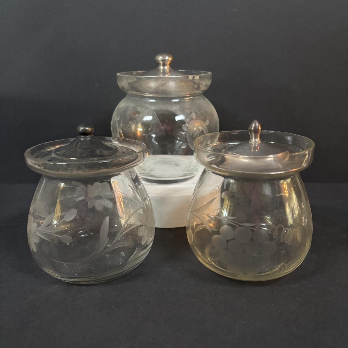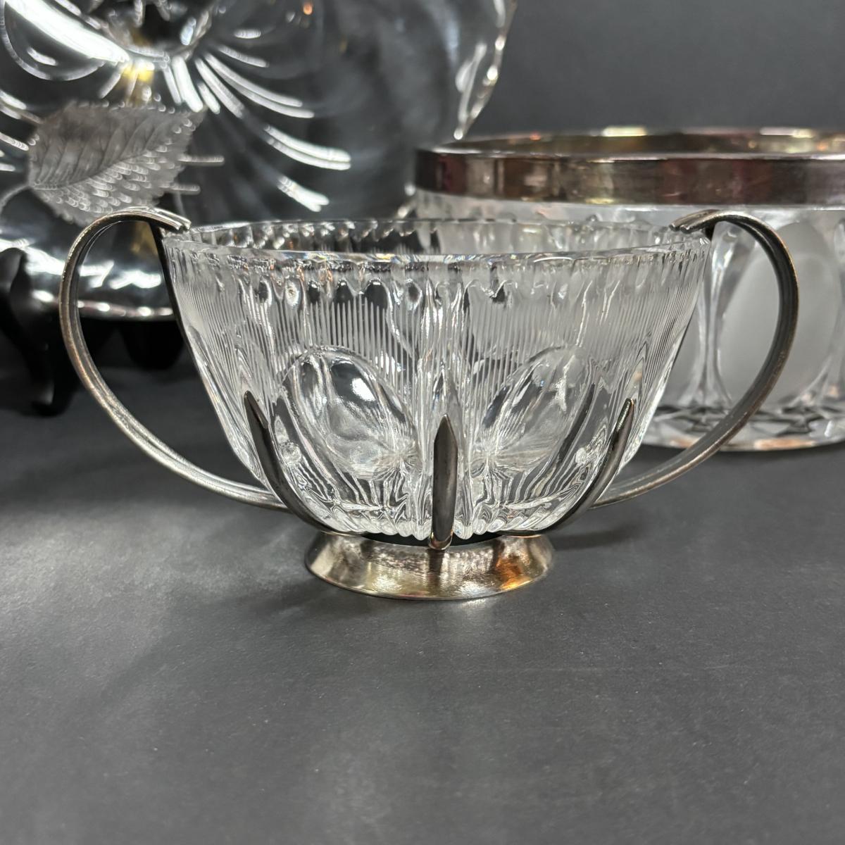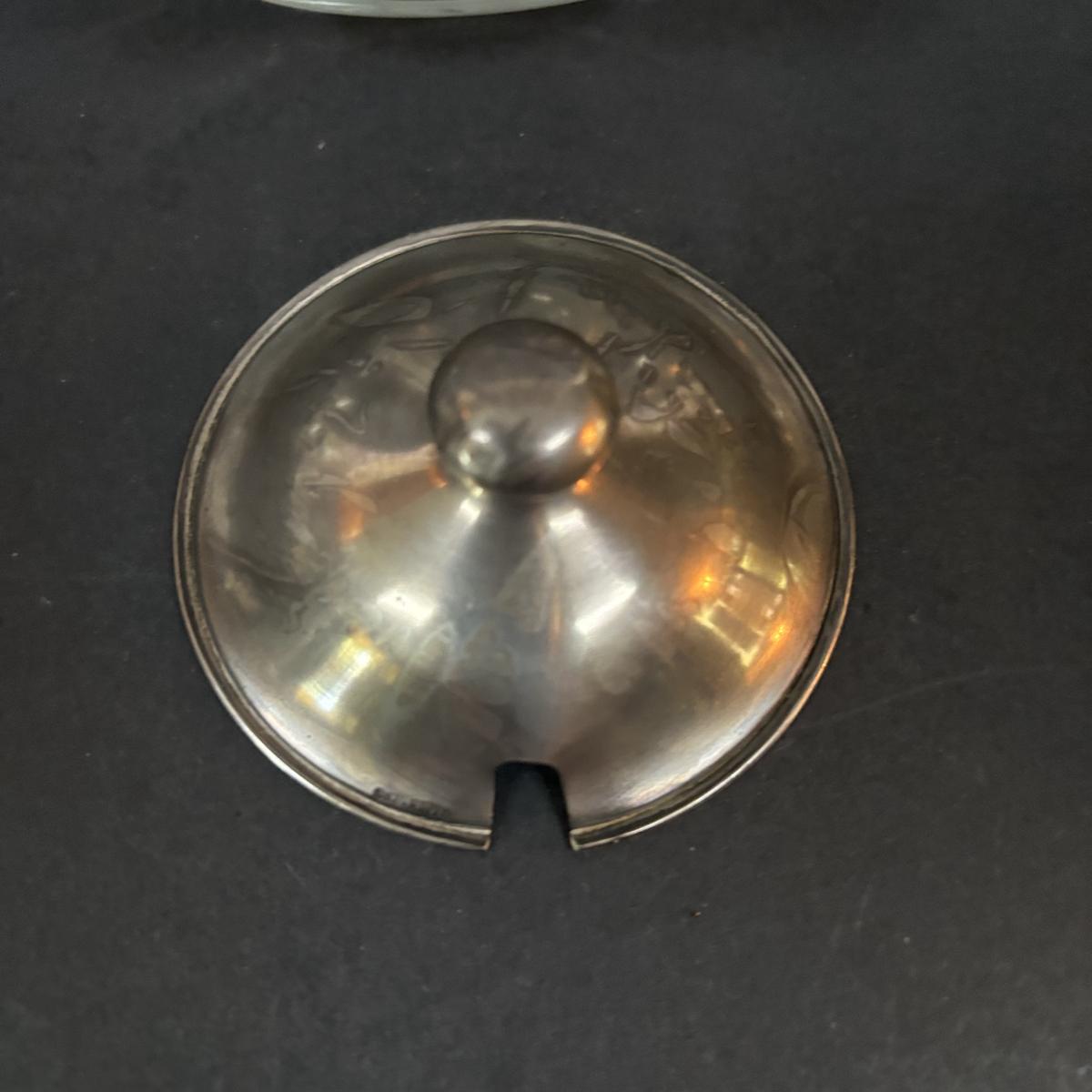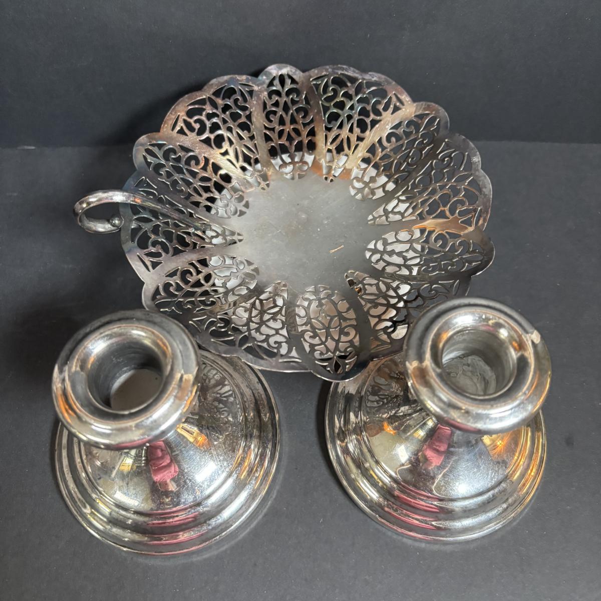 LOT 294: Vintage Sugar Bowls w/Sterling Silver Lids (3), Footed Cake Plate w/Silver Overlay Autumn Leaves, FB Rodgers Candle Holders & More