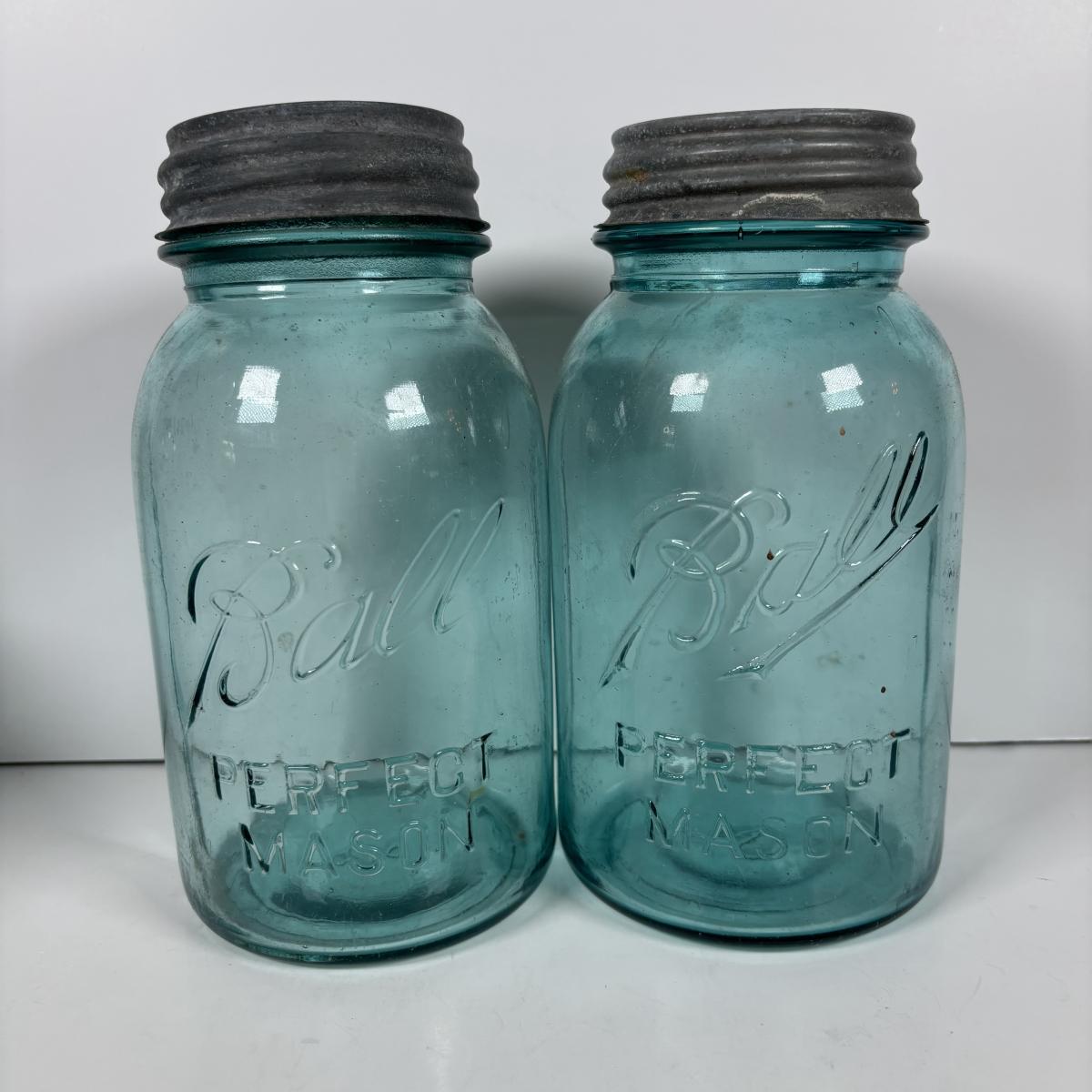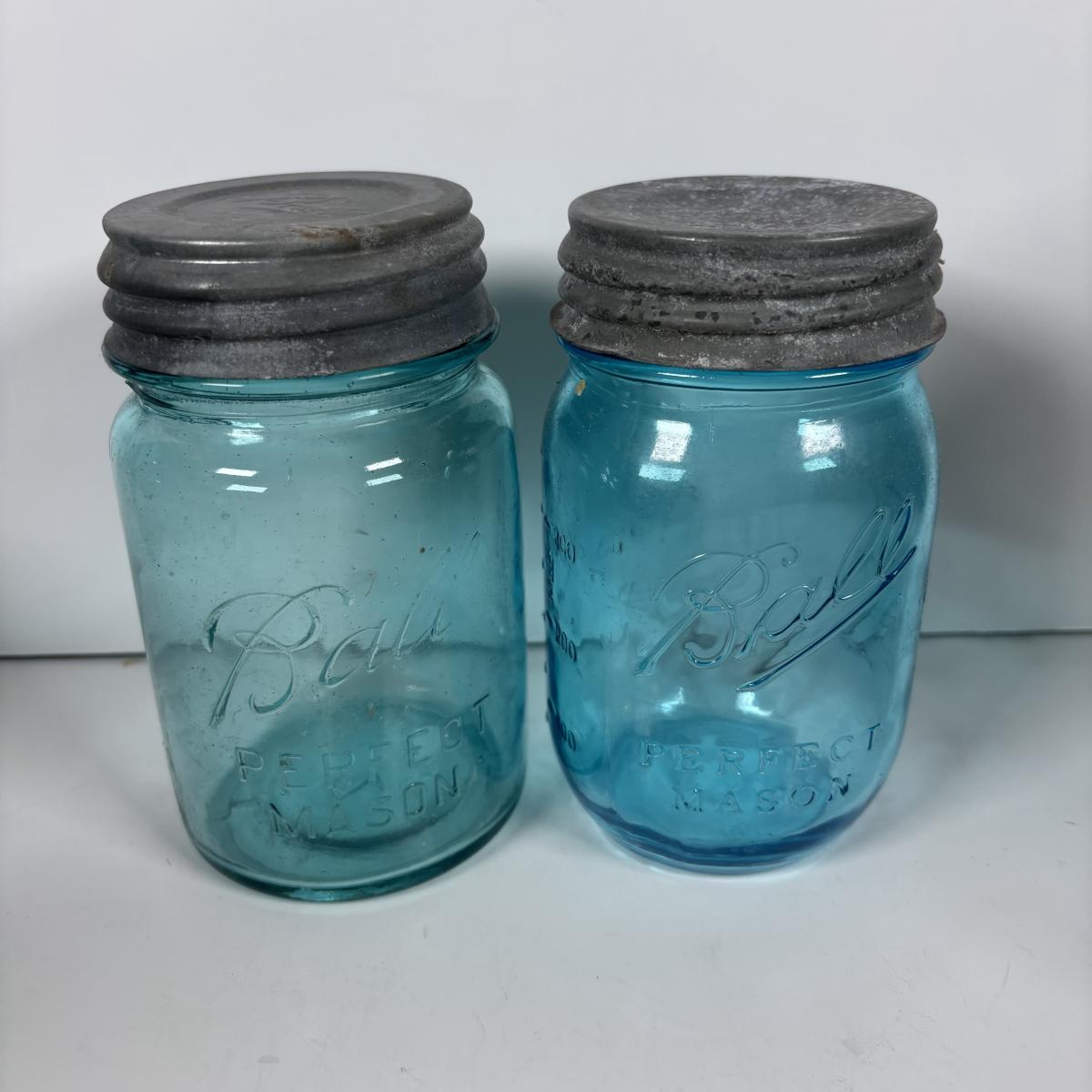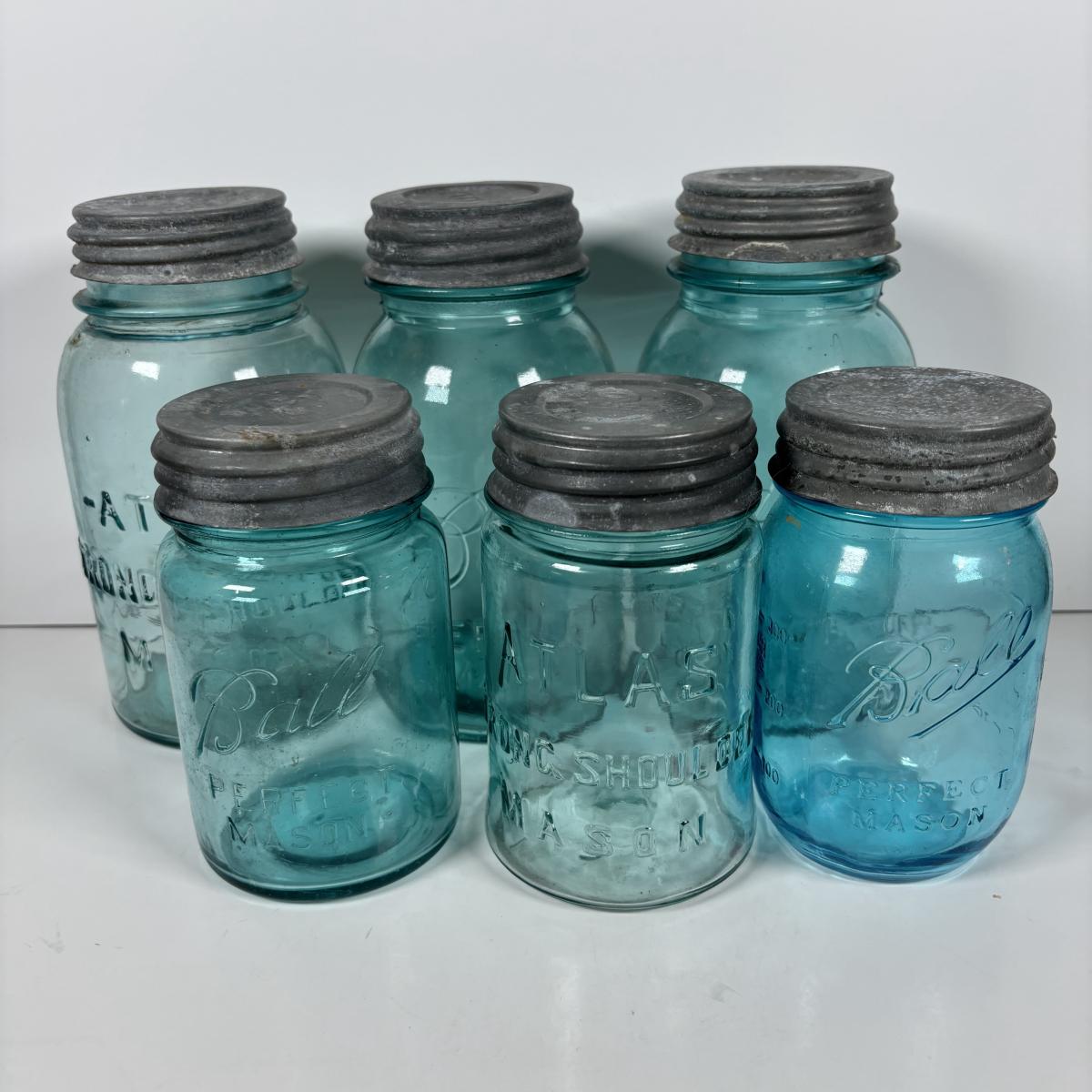 LOT 295: Vintage Blue Mason/Atlas Canning Jars with Zinc Lids