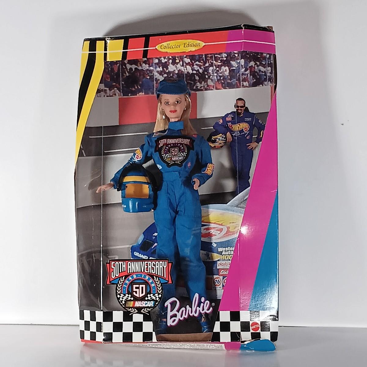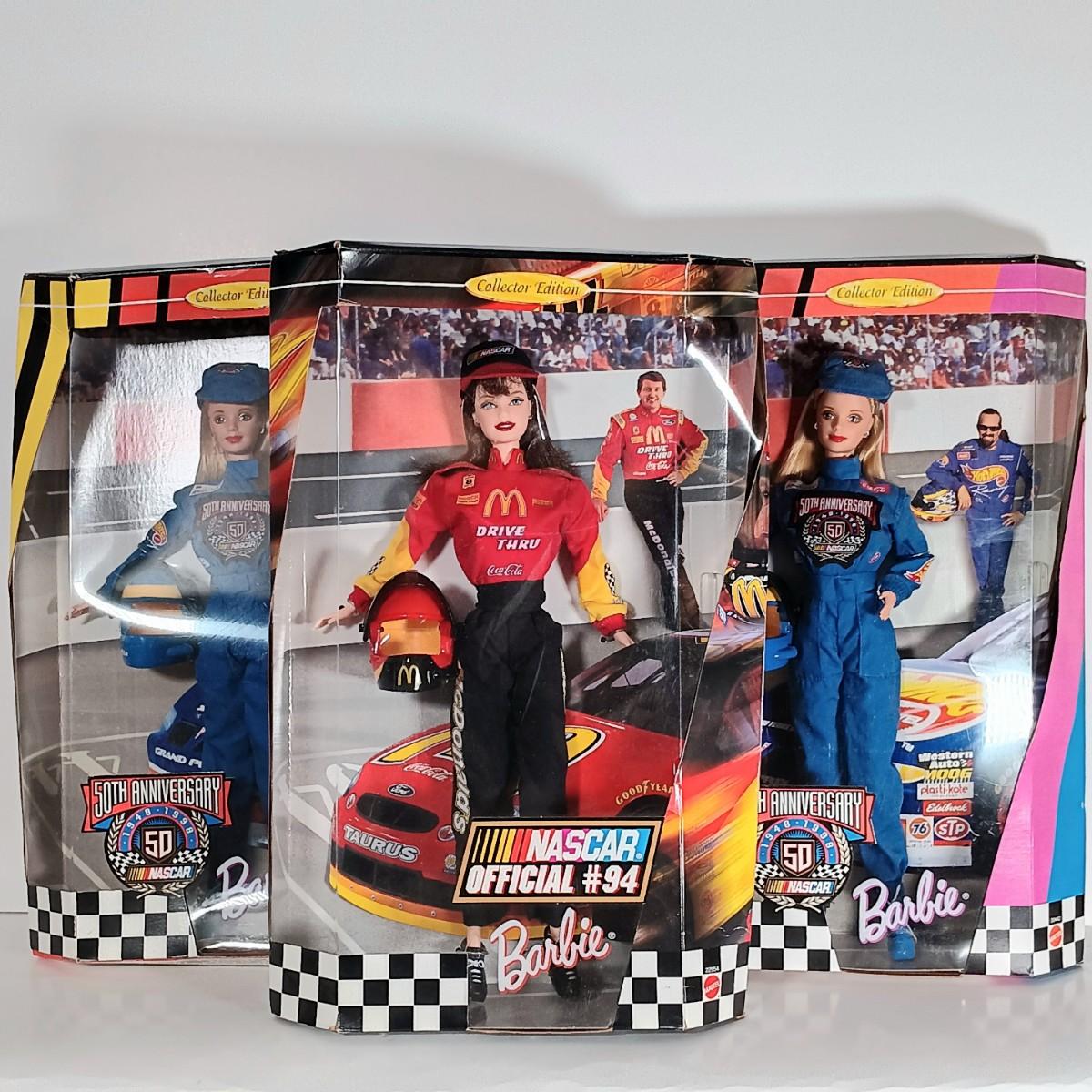 LOT 303: Barbie 1999 Nascar McDonald's Official #94 with (2) 50th Anniversary 1998 Barbies