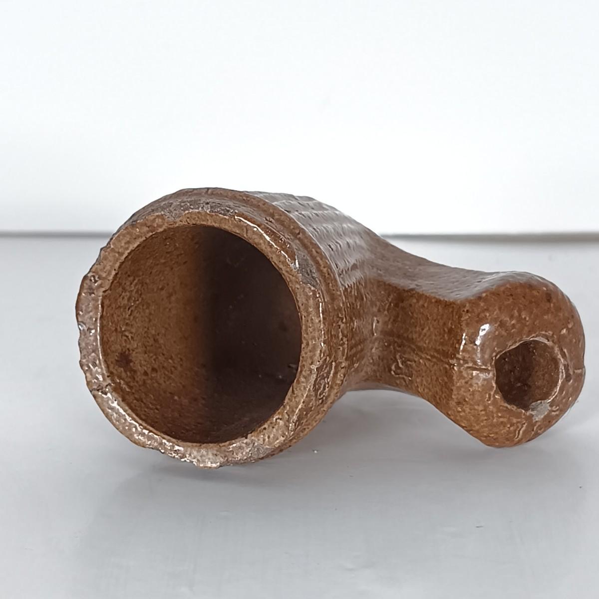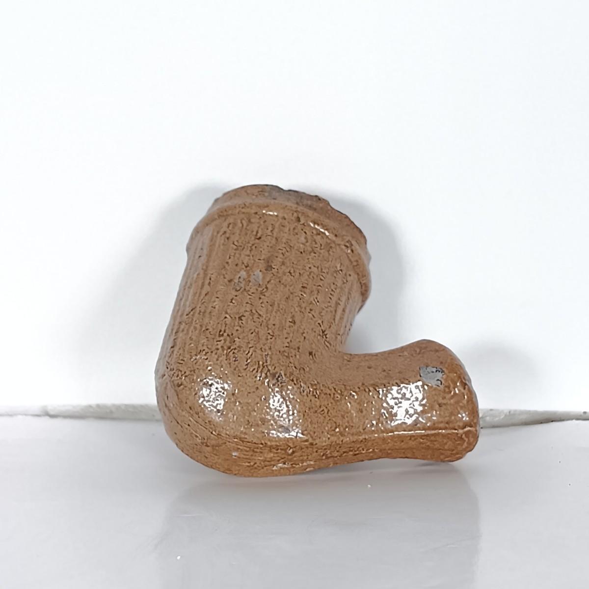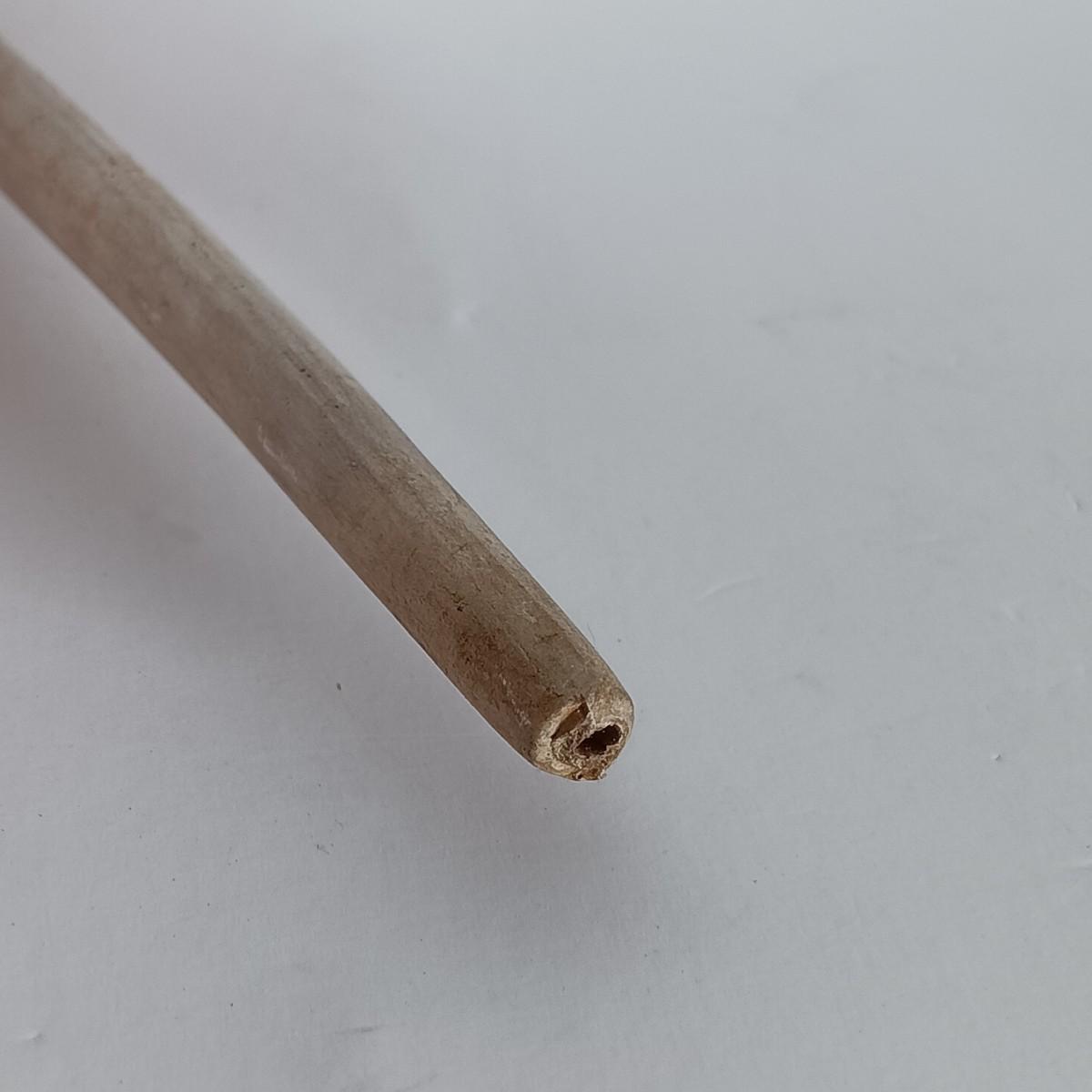 The bowl of the white pipe is chipped, and the tip of the stem is chipped.