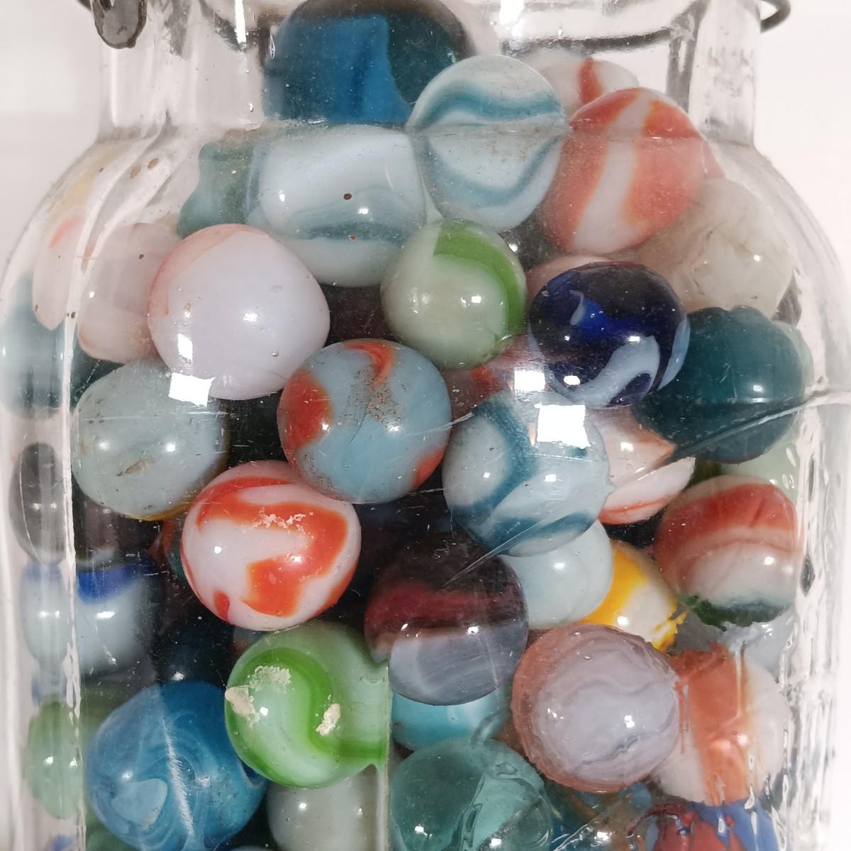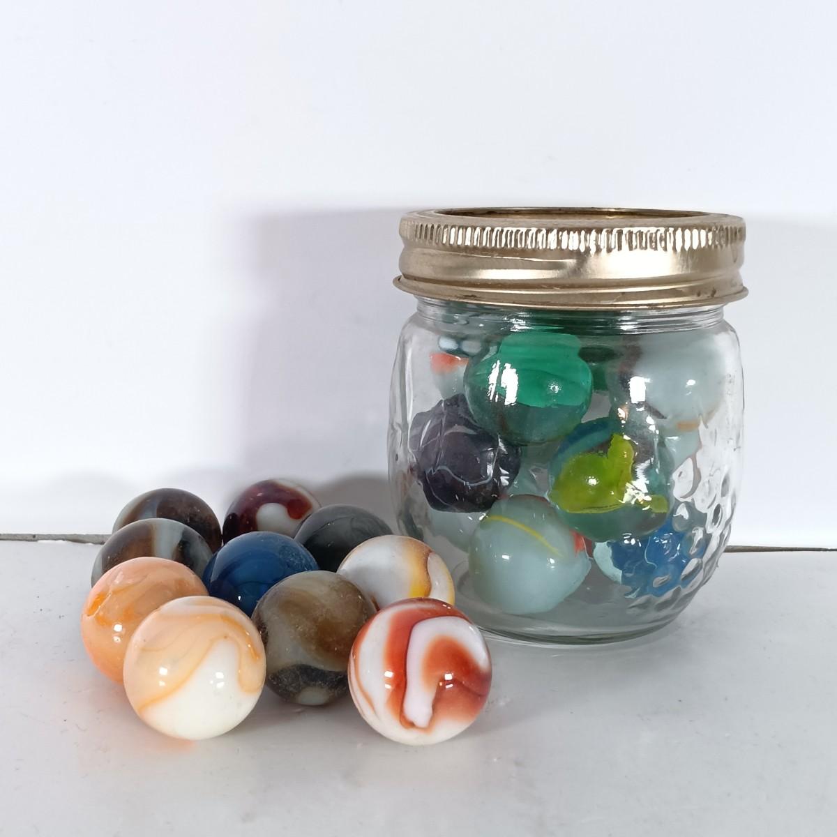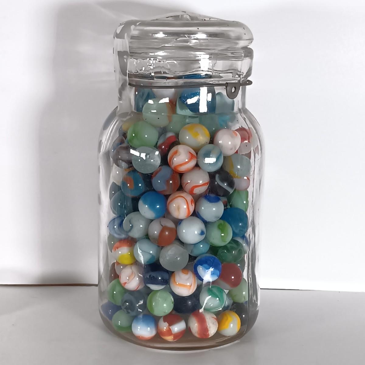 LOT 314: Vintage Marbles, Rubber DeSoto AirFlow Toy Car, Carnival Glass Piggy Bank & Seneca Sauerkraut Coin Bank