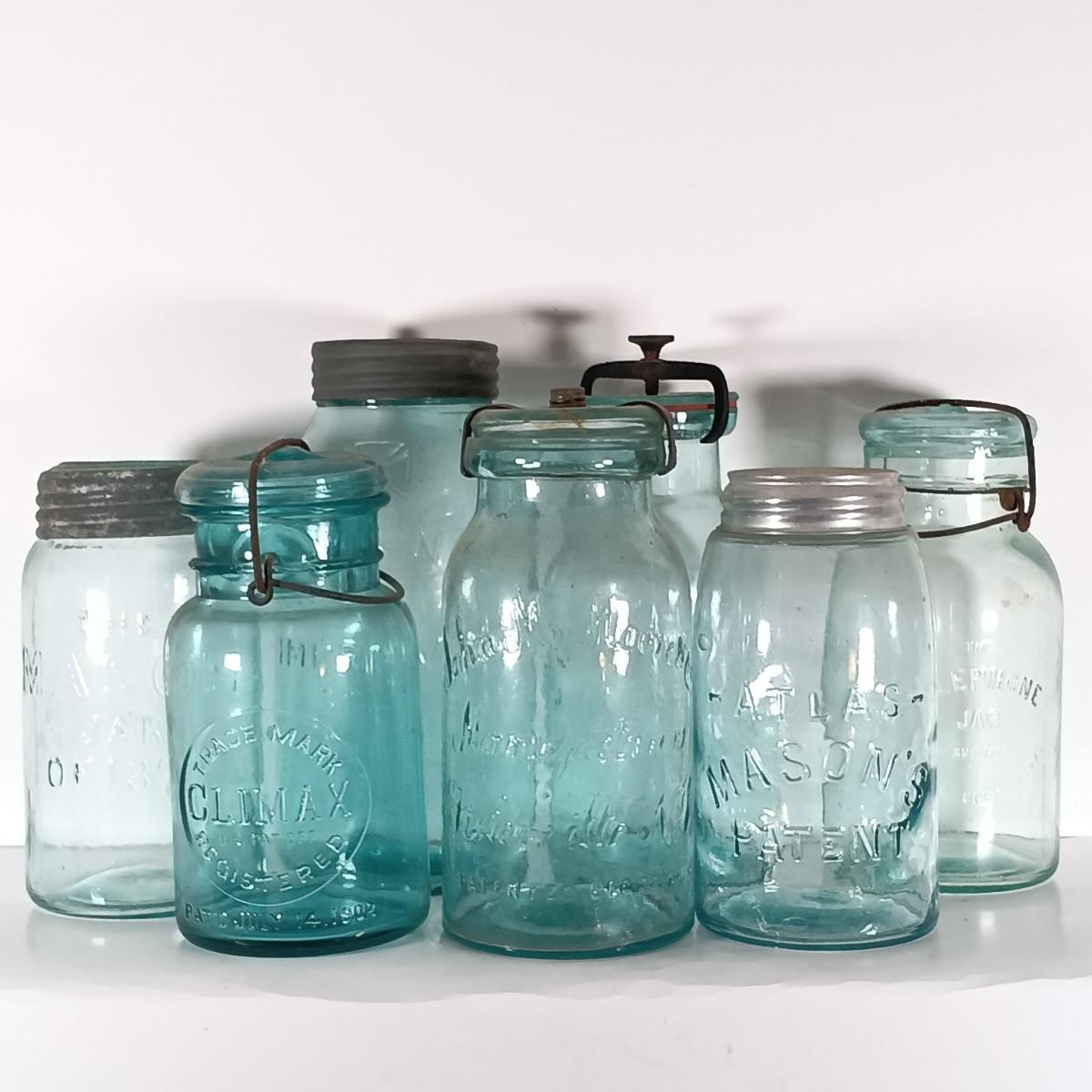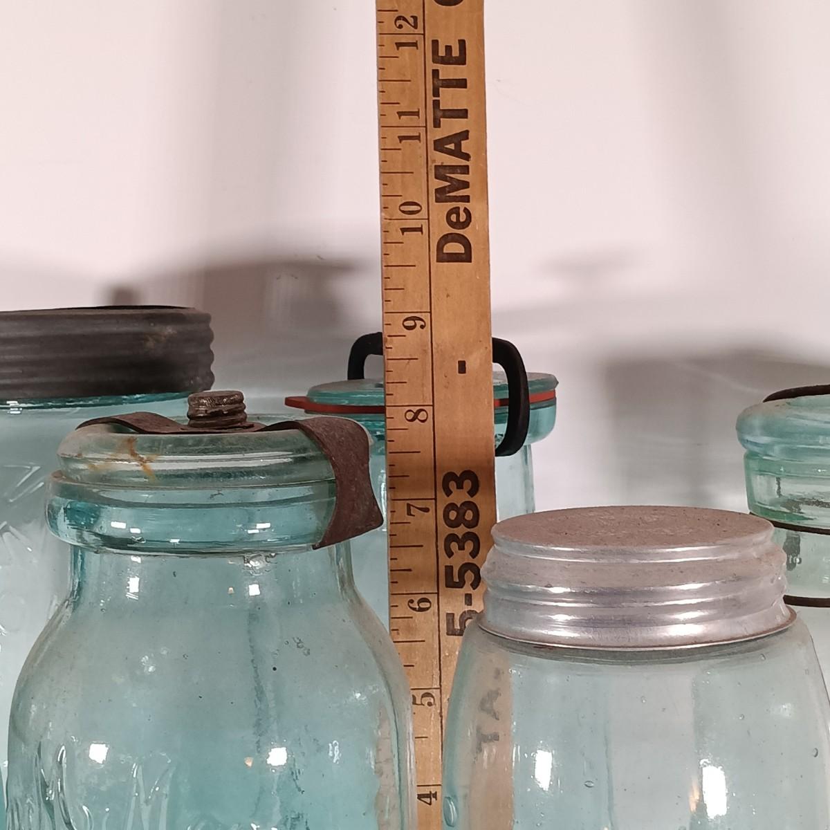 LOT 315: Collection of Blue Glass Canning Jars - Telephone Jar, Atlas, Millville Fruit Jar & More
