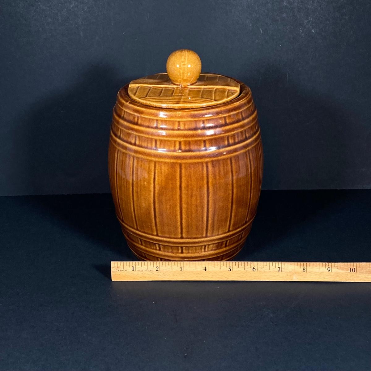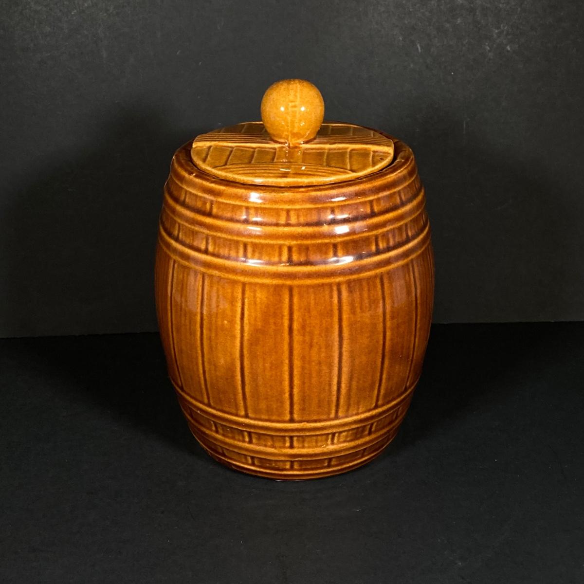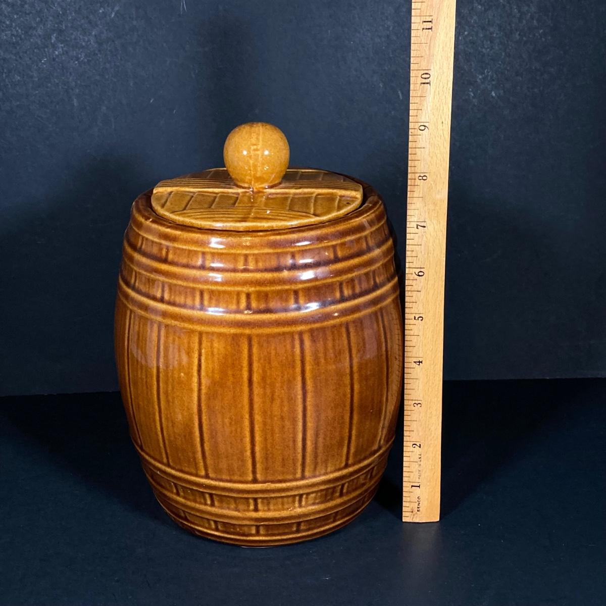 LOT 326: Vintage McCoy USA Pottery Barrel Cookie Jar