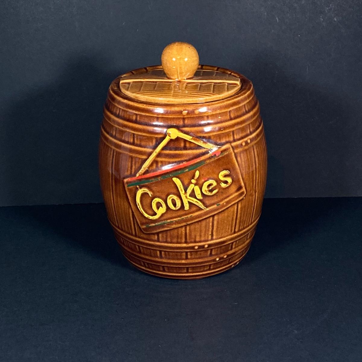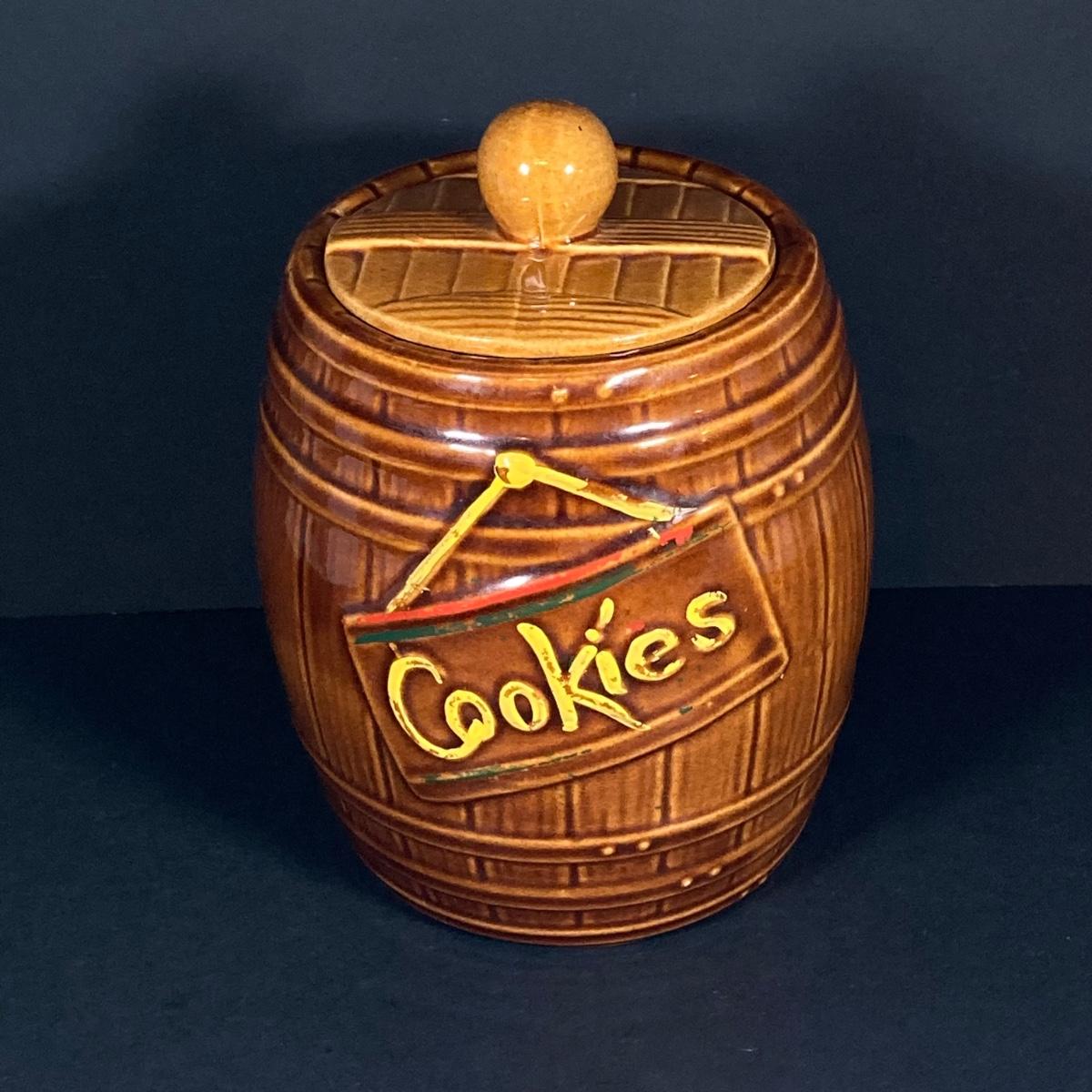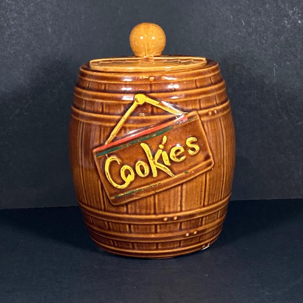 LOT 326: Vintage McCoy USA Pottery Barrel Cookie Jar