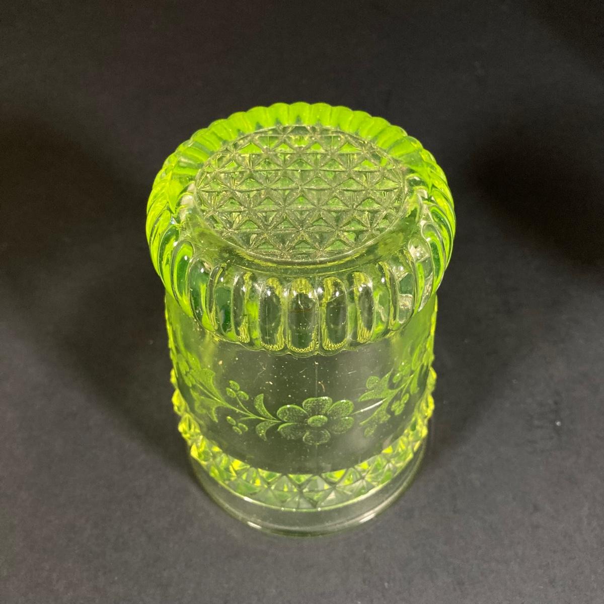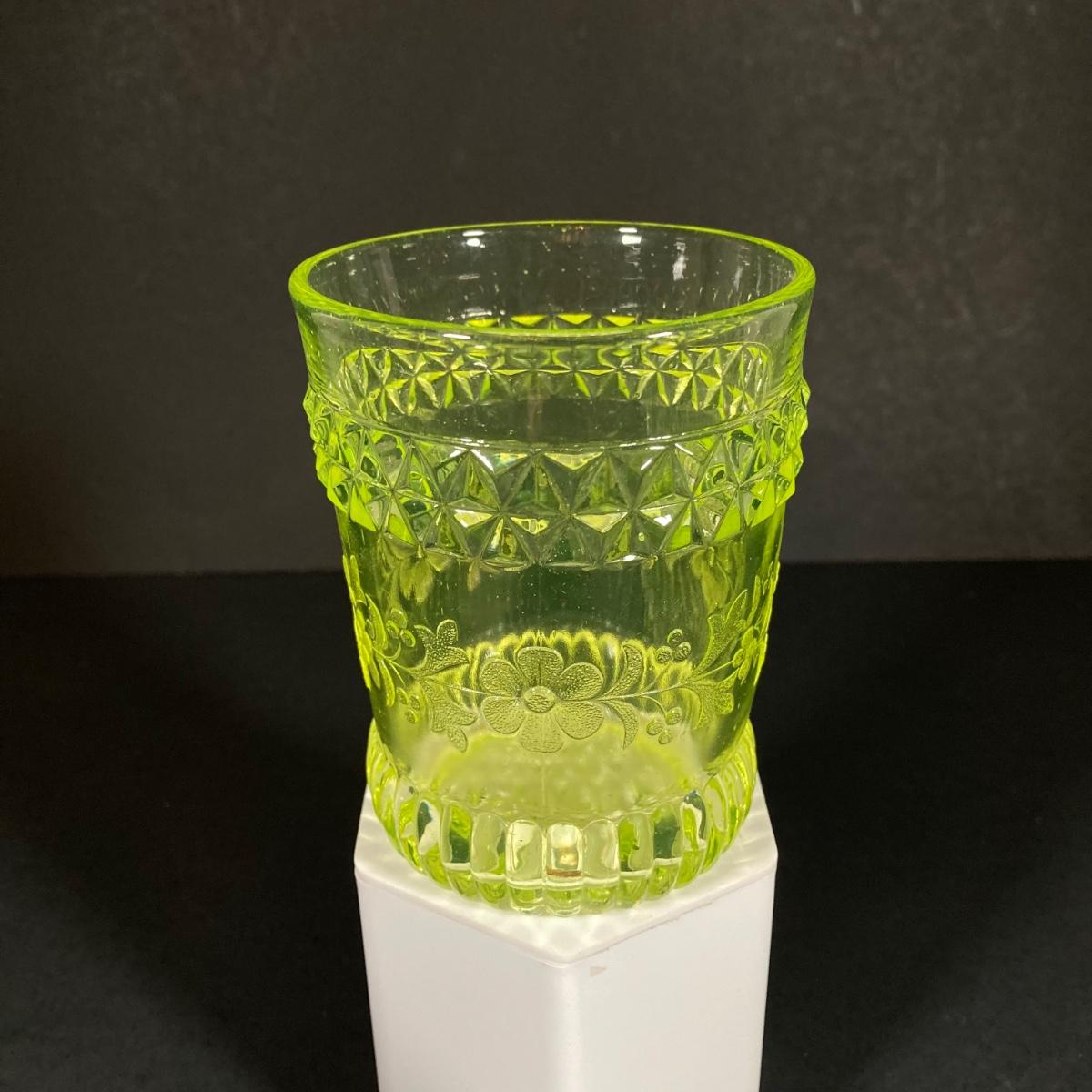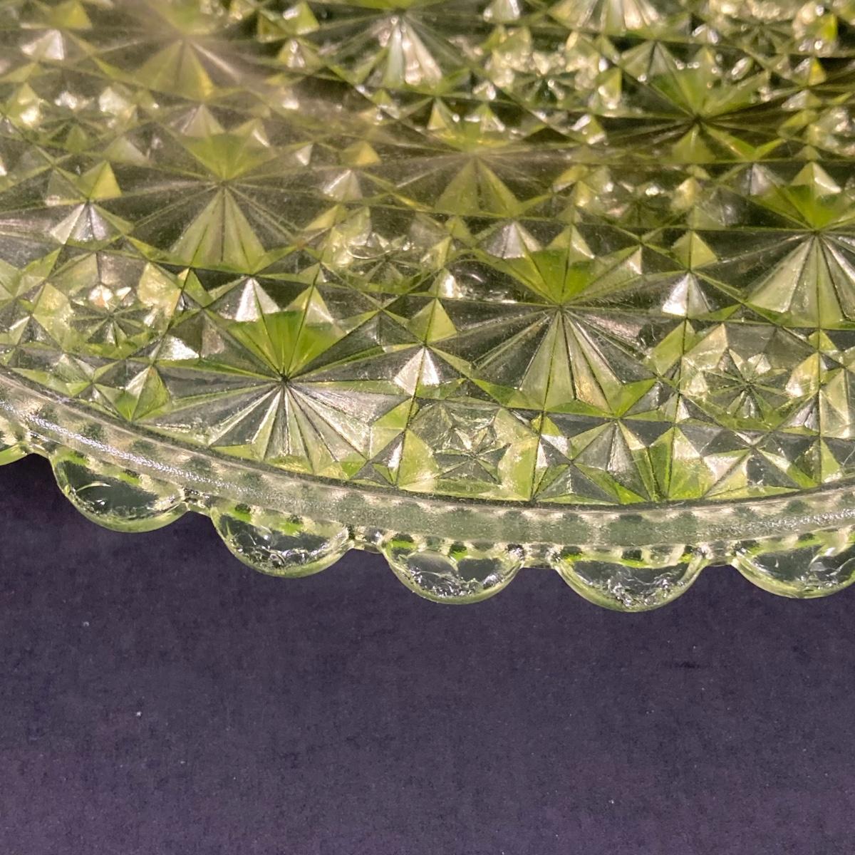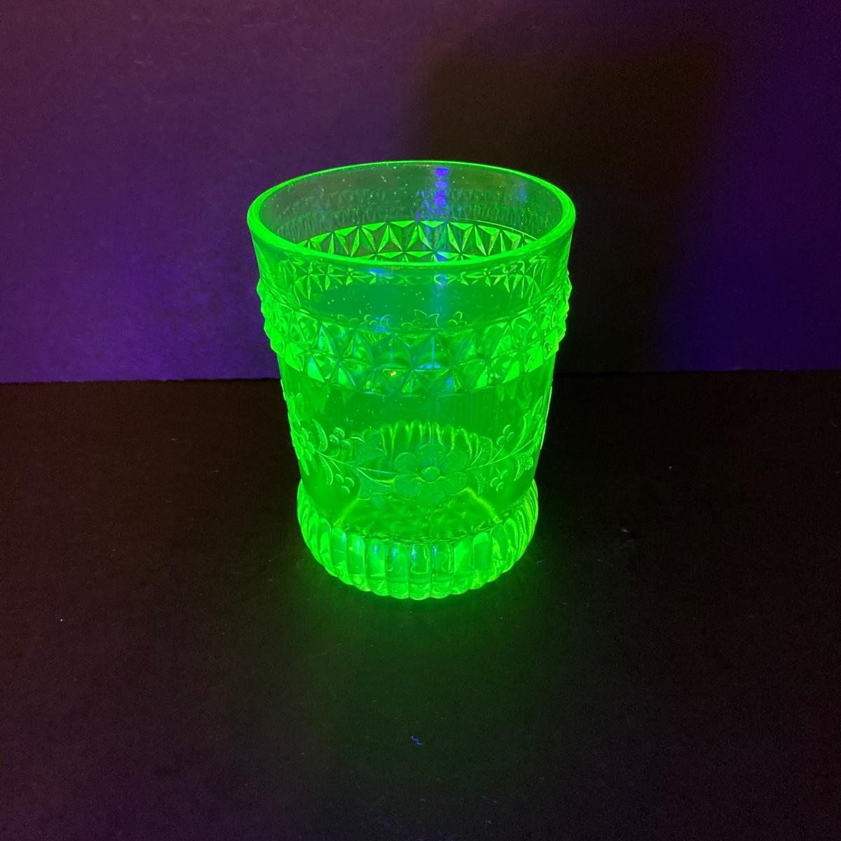 LOT 328: Beautiful Daisy & Button Glass and More - EAPN - Early American Patterned Glass Plate, Glass Top Hat and Vaseline Glowing Drinking Glass