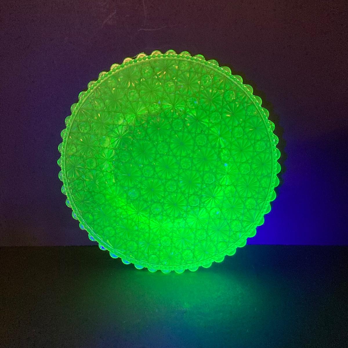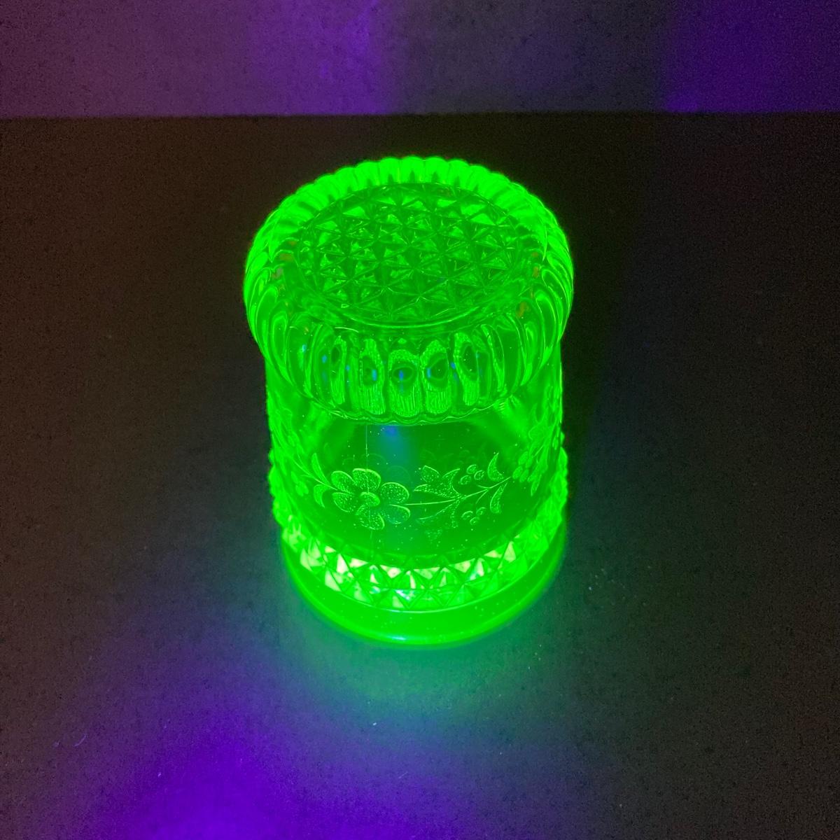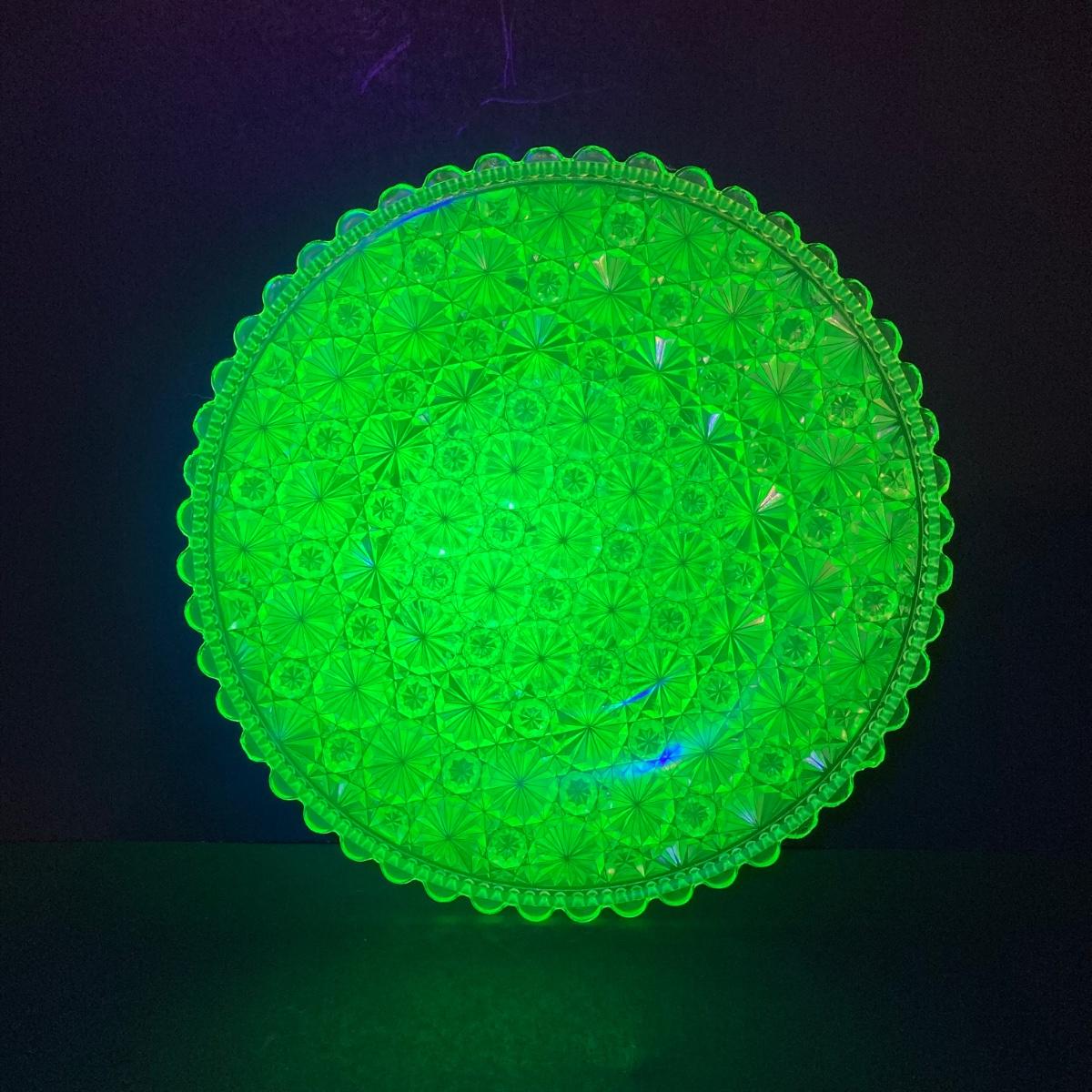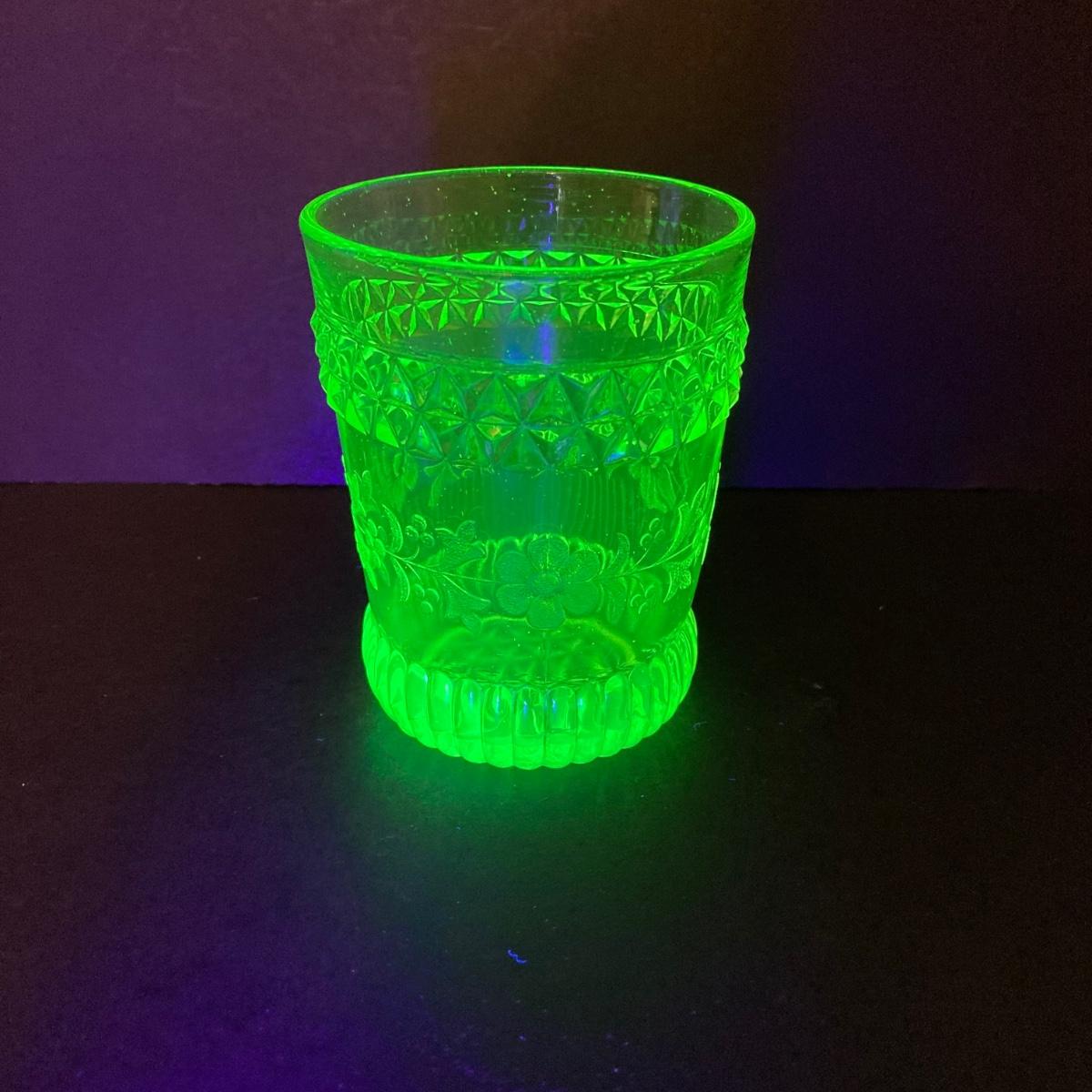 LOT 328: Beautiful Daisy & Button Glass and More - EAPN - Early American Patterned Glass Plate, Glass Top Hat and Vaseline Glowing Drinking Glass