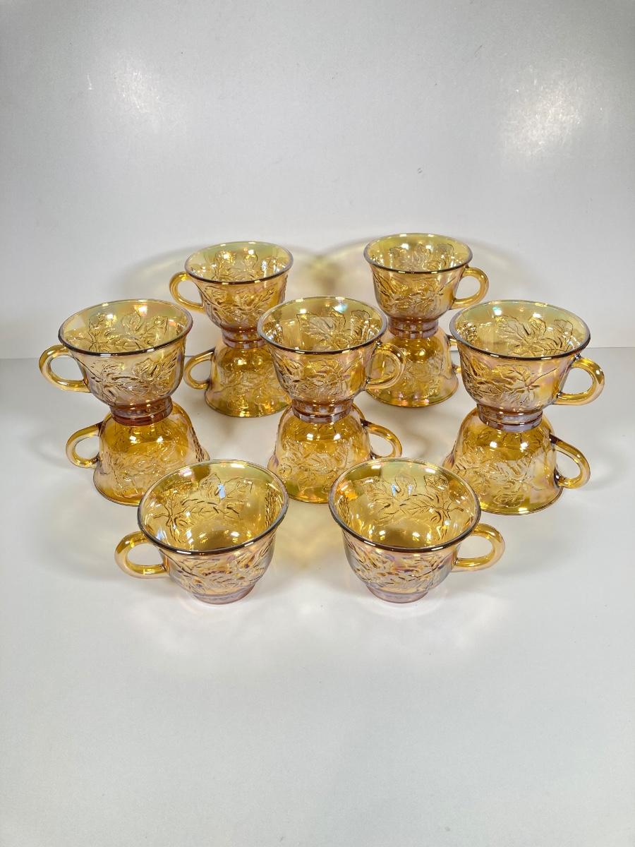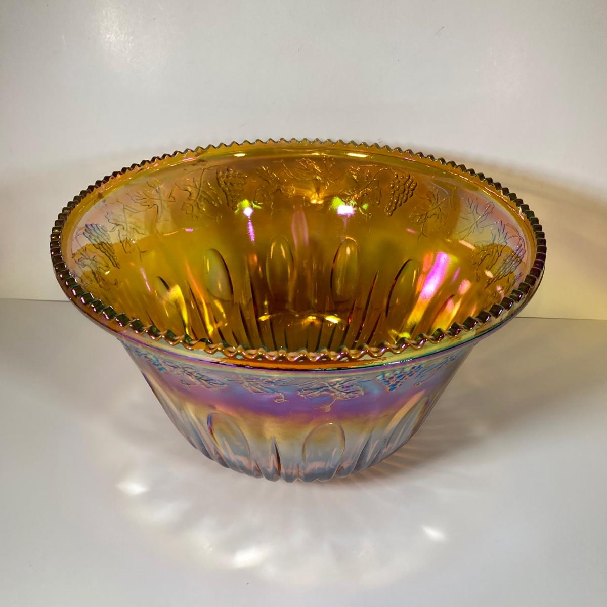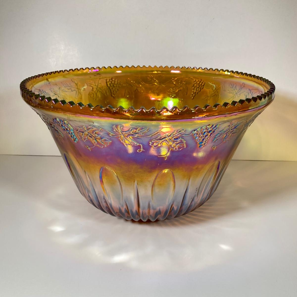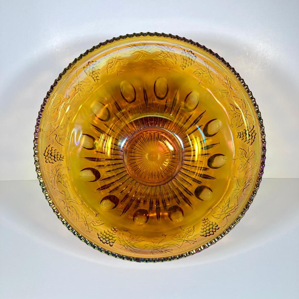 LOT 337: Dazzling Carnival Glass Punch Bowl with Twelve Cups