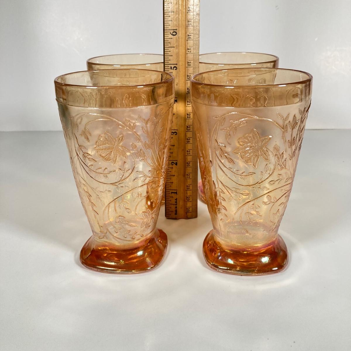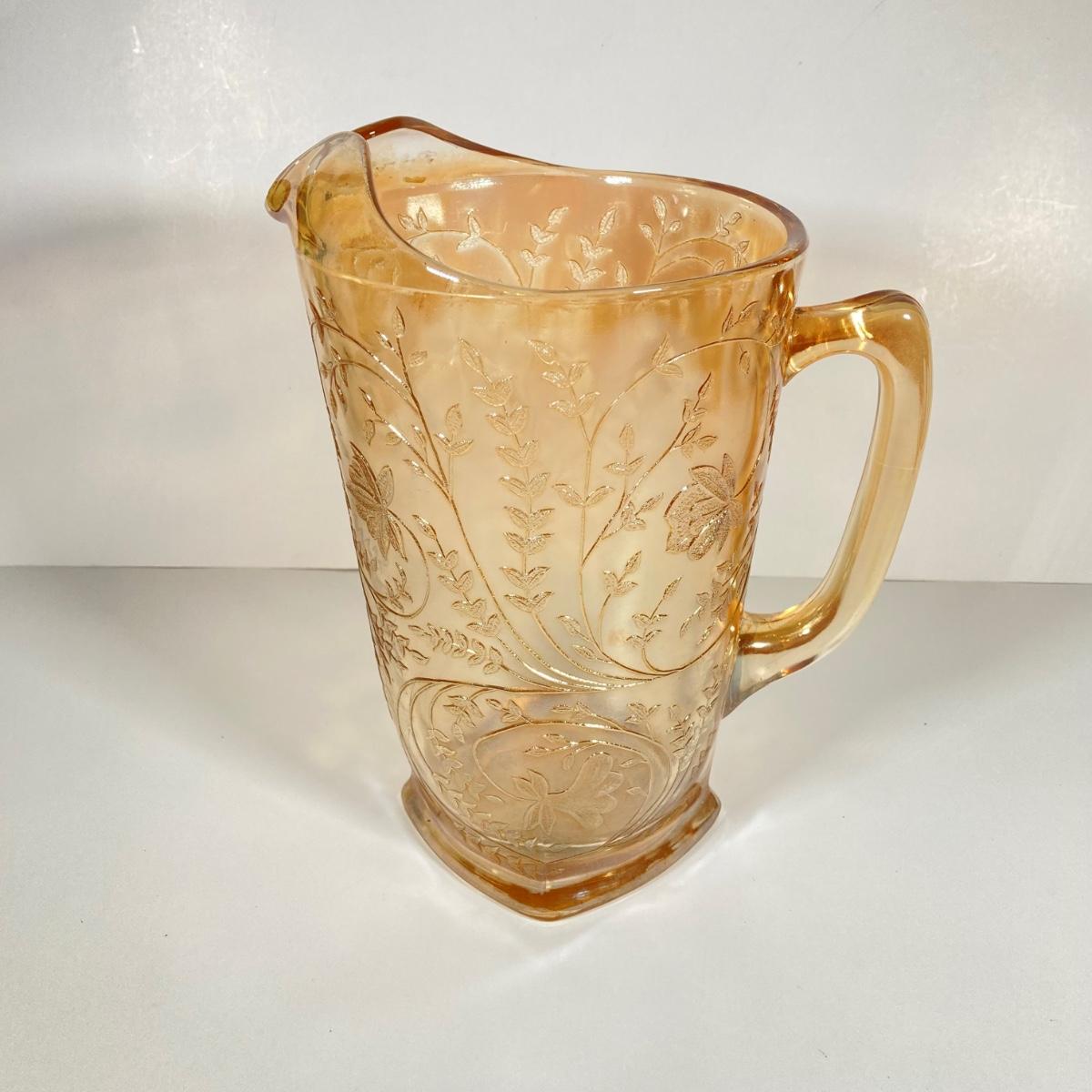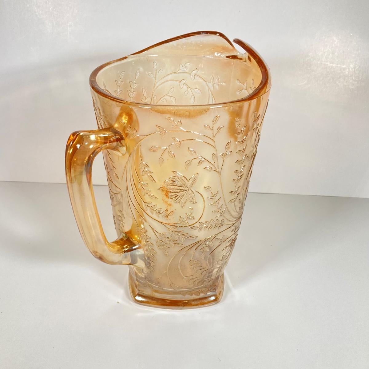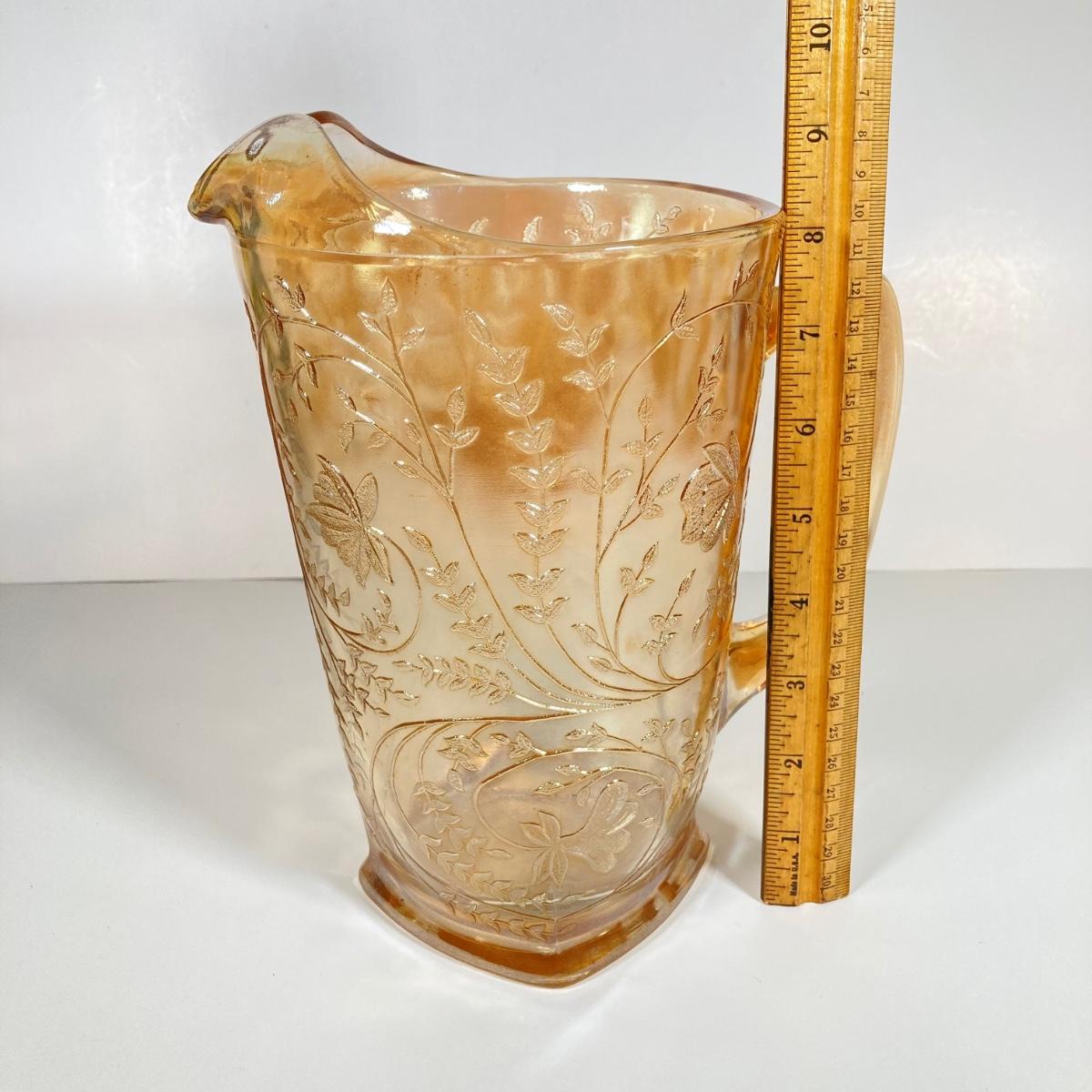 LOT 342: Carnival Glass Pitcher with Four Drinking Glasses