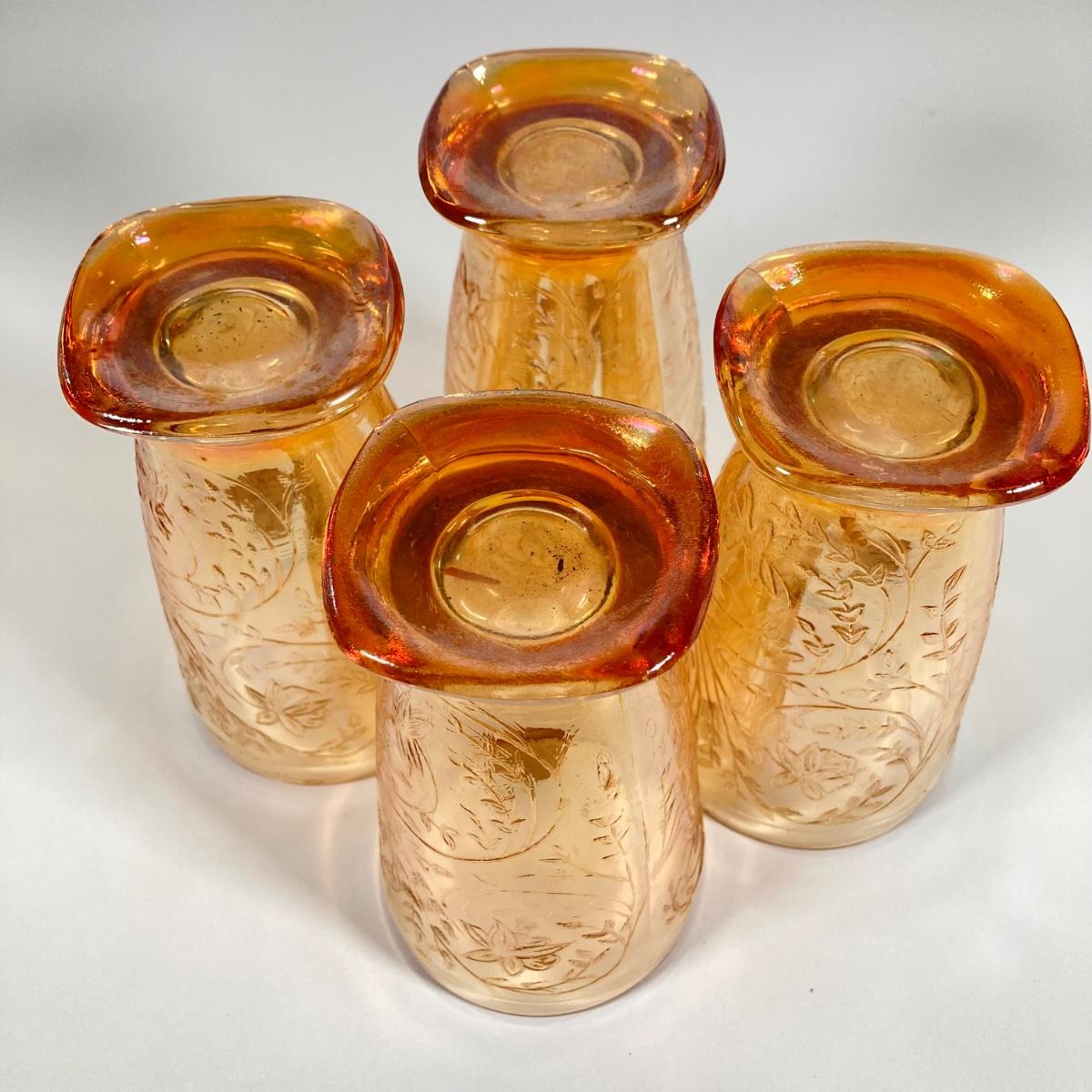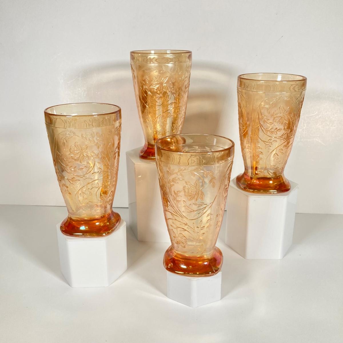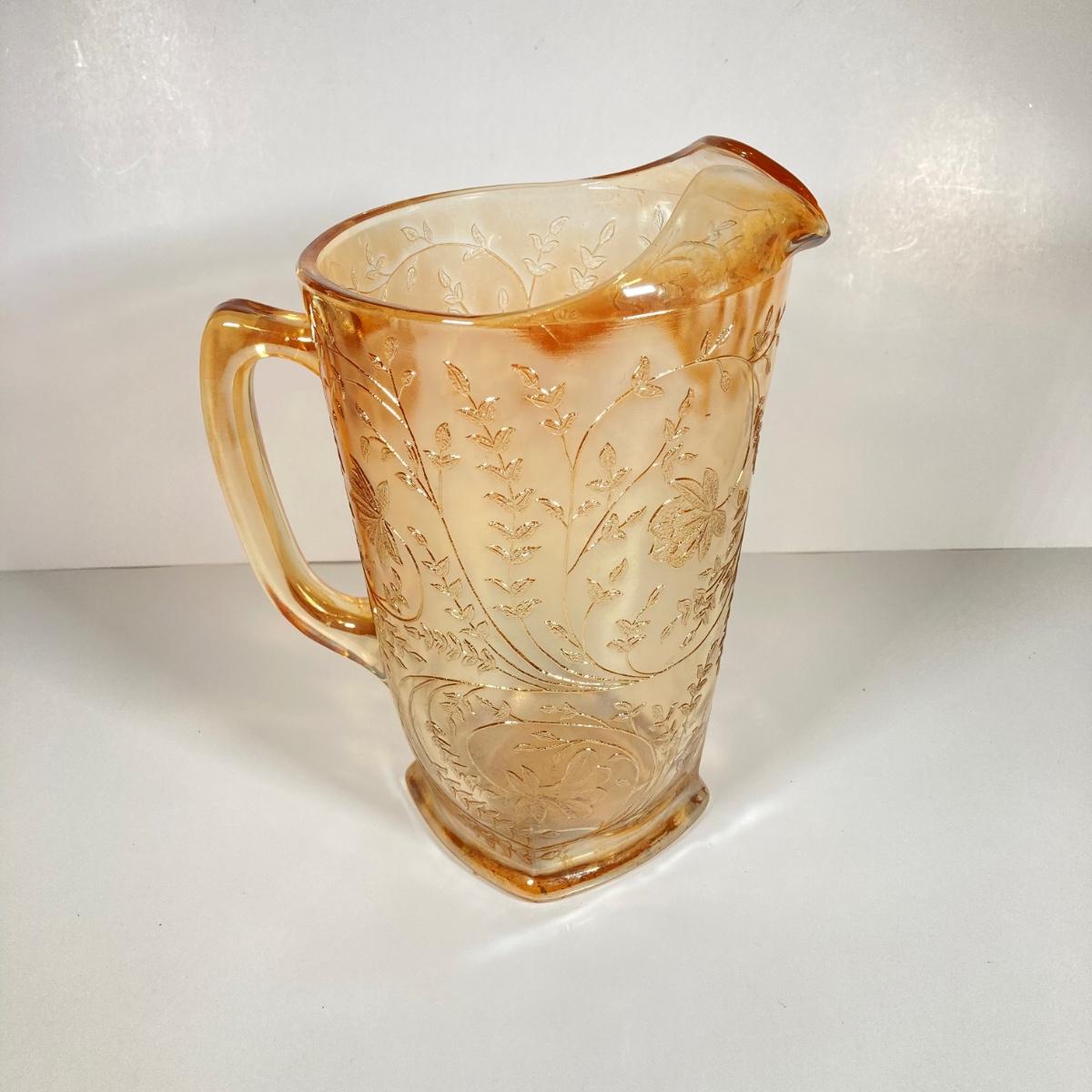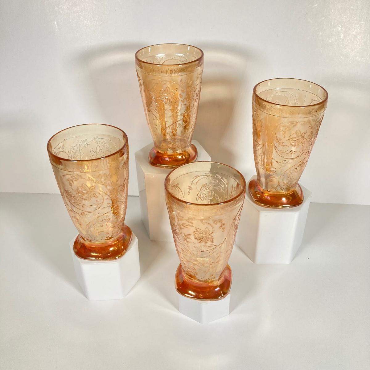LOT 342: Carnival Glass Pitcher with Four Drinking Glasses