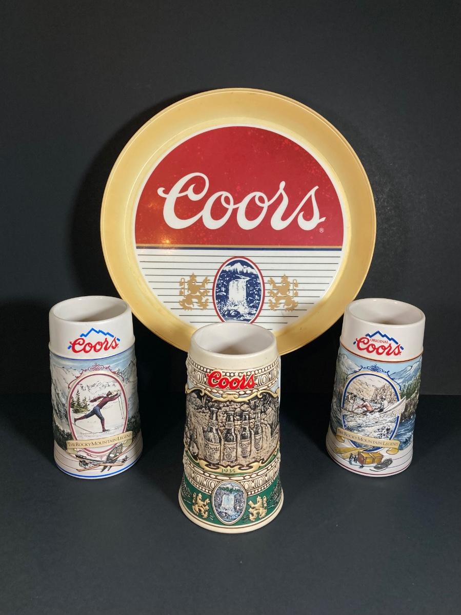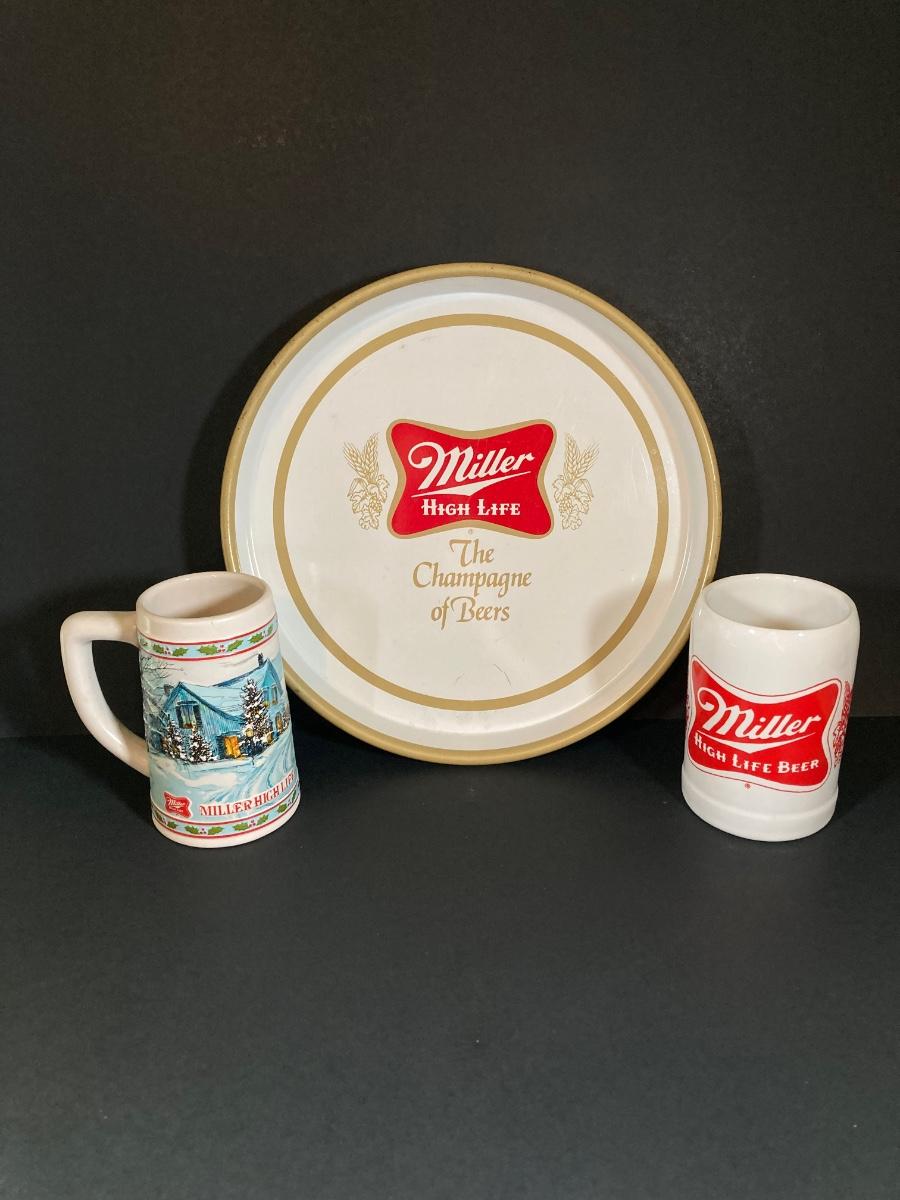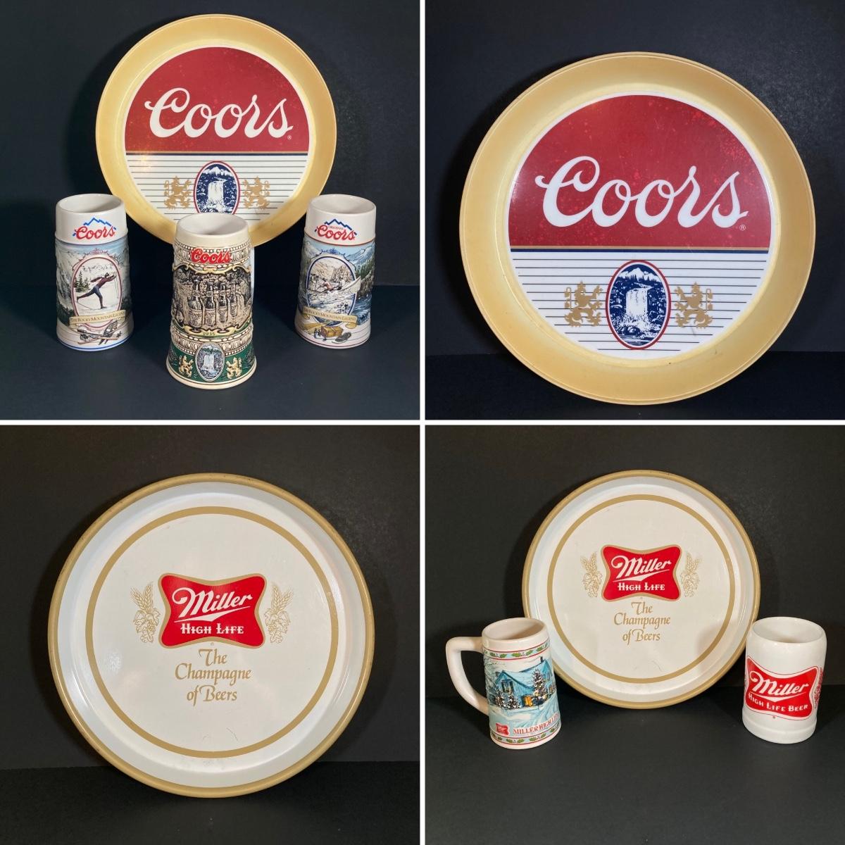 LOT 344: Coors Brewing Company and Miller High Life Vintage Collector Collection - Trays and Mugs / Steins