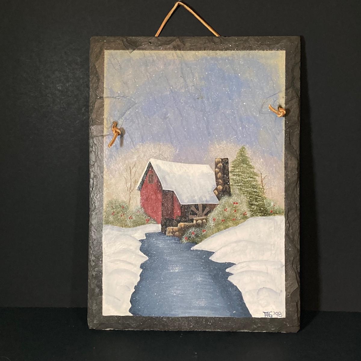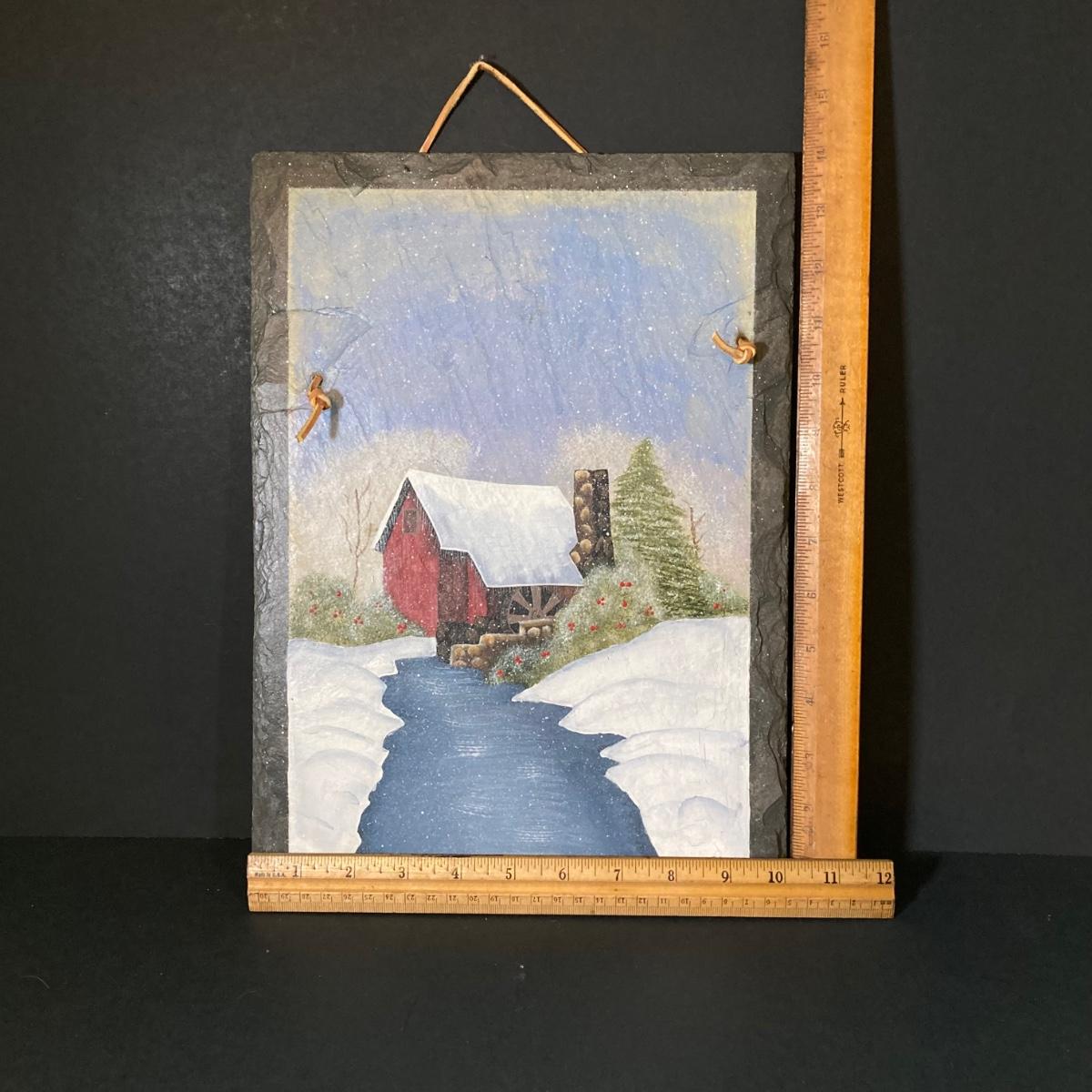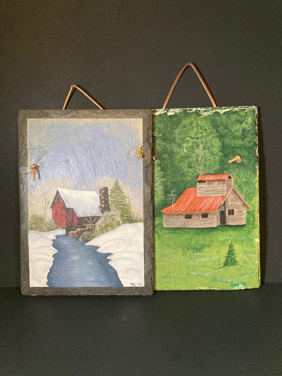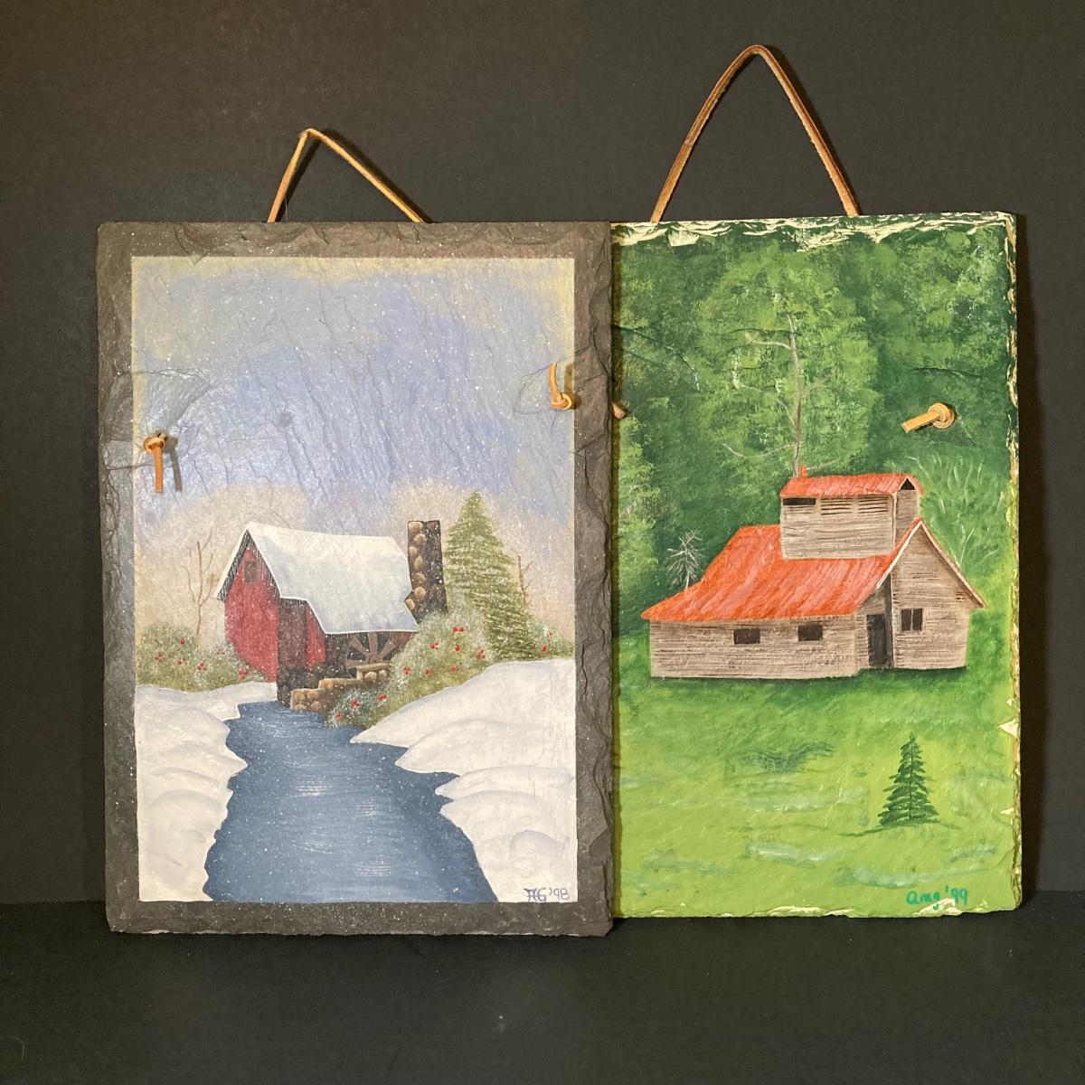 LOT 347: Pair of Slate Painted Landscape Wall Decor - Signed by Artist