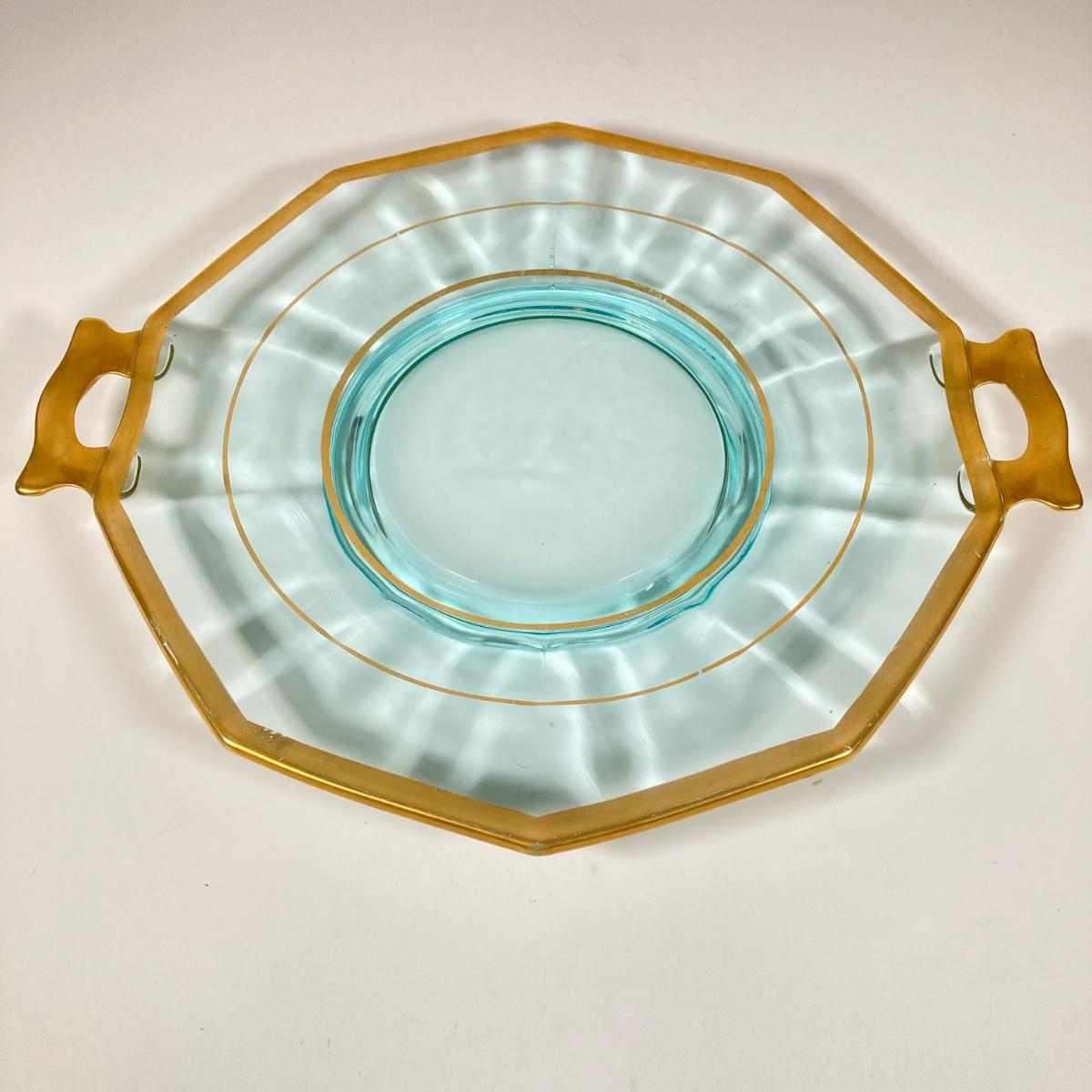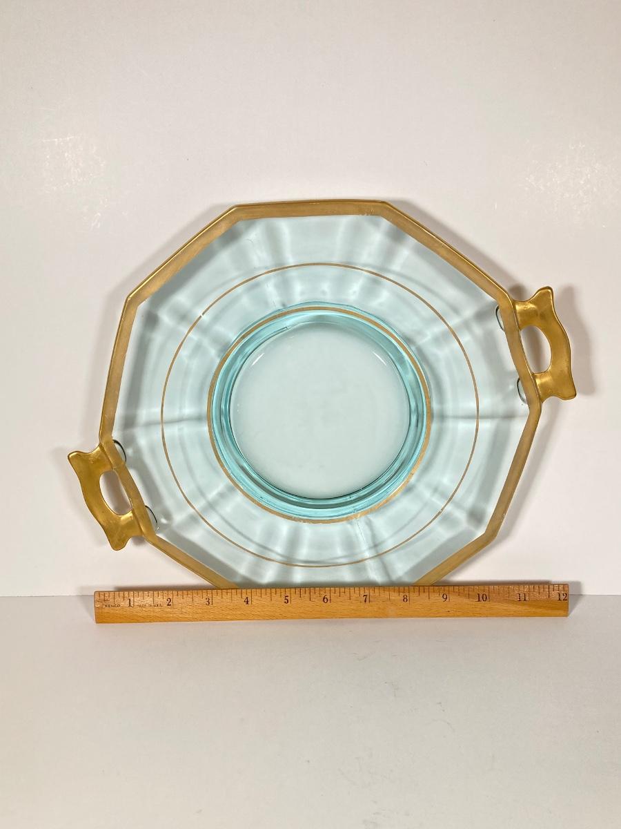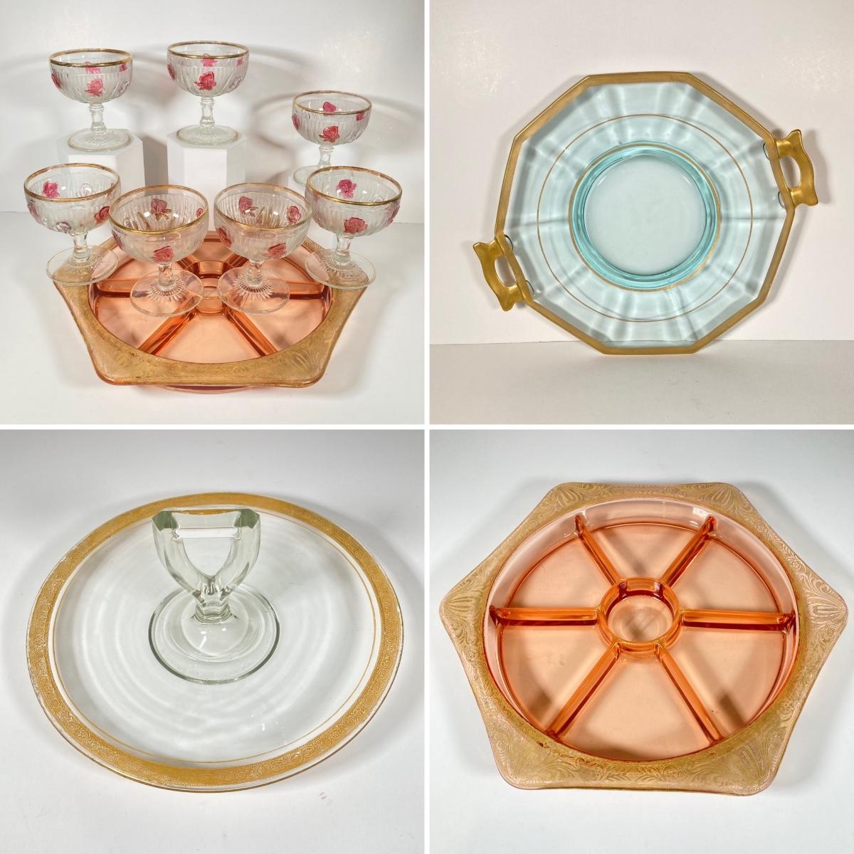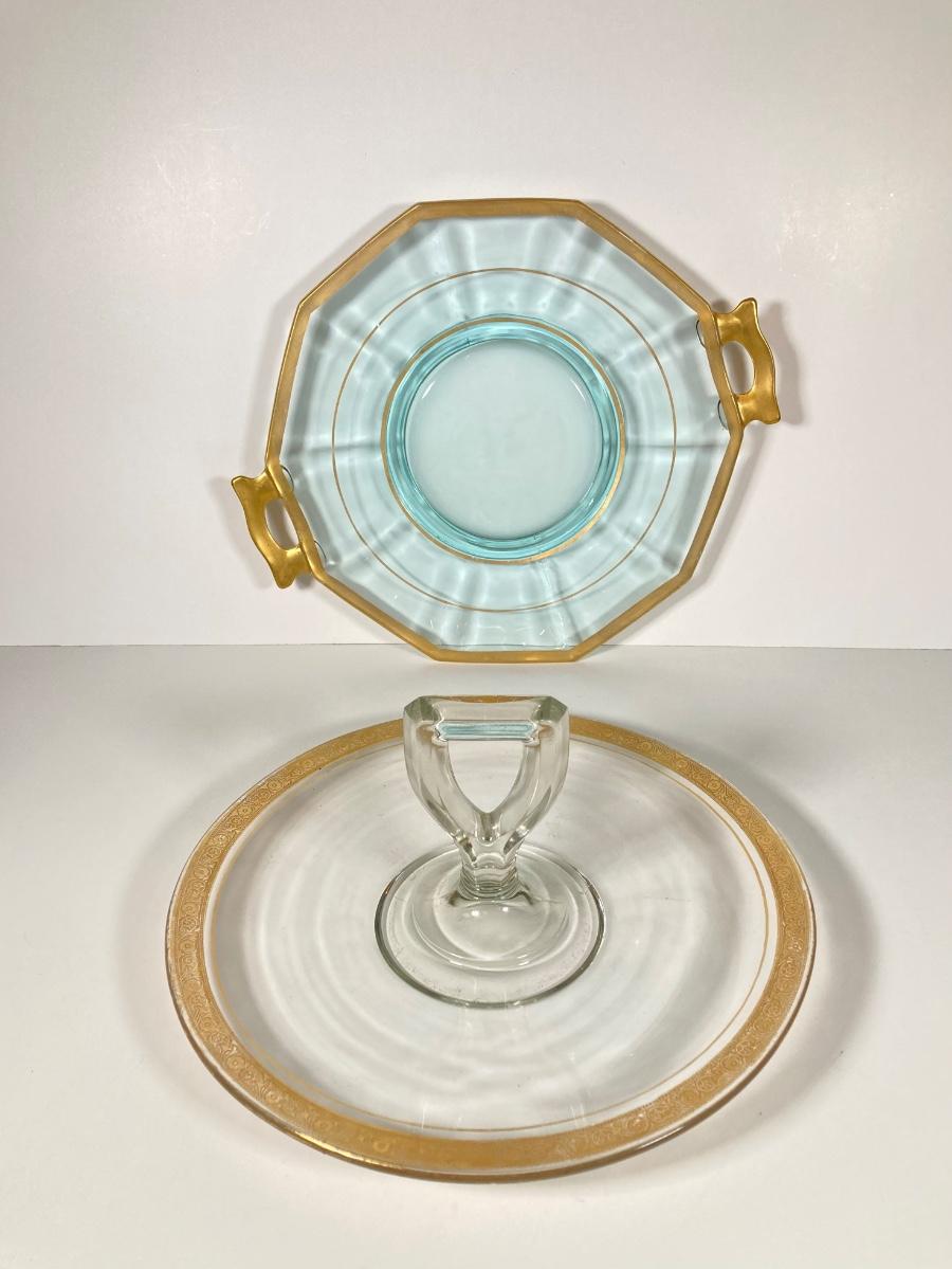 LOT 358: Collection of Beautiful Gold Trim Serving Ware - Serving Plates and Glasses