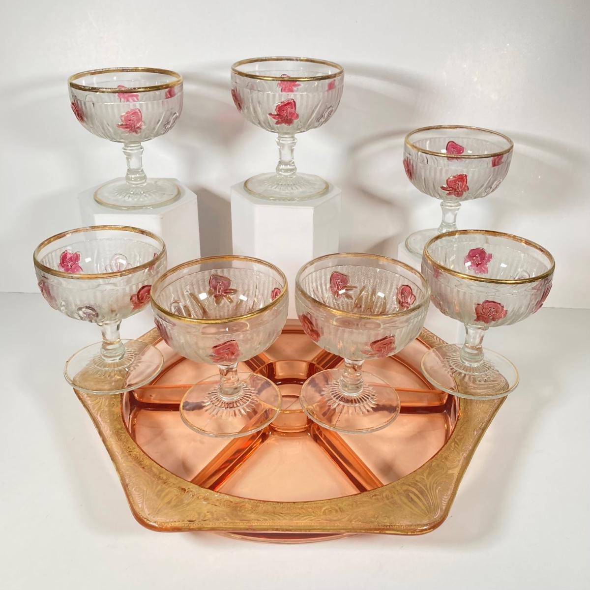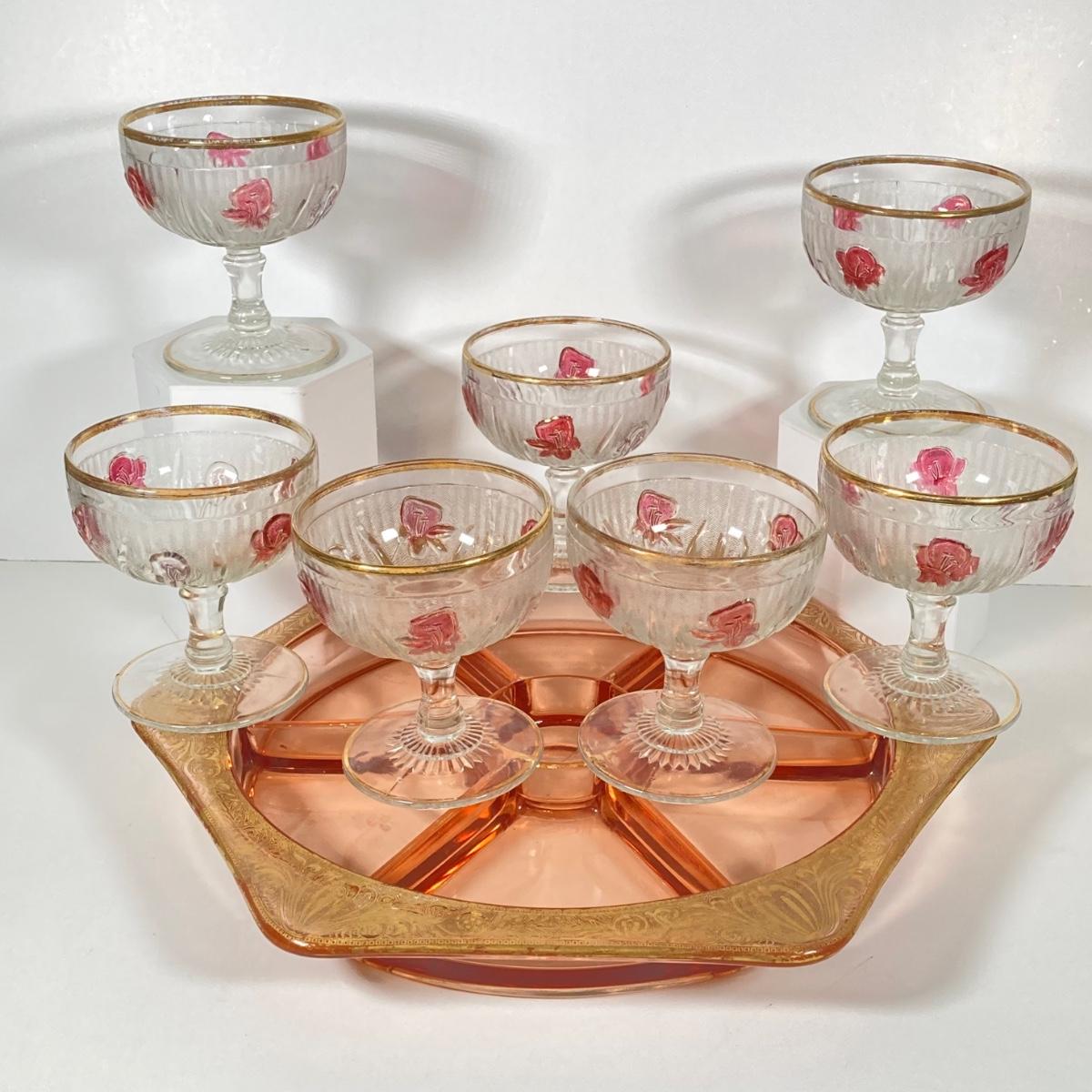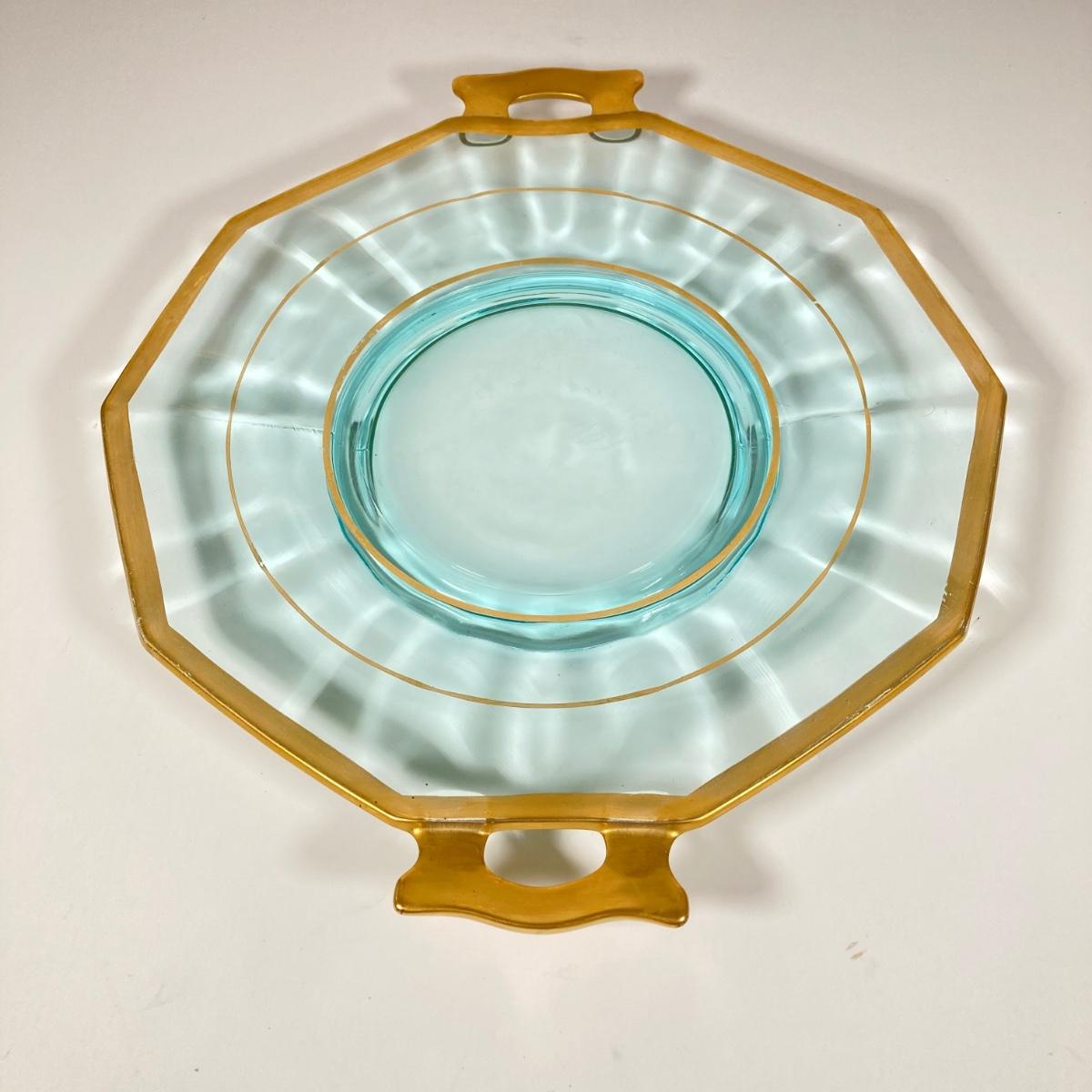 LOT 358: Collection of Beautiful Gold Trim Serving Ware - Serving Plates and Glasses
