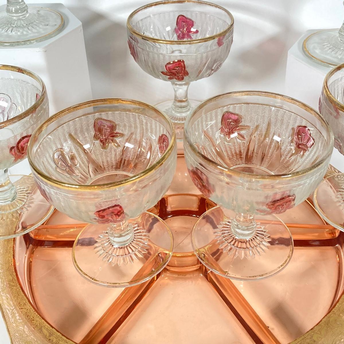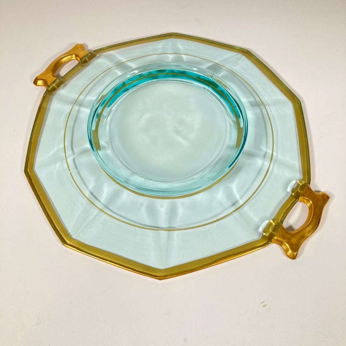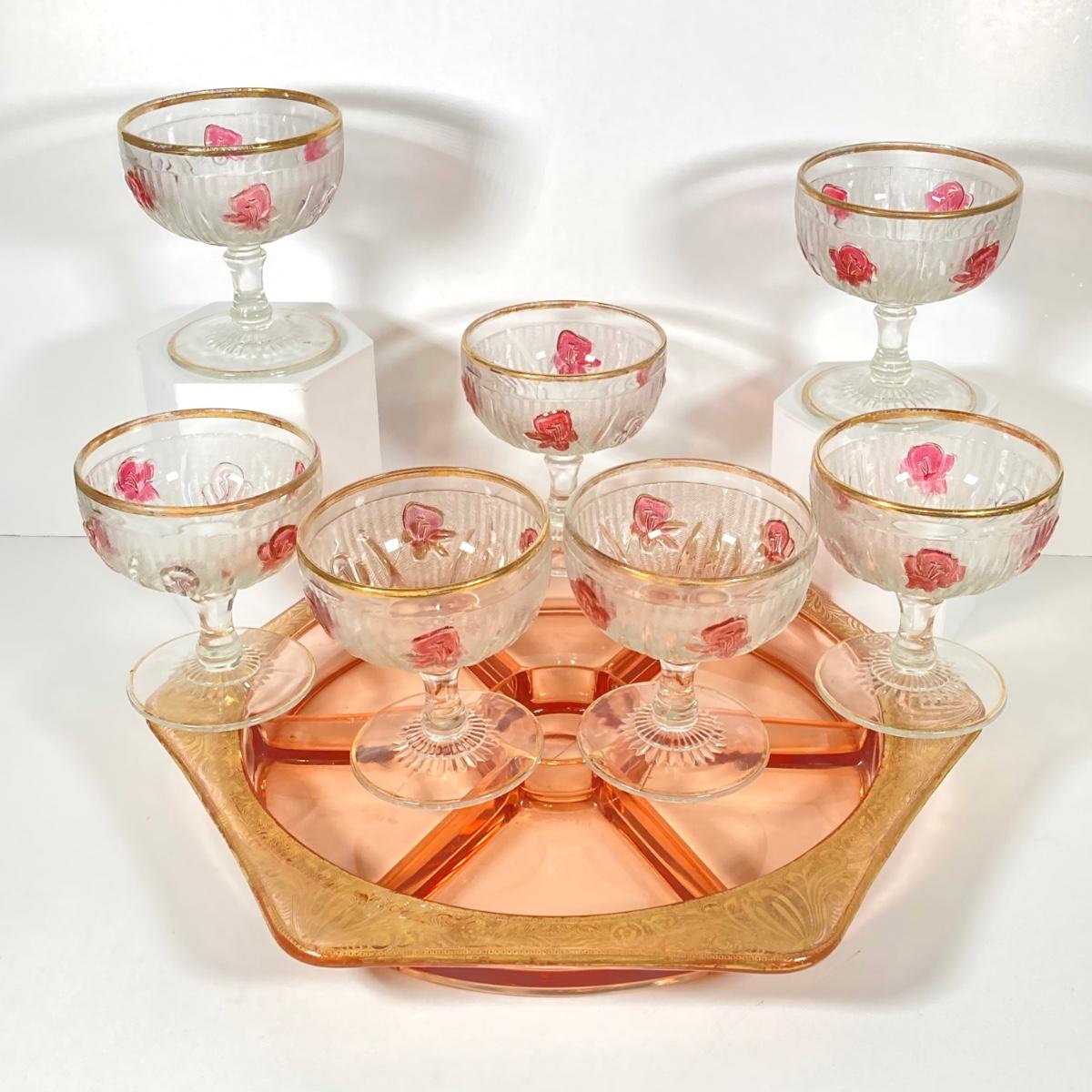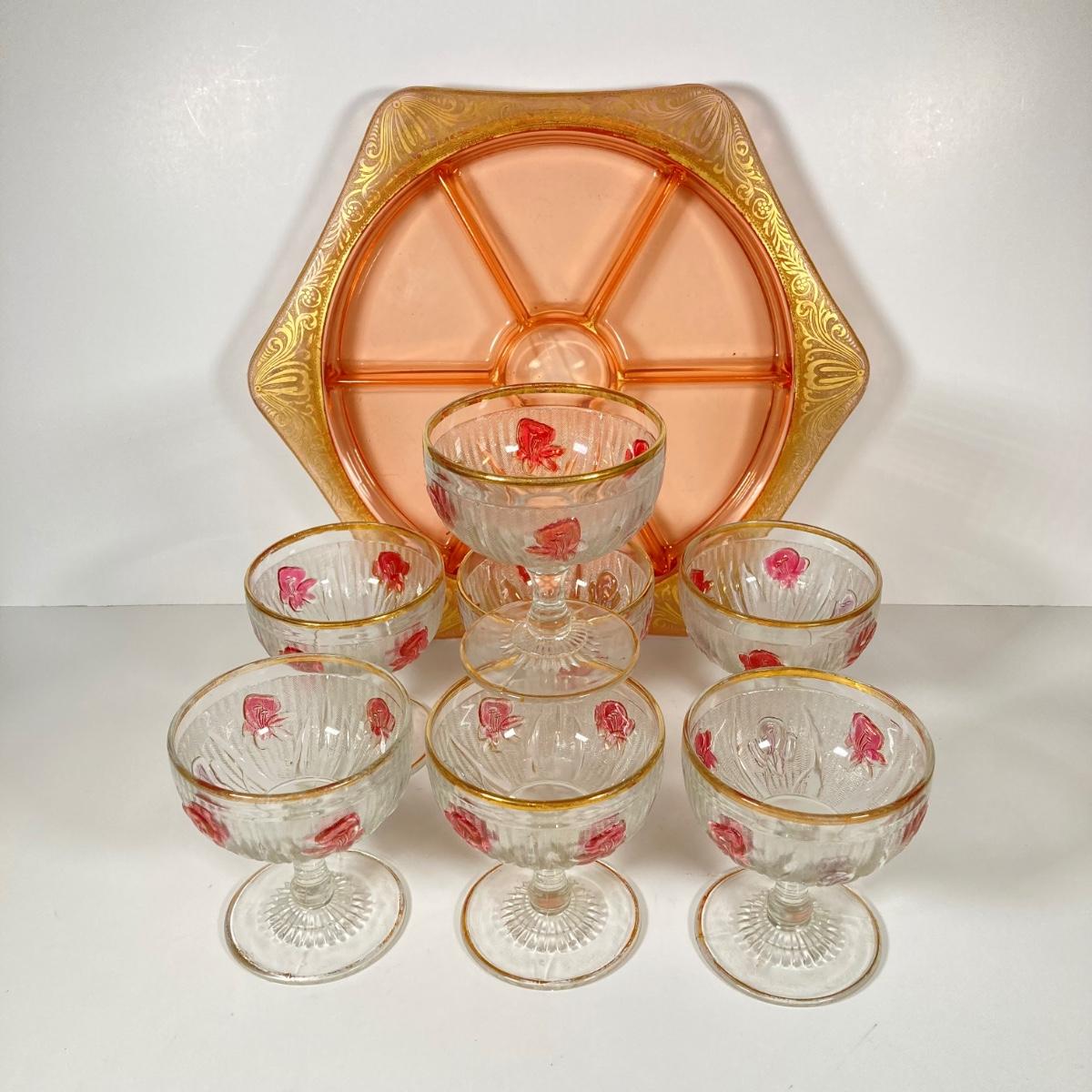 LOT 358: Collection of Beautiful Gold Trim Serving Ware - Serving Plates and Glasses
