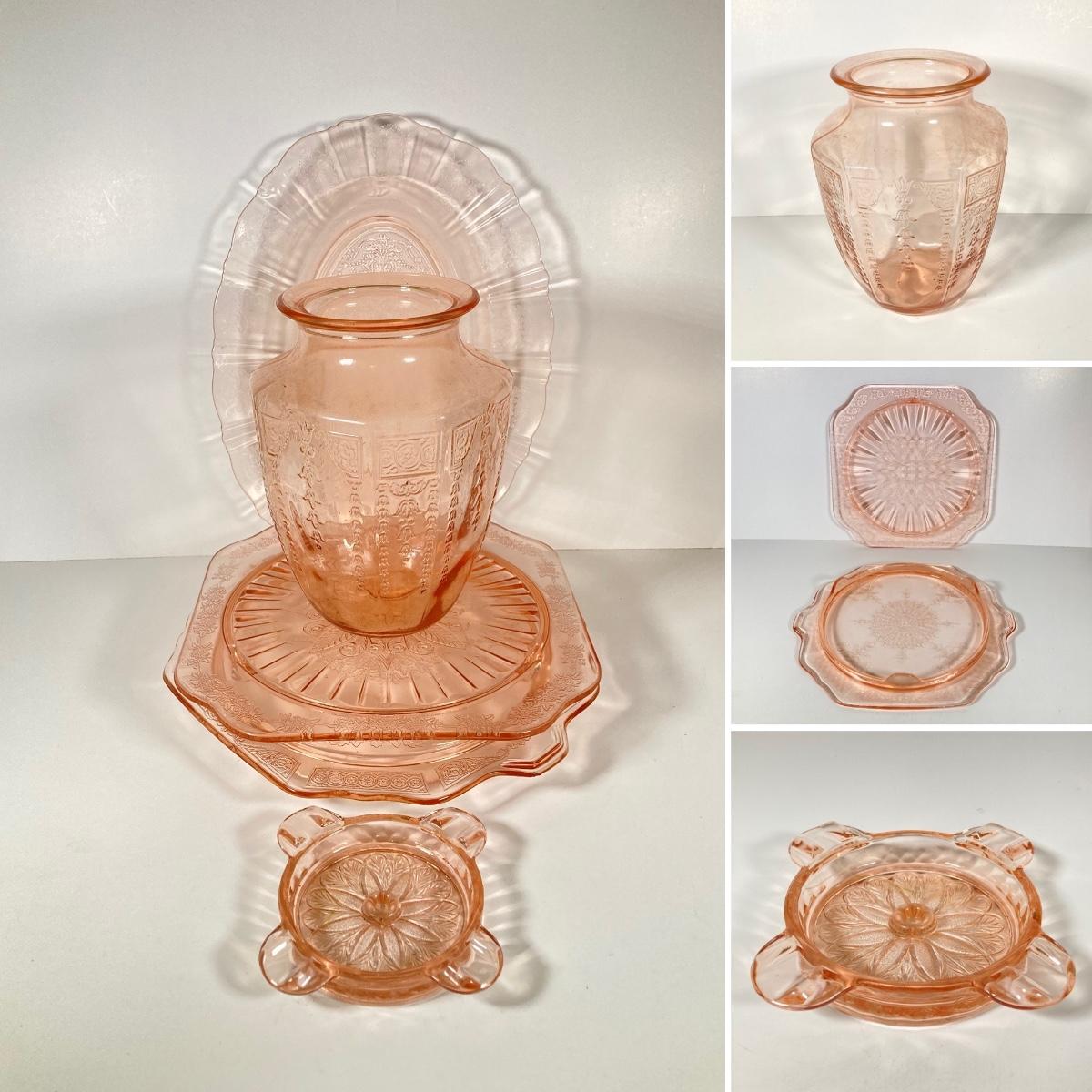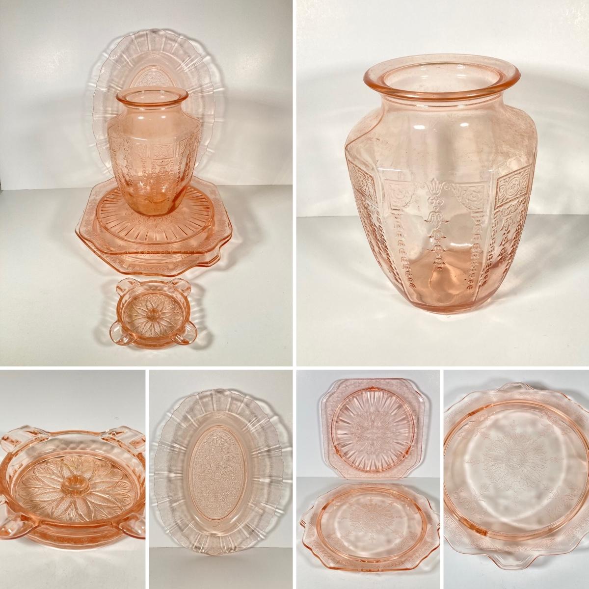 LOT 360: Decorative Pink Glass Collection - Vase, Princess Footed Serving Plates, Oval Dish and More