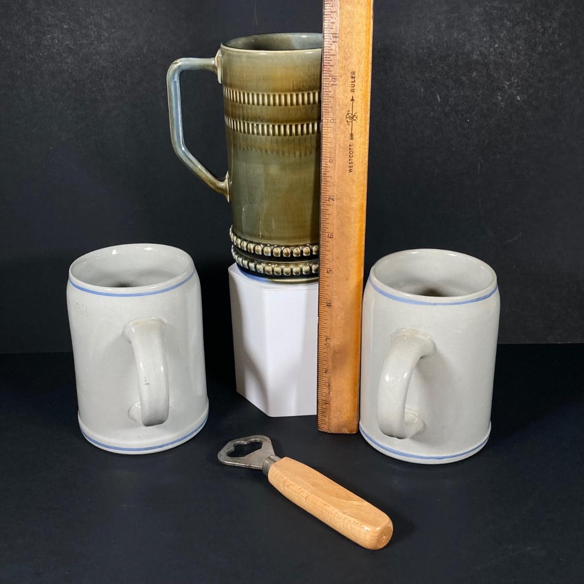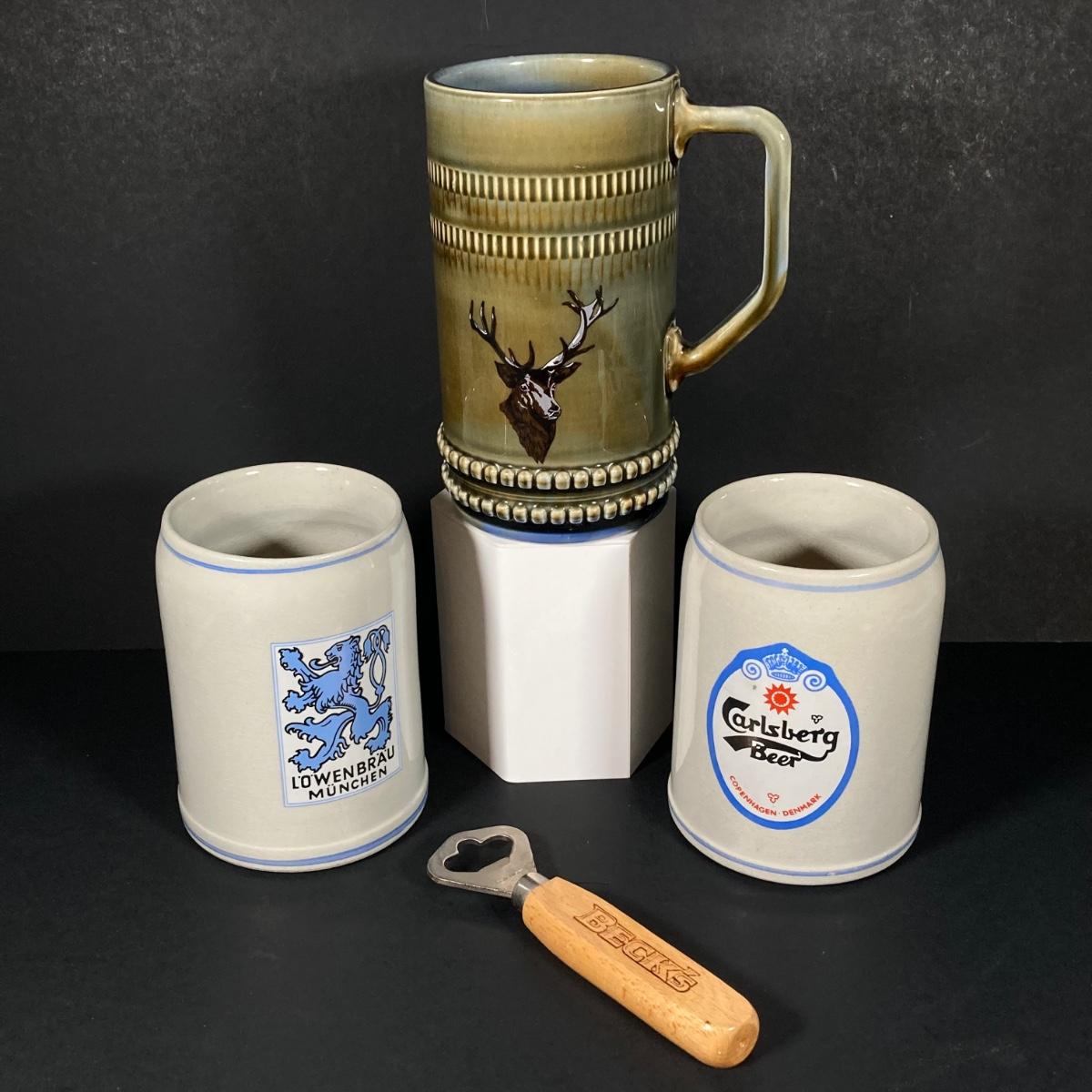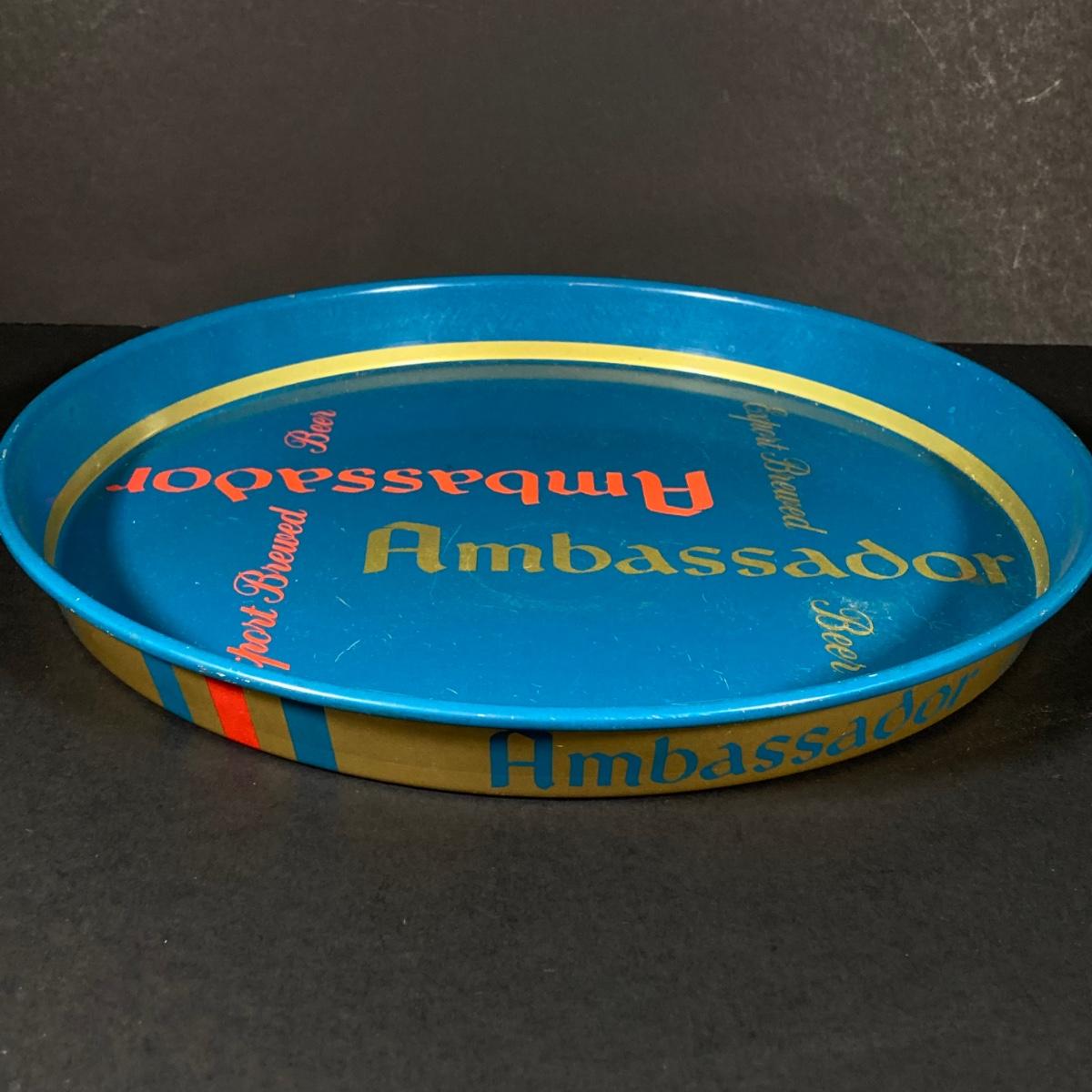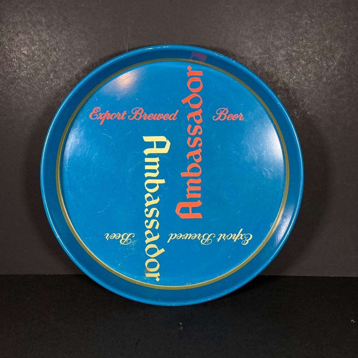 LOT 366: Vintage Olympia Beer and Ambassador Export Brewed Metal Beer Trays with German / Irish Mugs and More