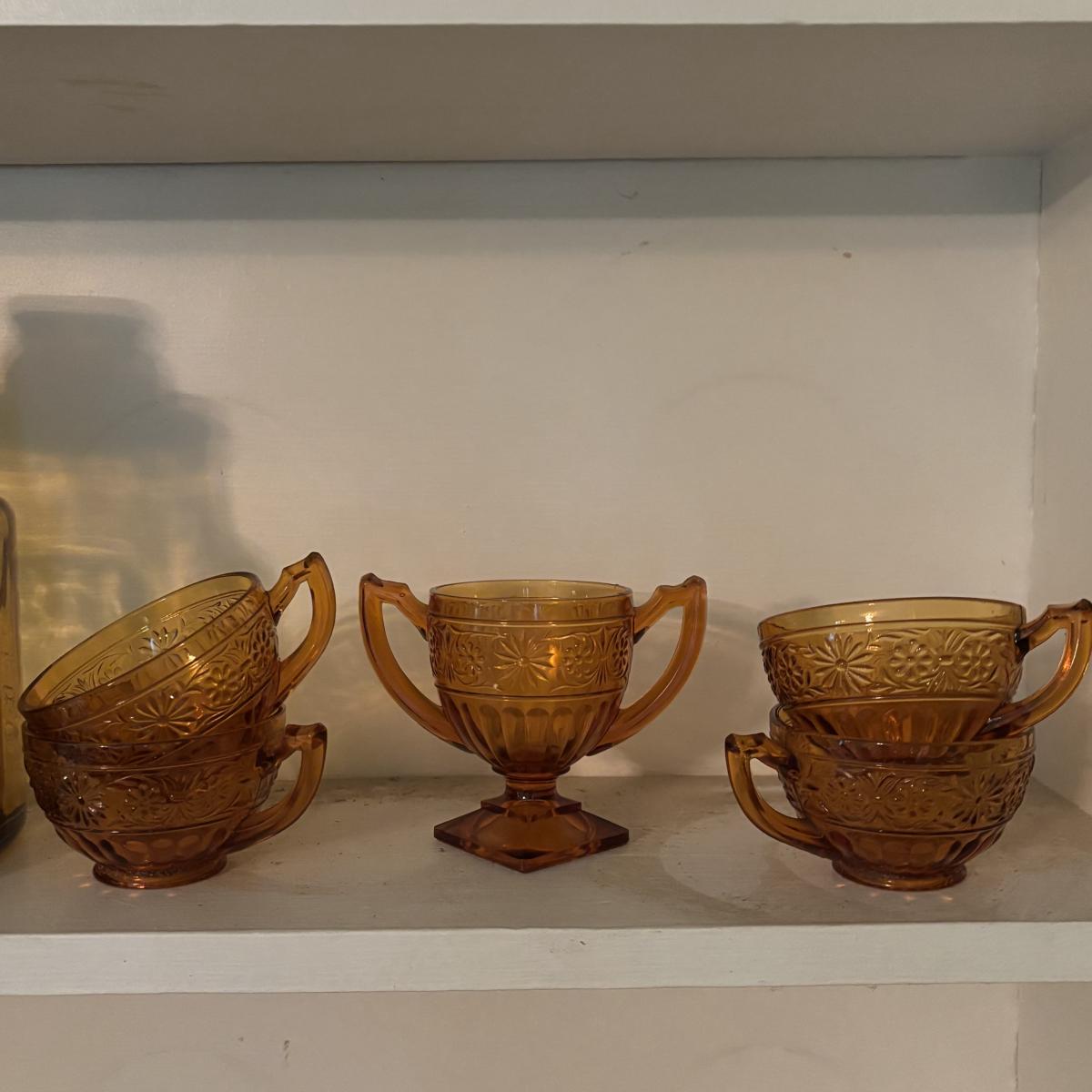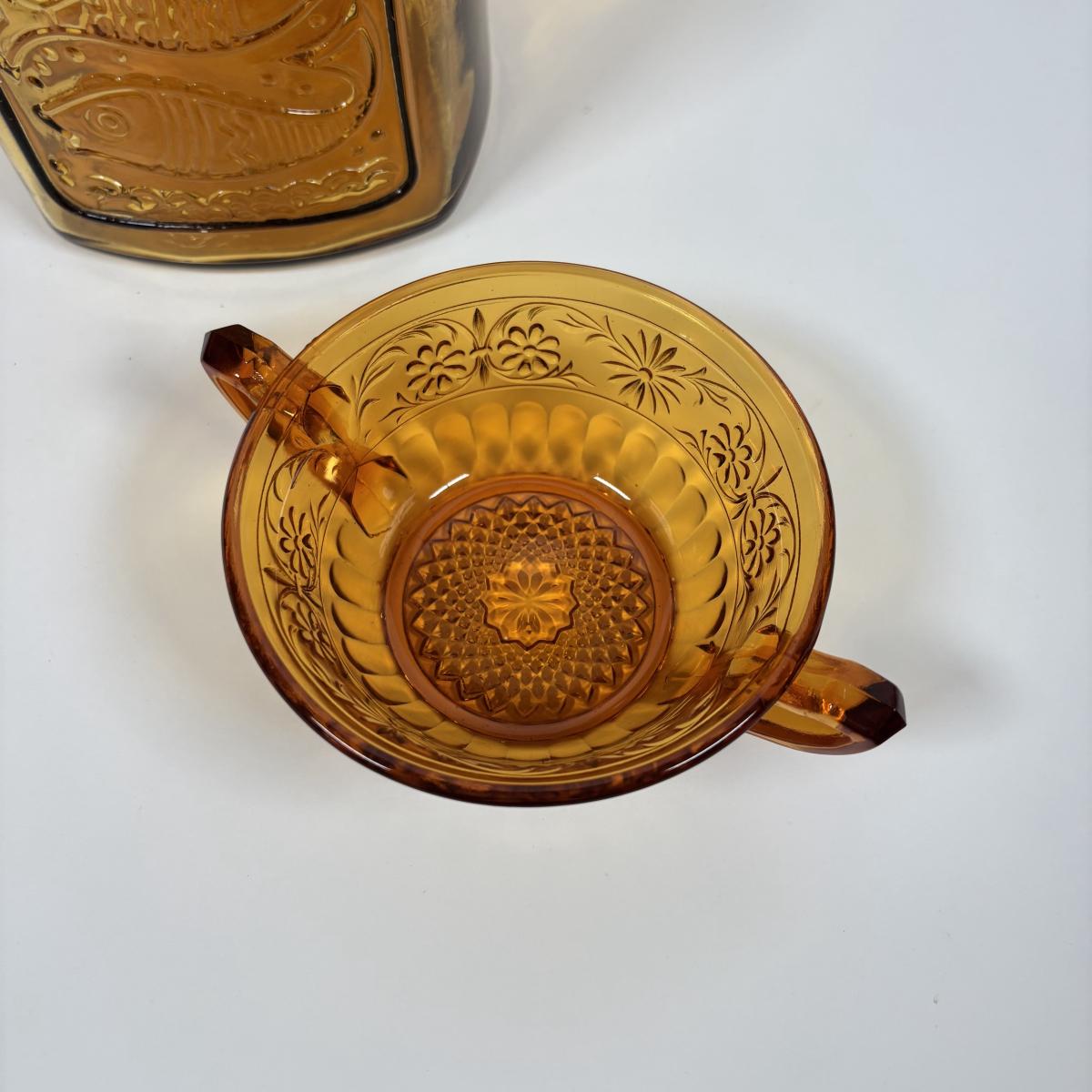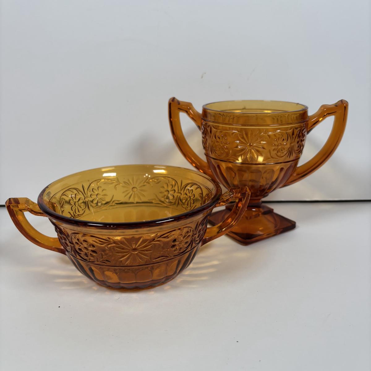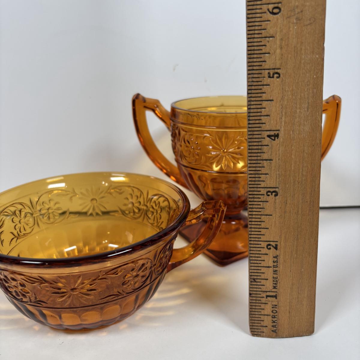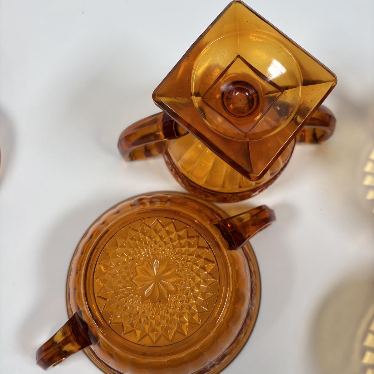 LOT 380: Vintage Amber Wheaton Glass Embossed Canister Jar & Indiana Depression Amber Glassware