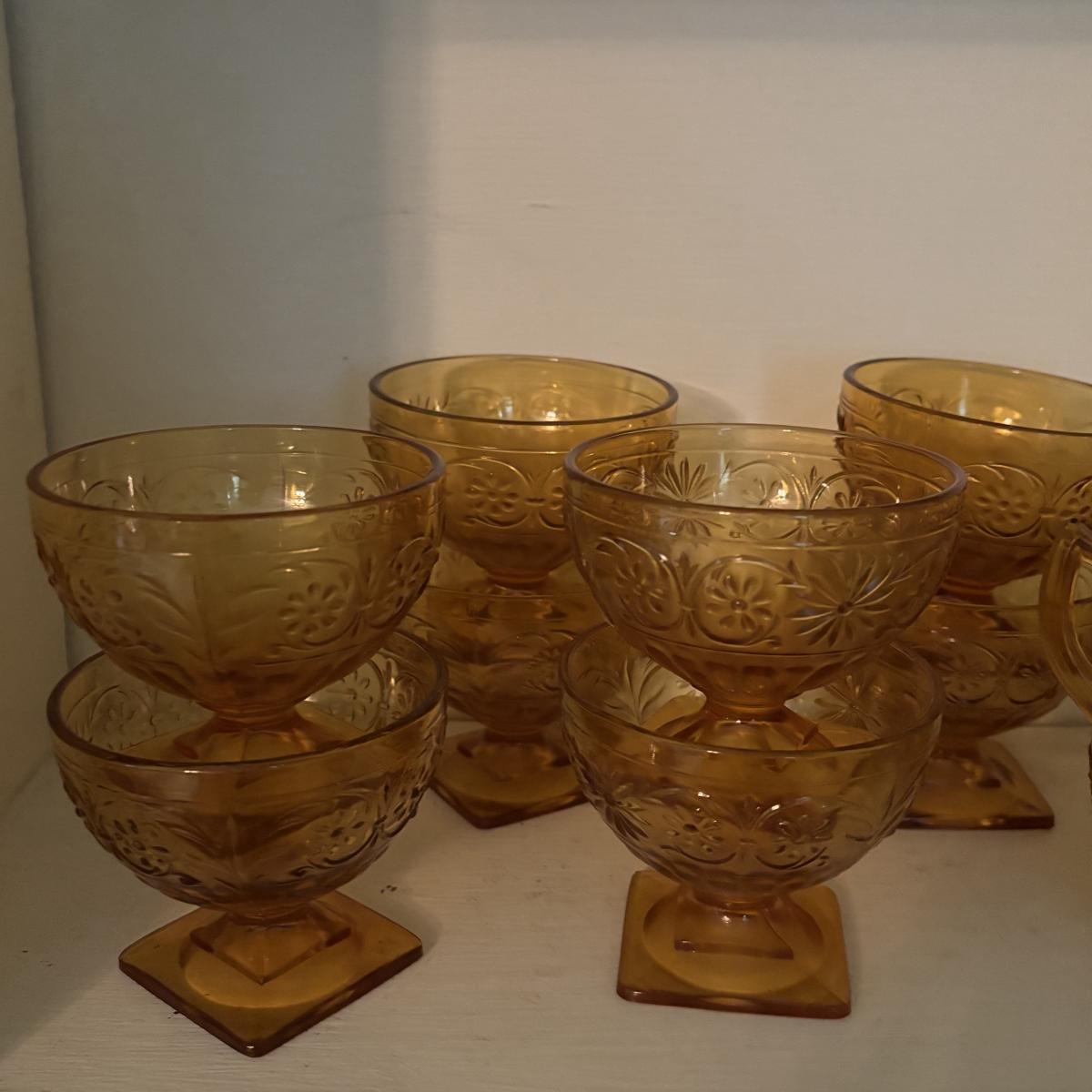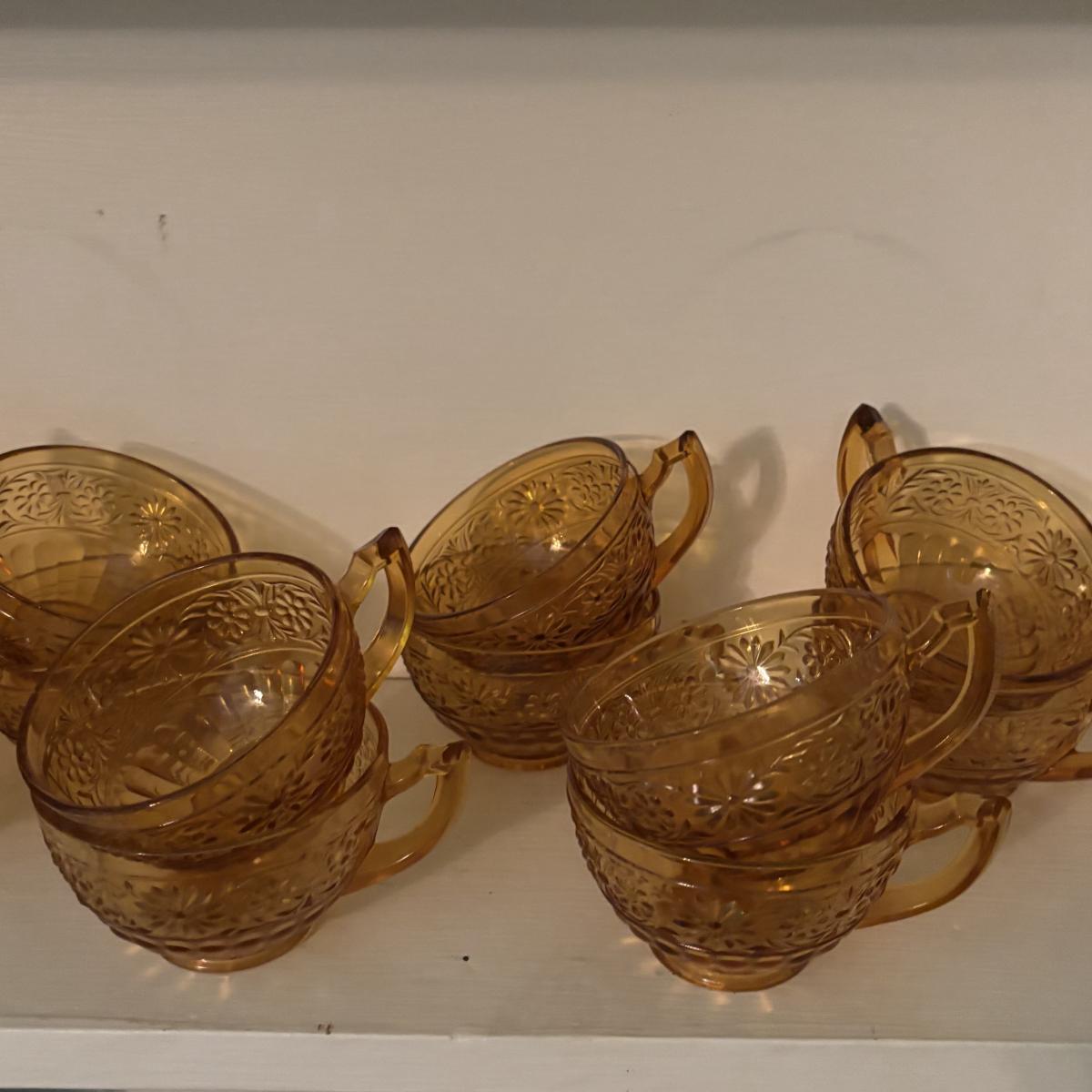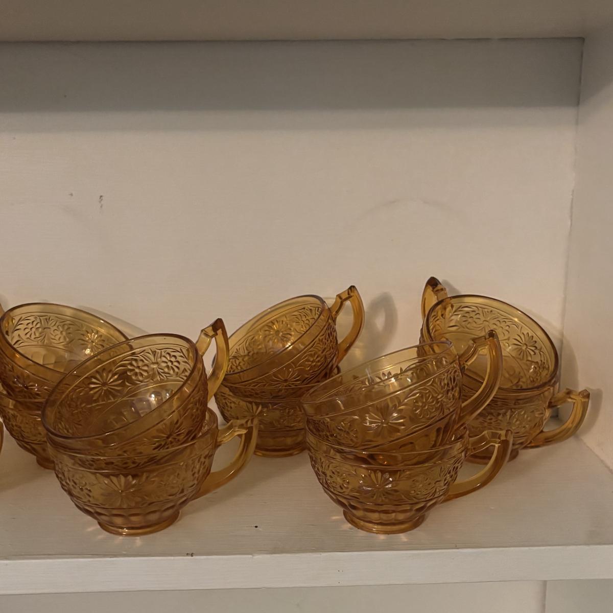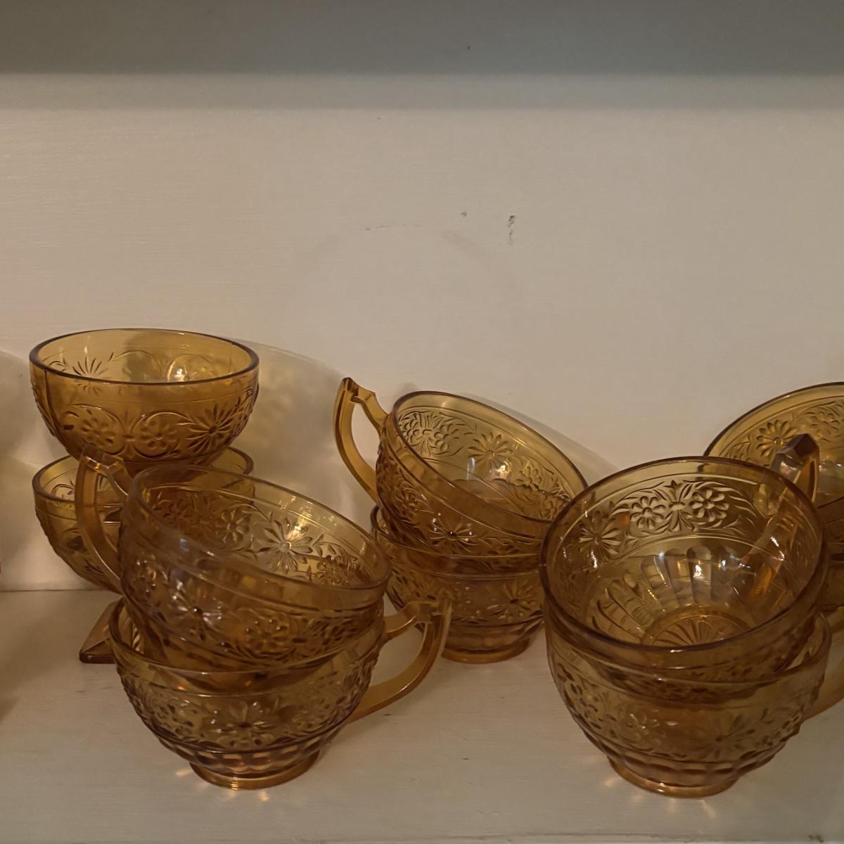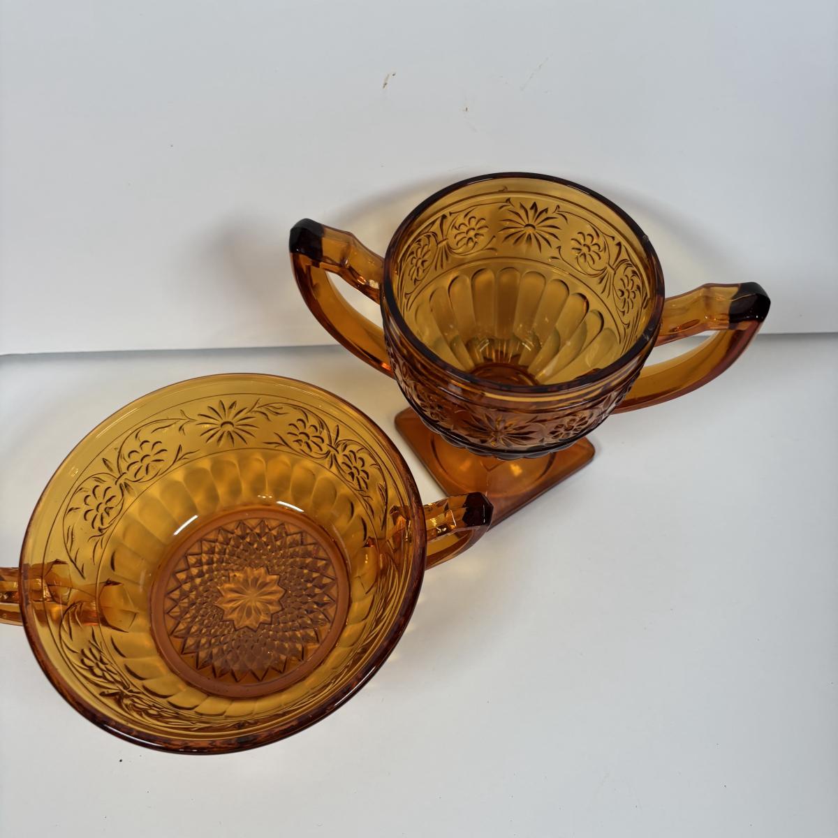LOT 380: Vintage Amber Wheaton Glass Embossed Canister Jar & Indiana Depression Amber Glassware