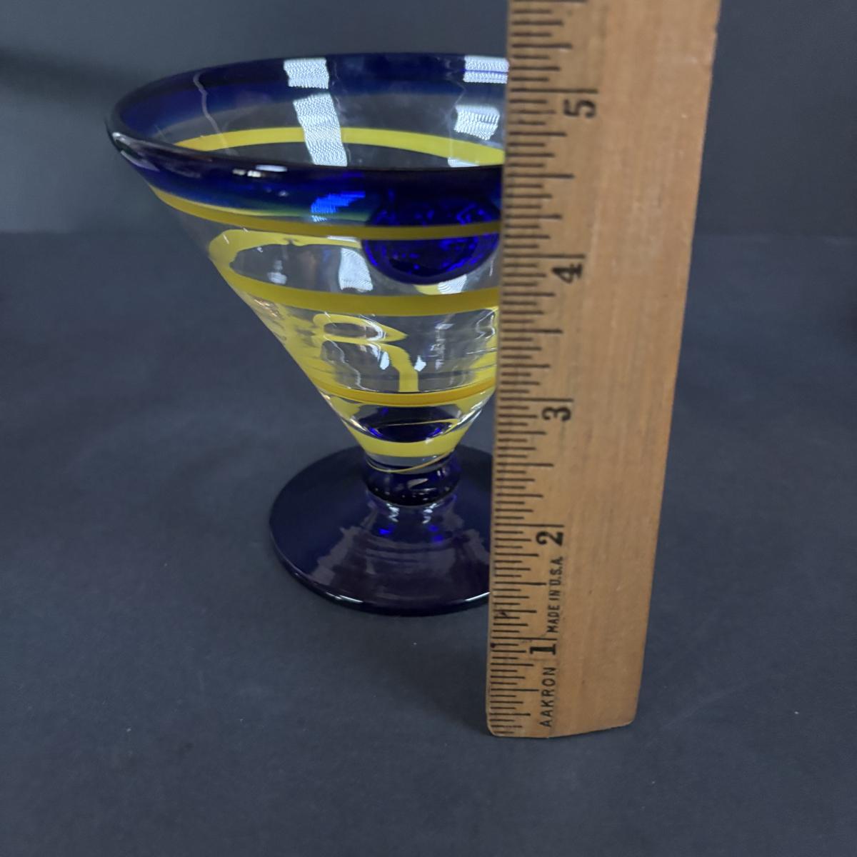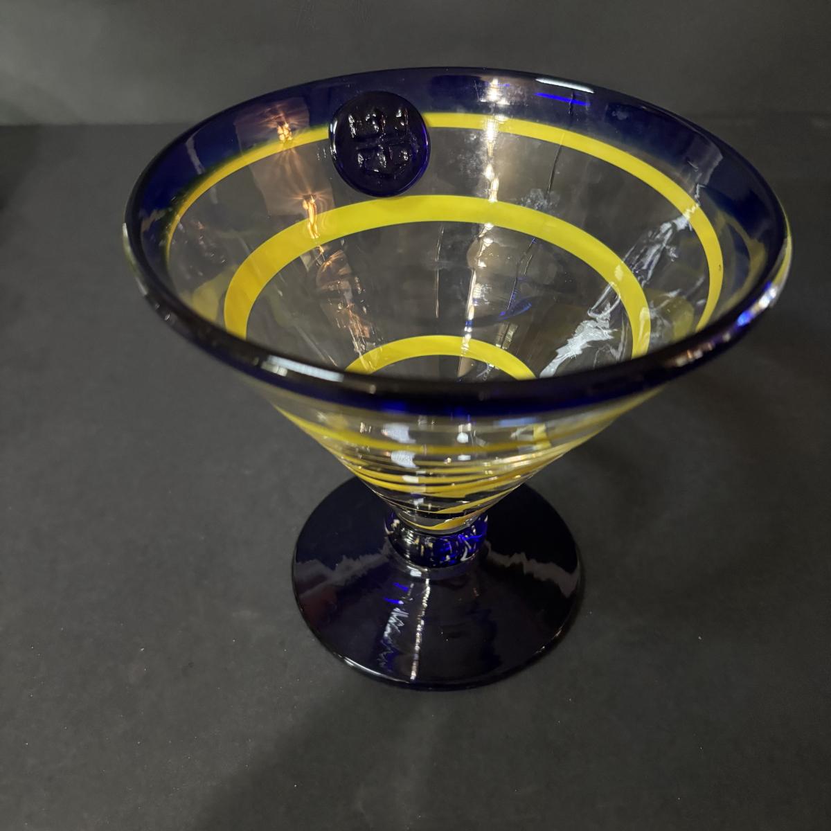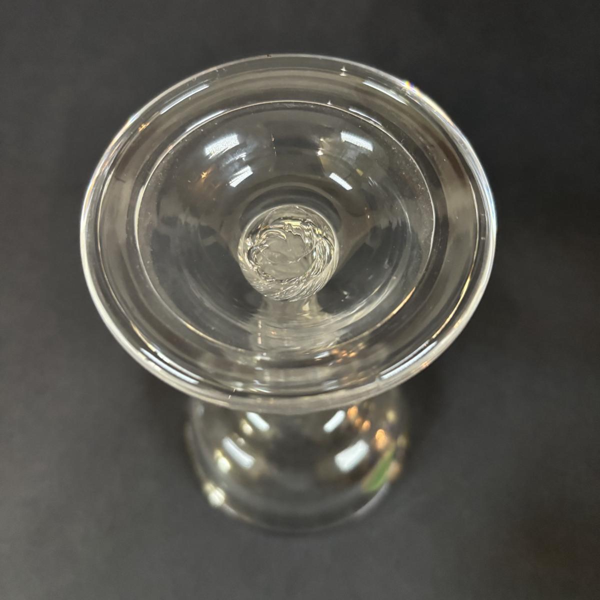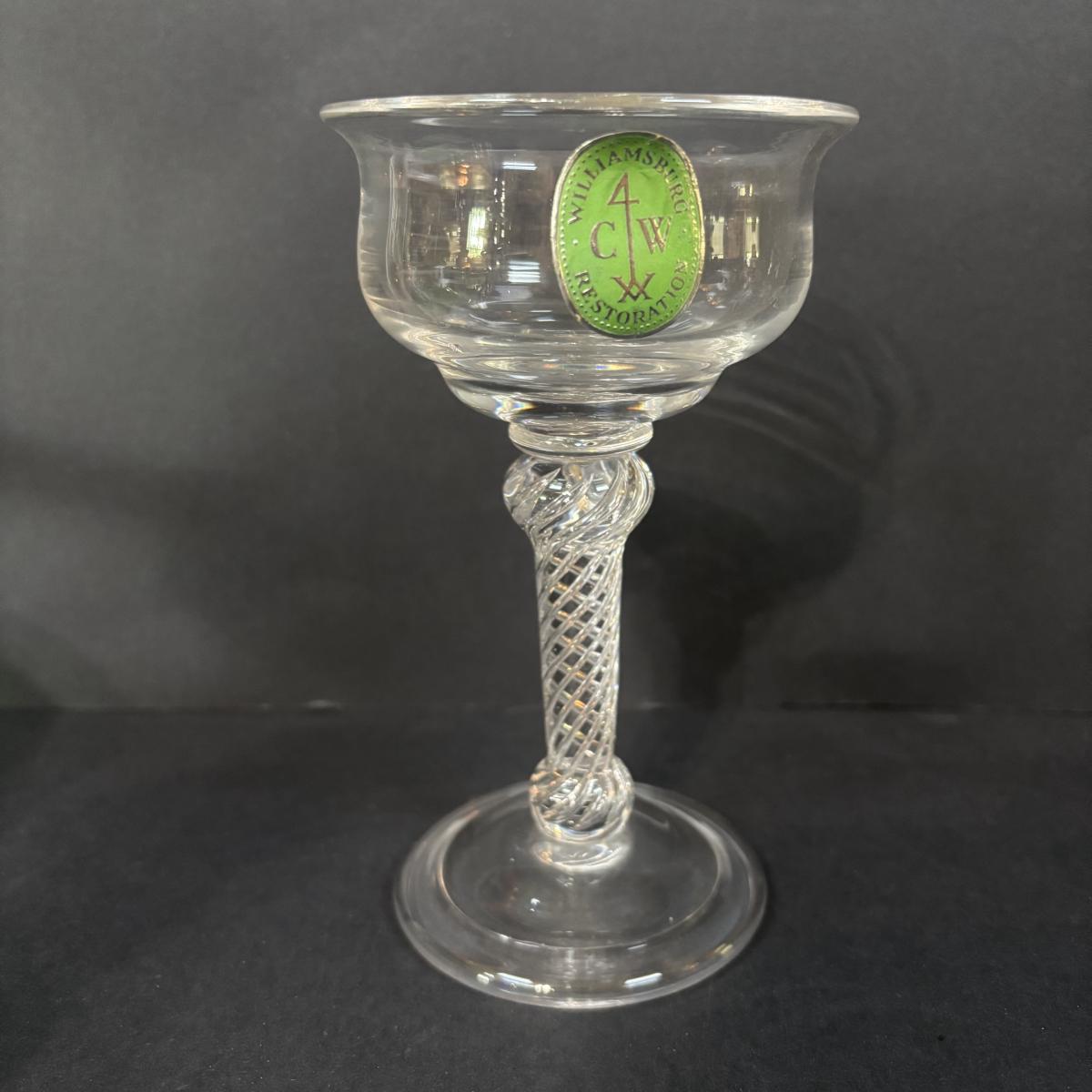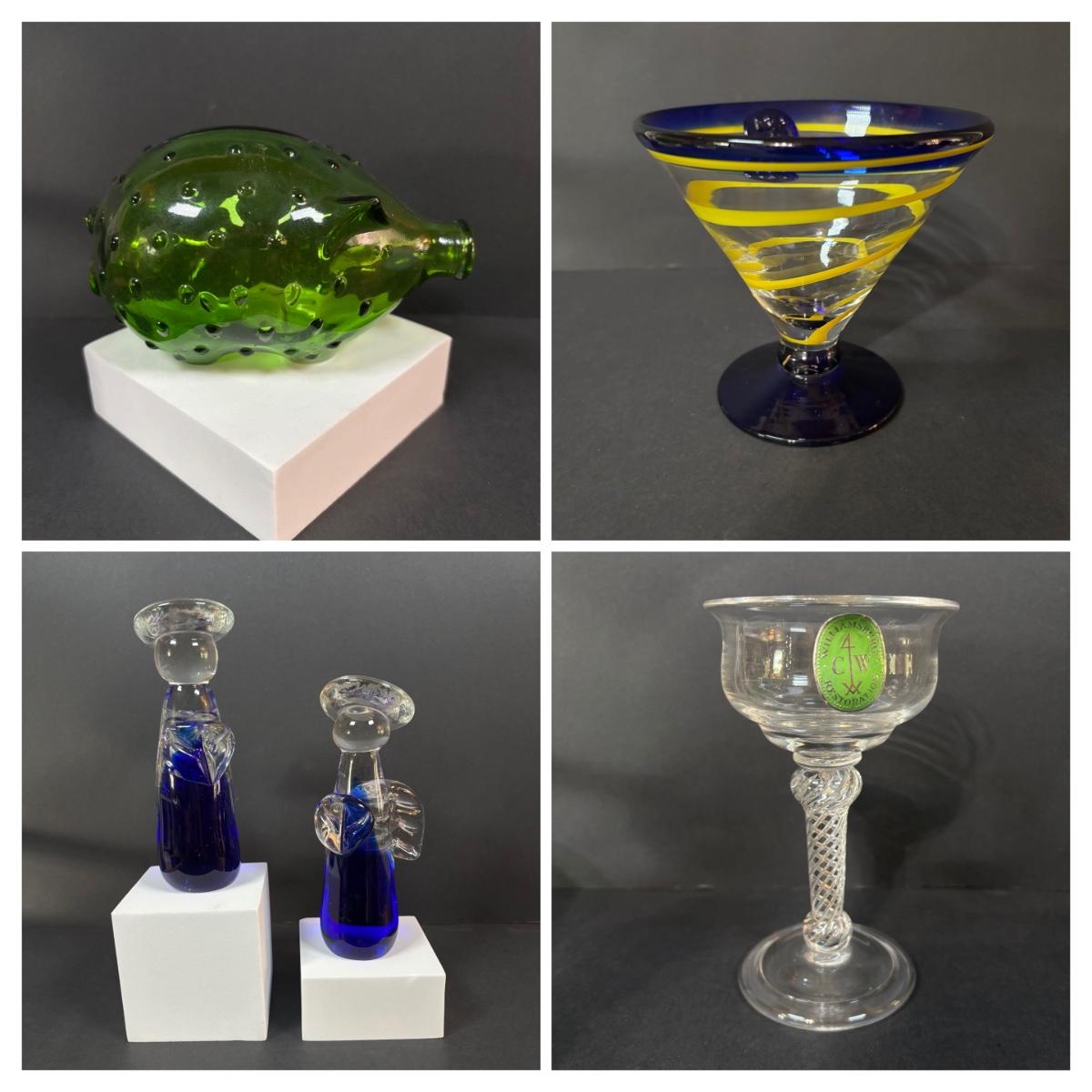 LOT 382: Art Glass Collection: Blenko colonial Williamsburg Restoration Goblet w/Air-Twist Stem, Kosta Boda Martini, Green Hobnail Piggy Bank, Millennium Paperweight & More