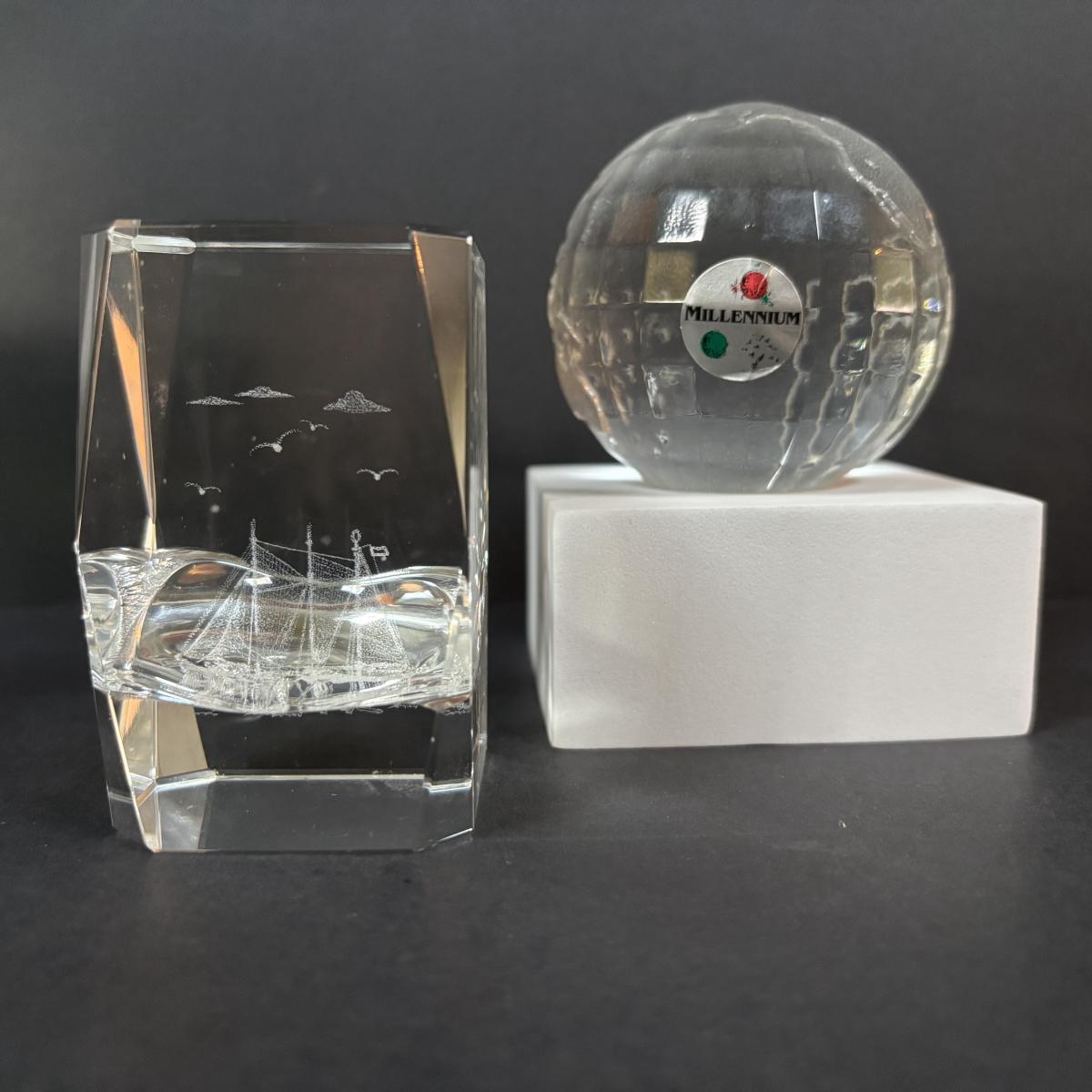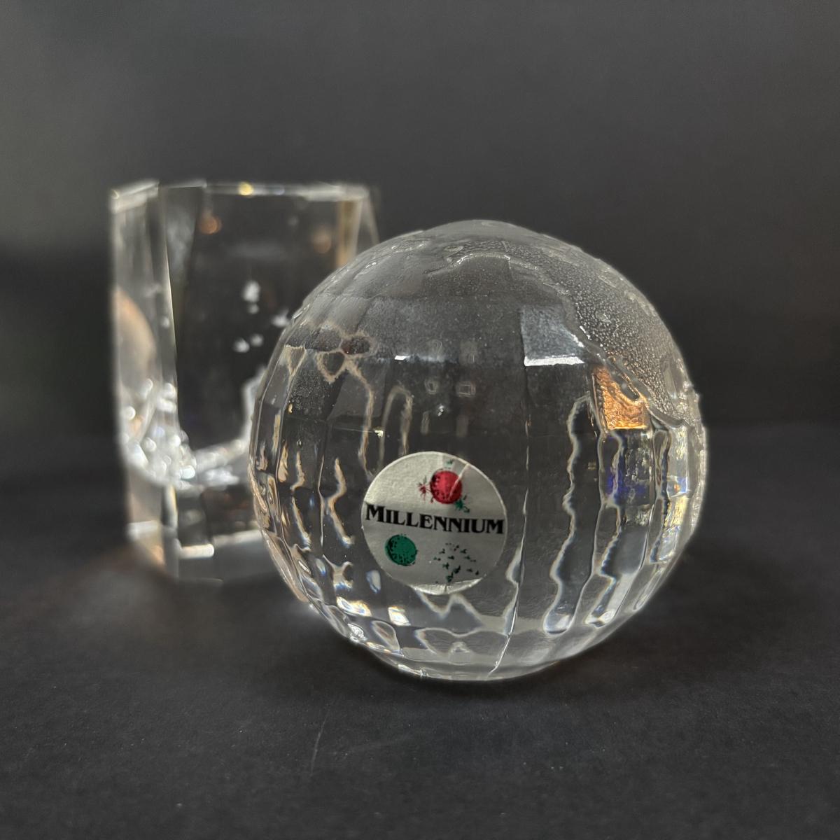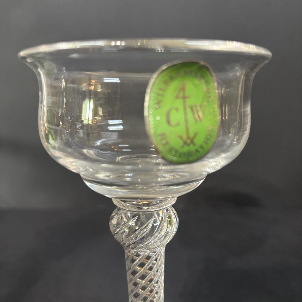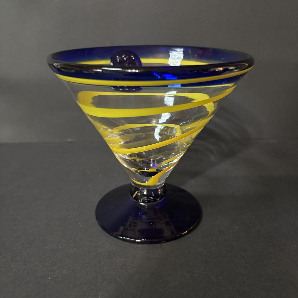 LOT 382: Art Glass Collection: Blenko colonial Williamsburg Restoration Goblet w/Air-Twist Stem, Kosta Boda Martini, Green Hobnail Piggy Bank, Millennium Paperweight & More