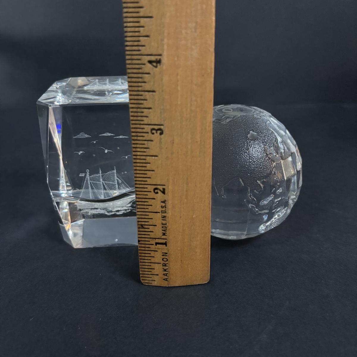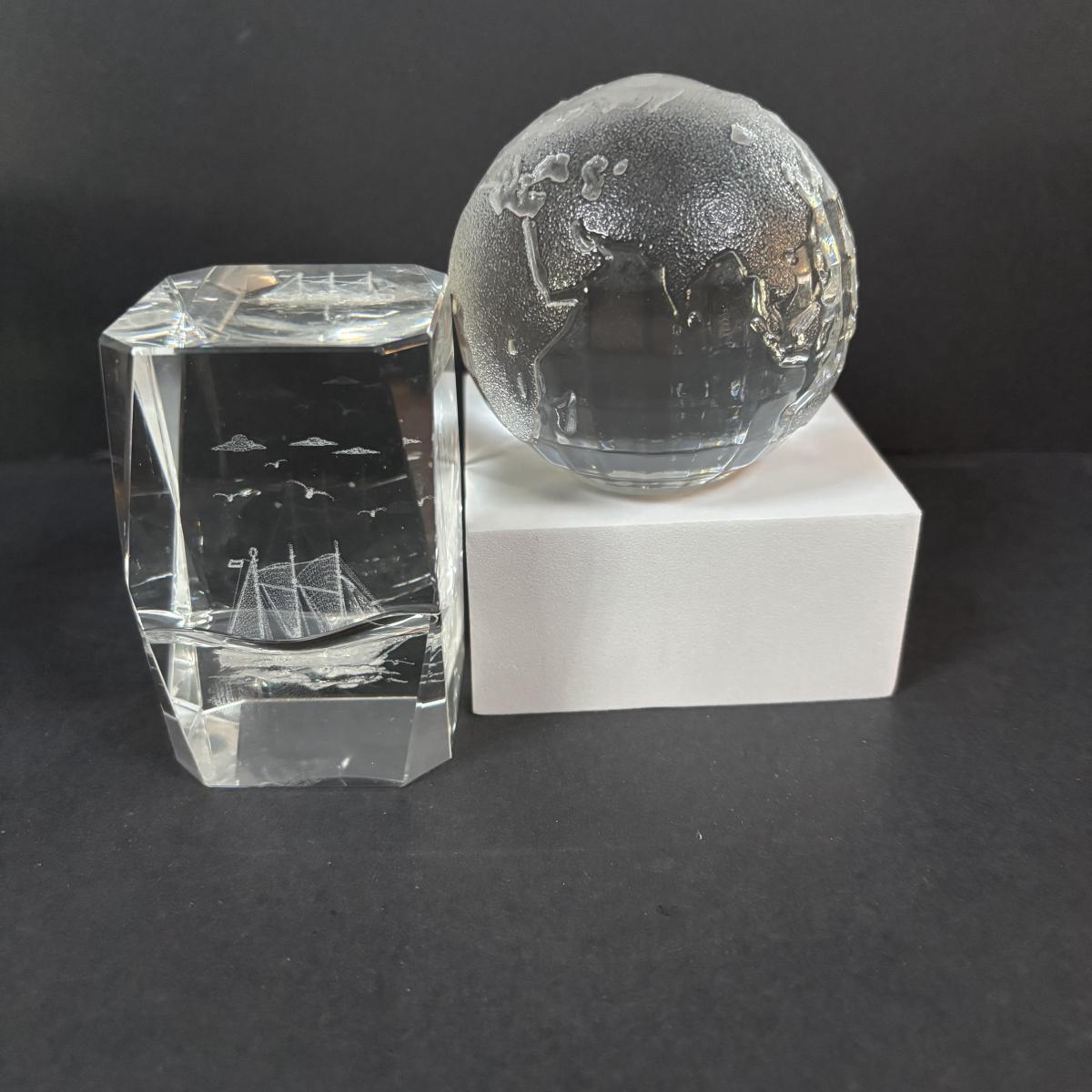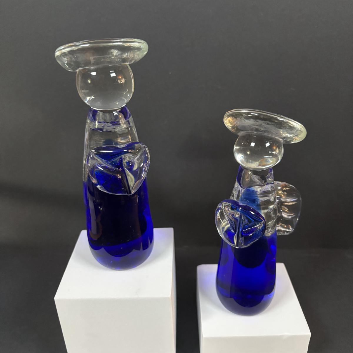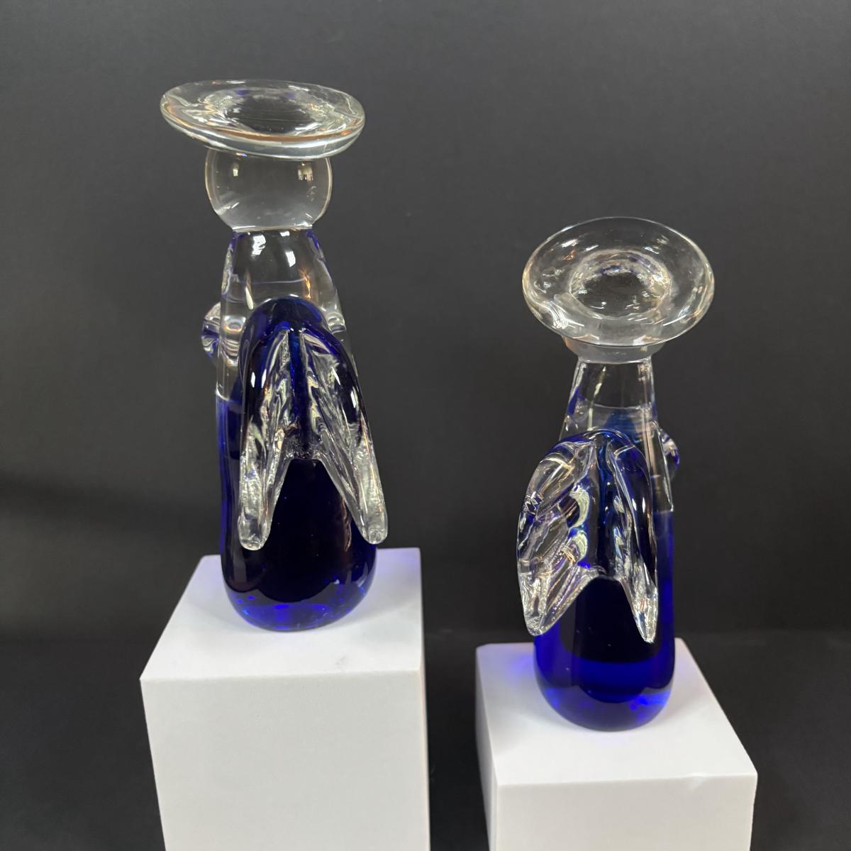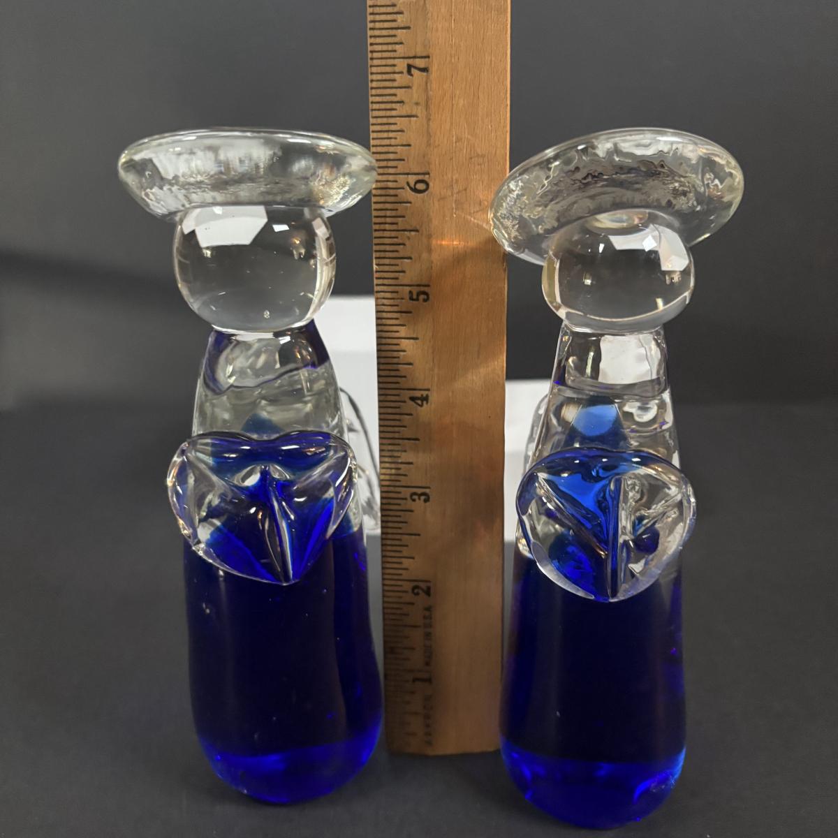 LOT 382: Art Glass Collection: Blenko colonial Williamsburg Restoration Goblet w/Air-Twist Stem, Kosta Boda Martini, Green Hobnail Piggy Bank, Millennium Paperweight & More