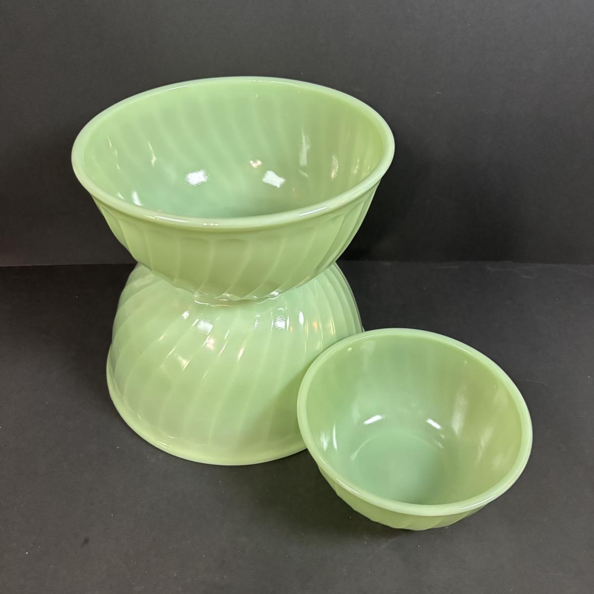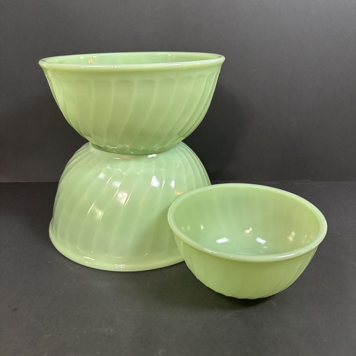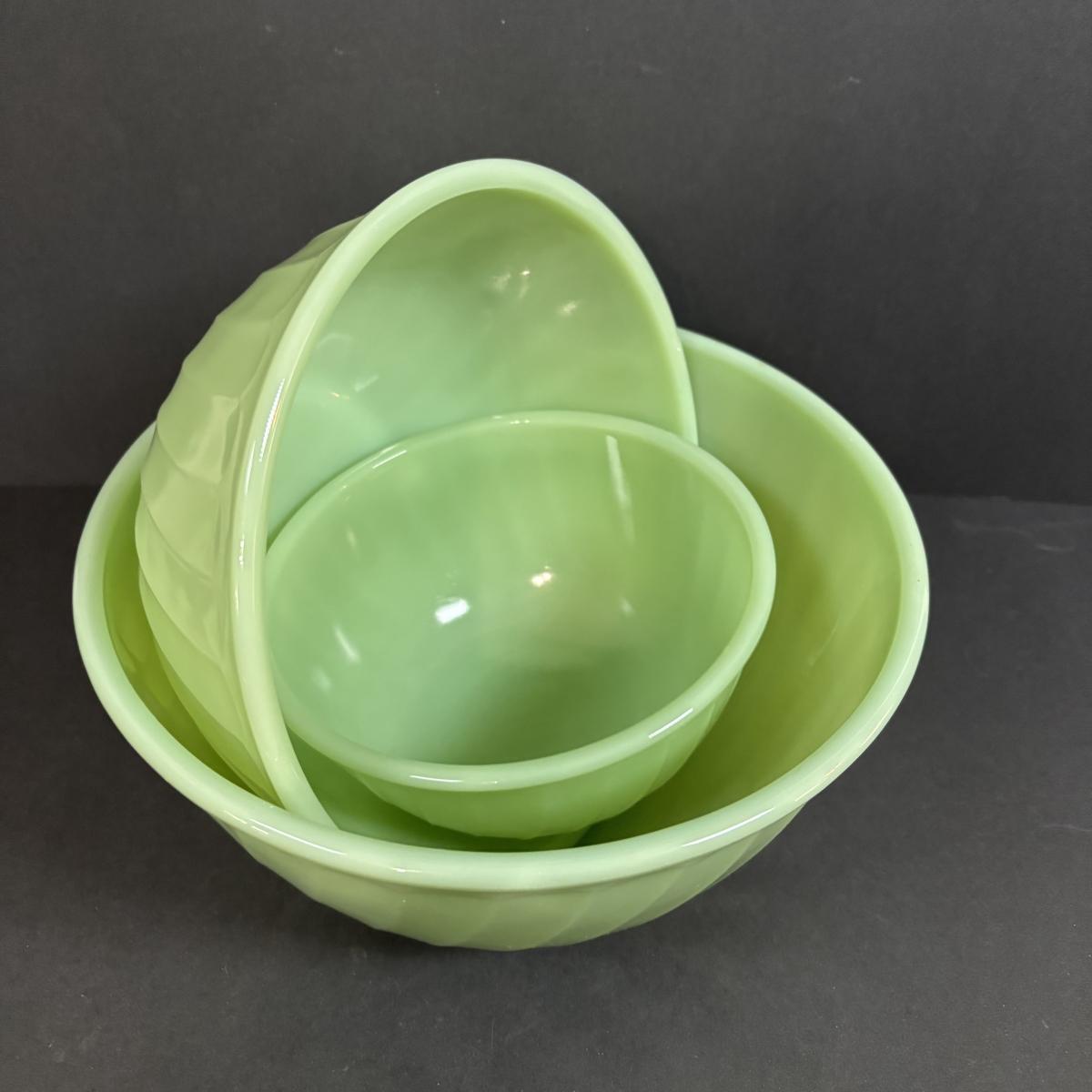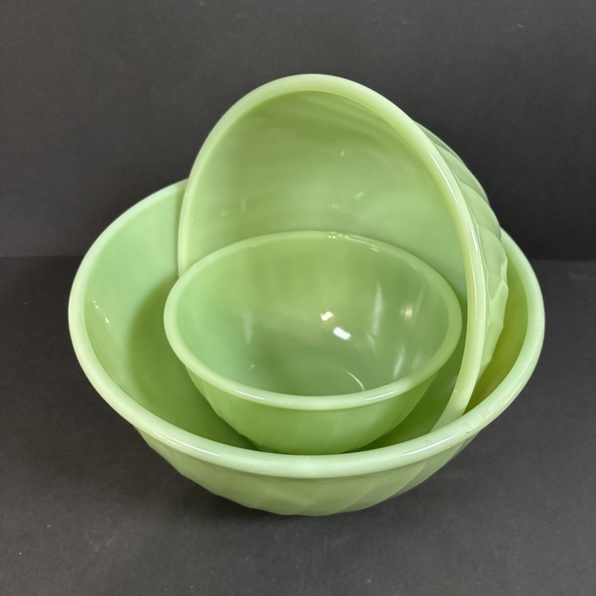 LOT 391: Set of 3 Unmarked Jadeite Mixing Bowls