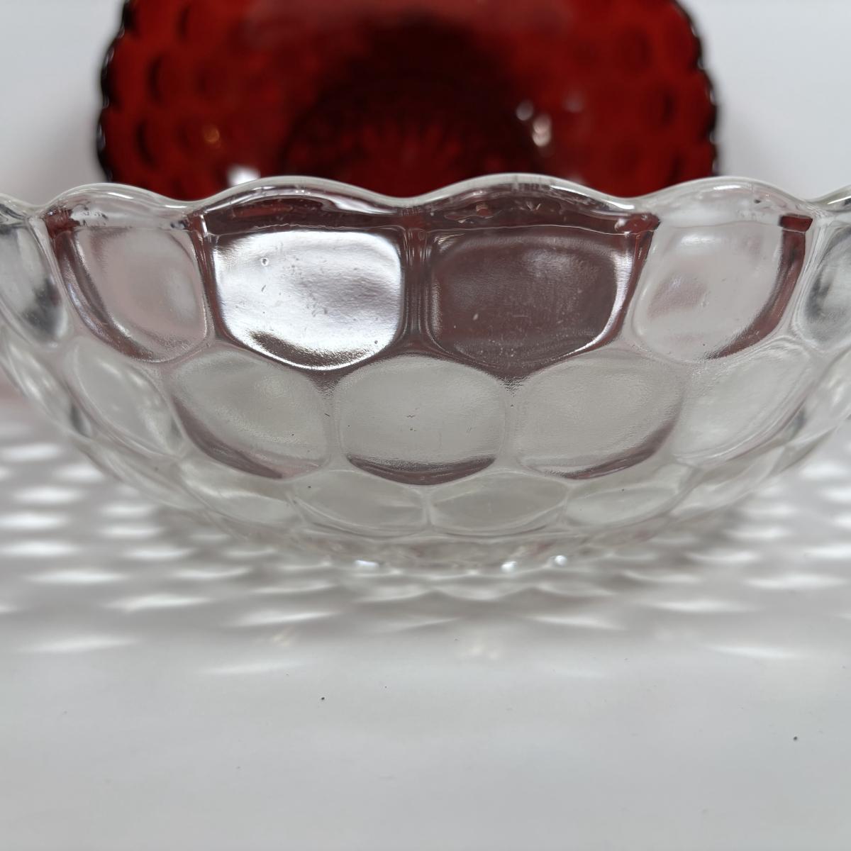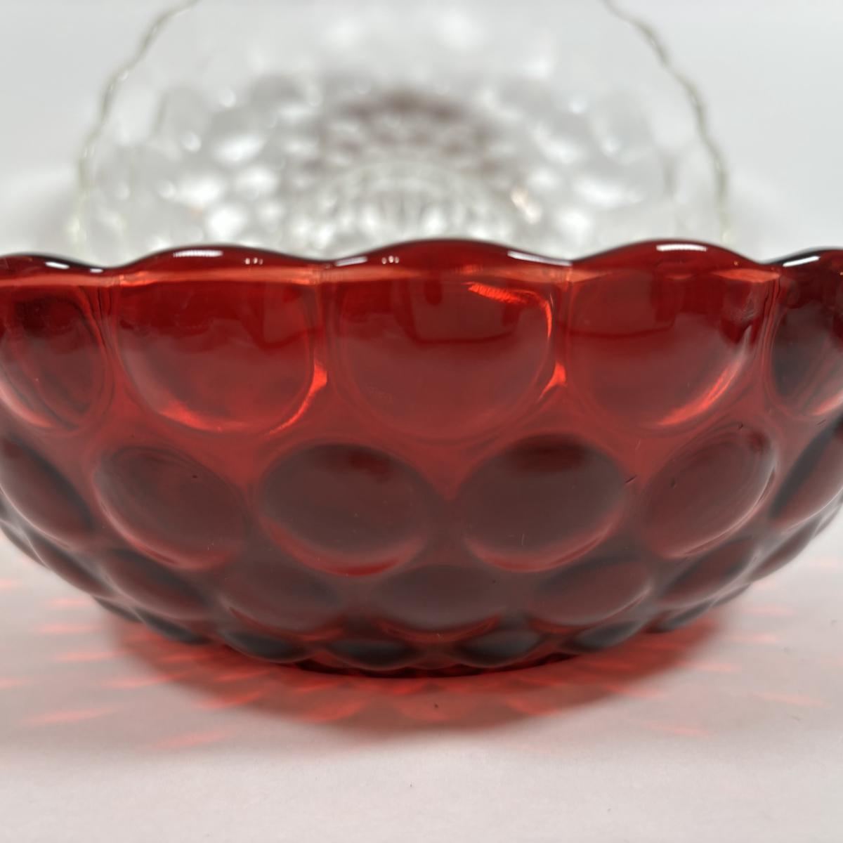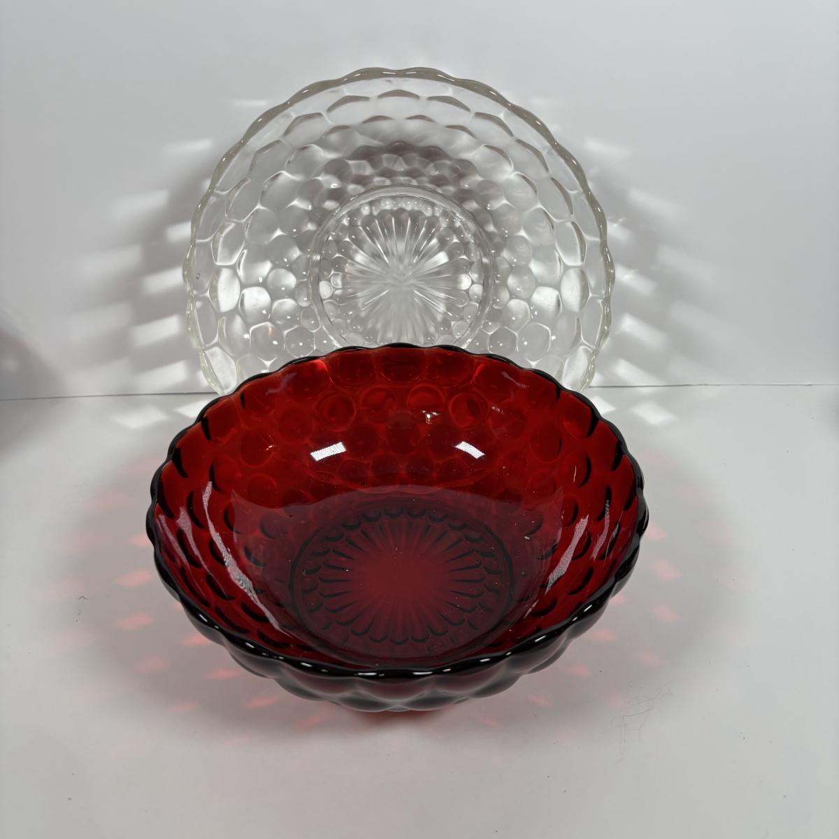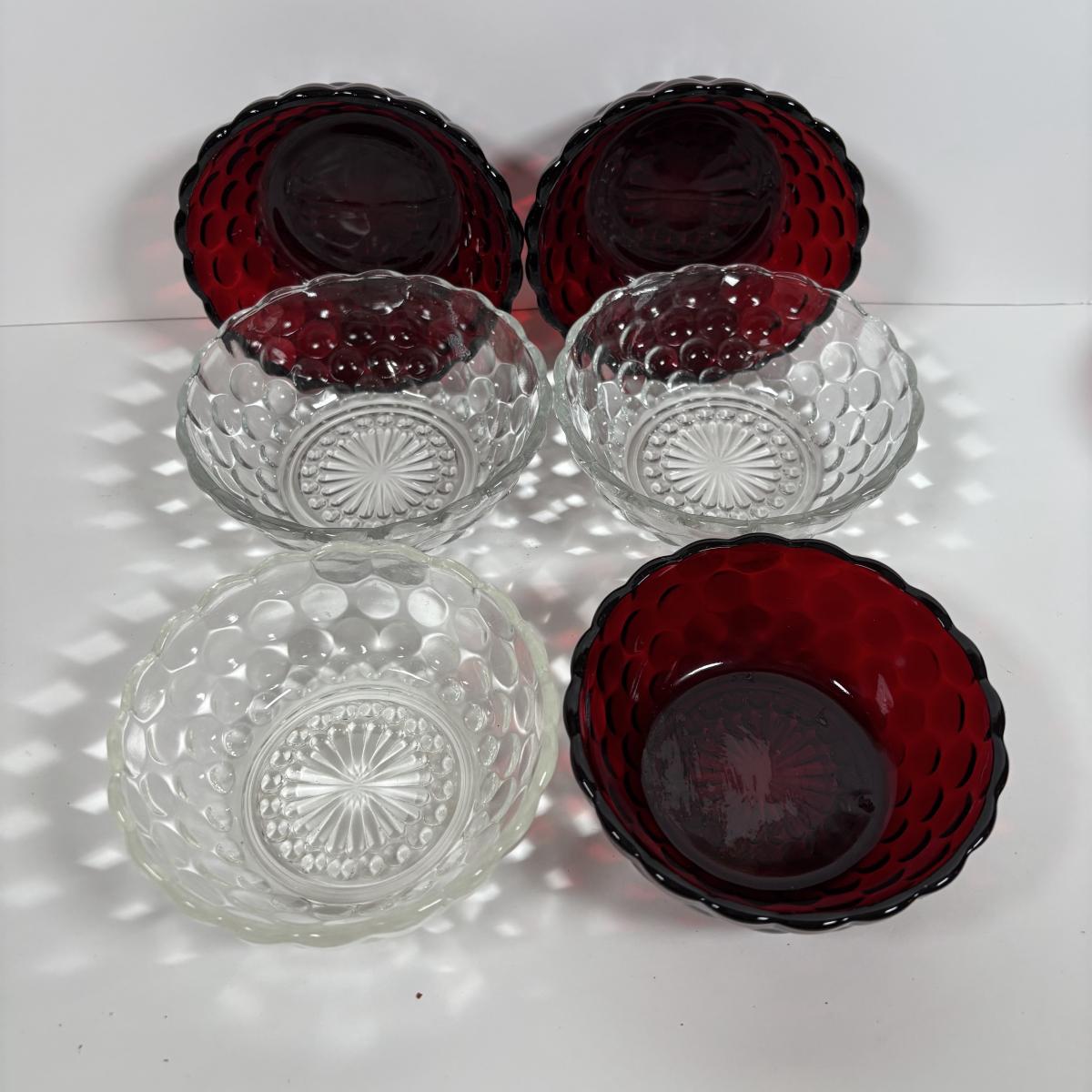 LOT 396: Ruby Red & Clear Bubble Glass Collection & "Oyster and Pearl" Style Depression Glass Candlestick Holders