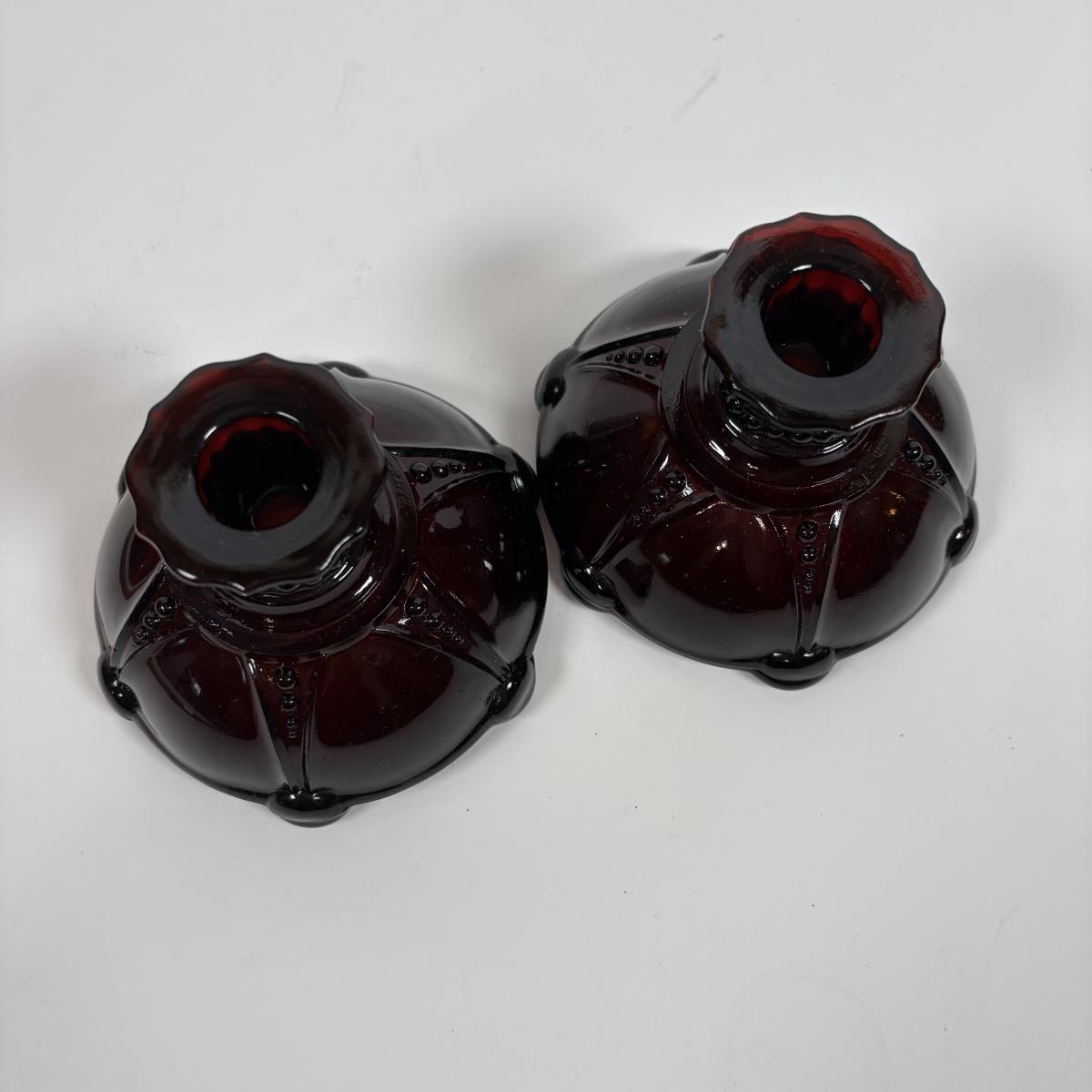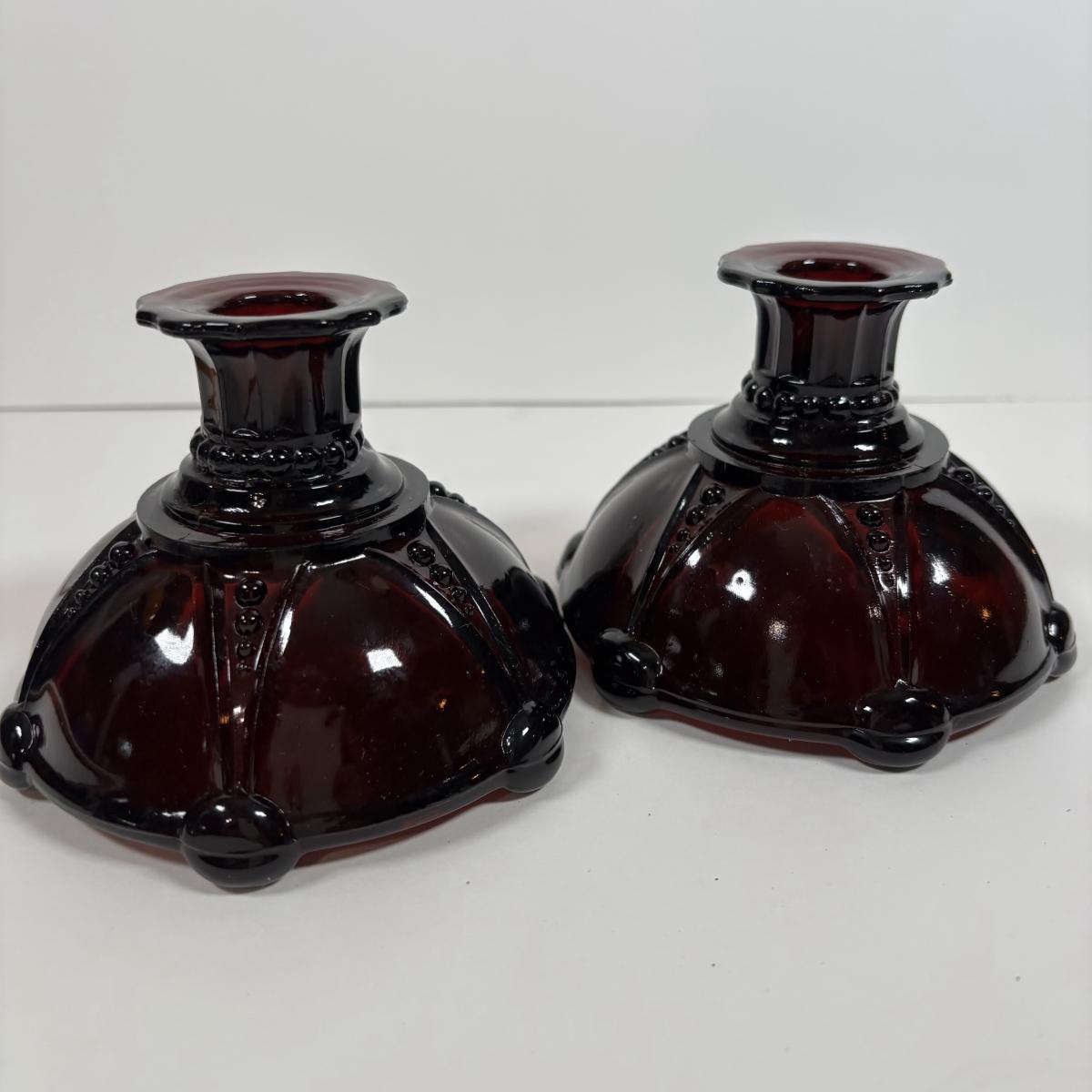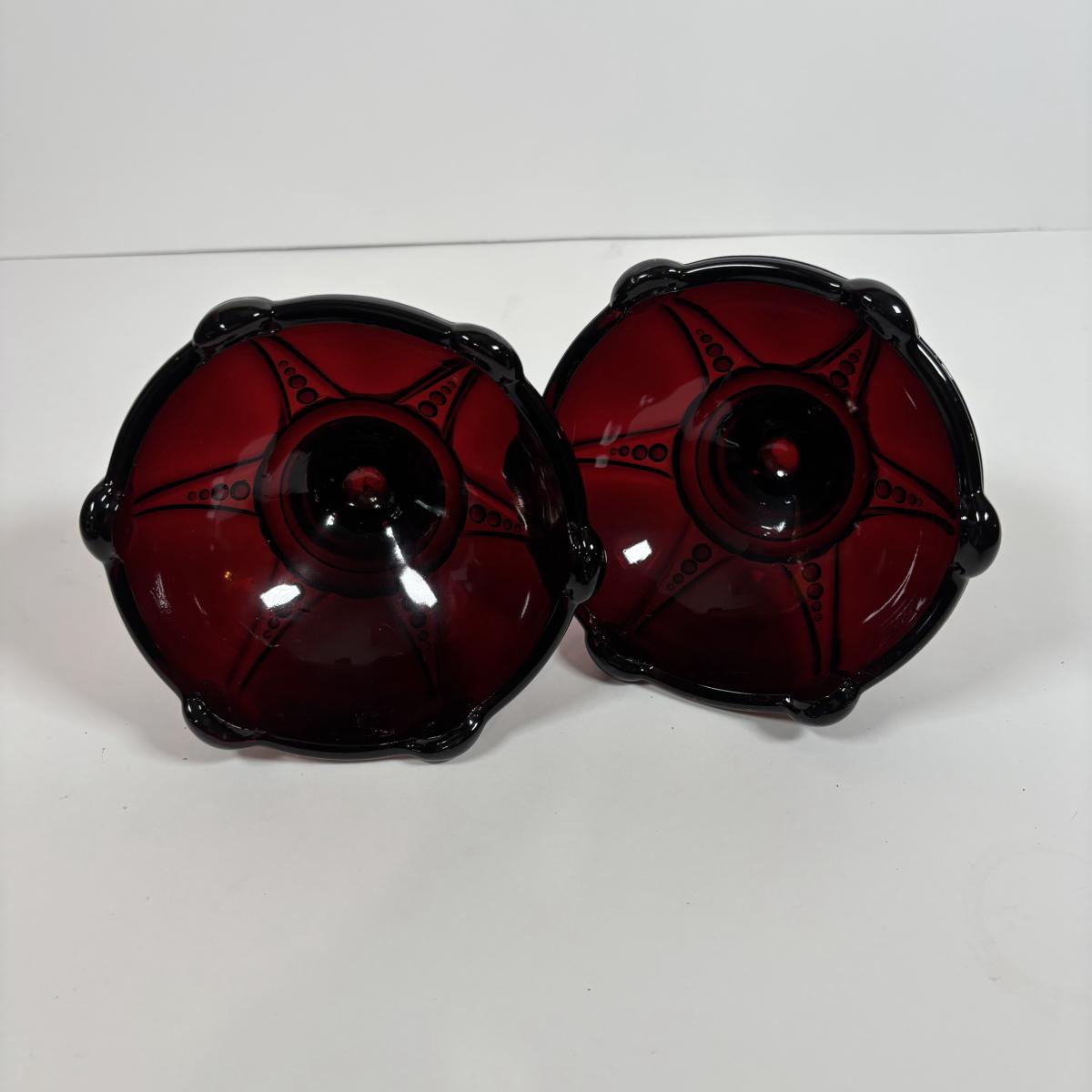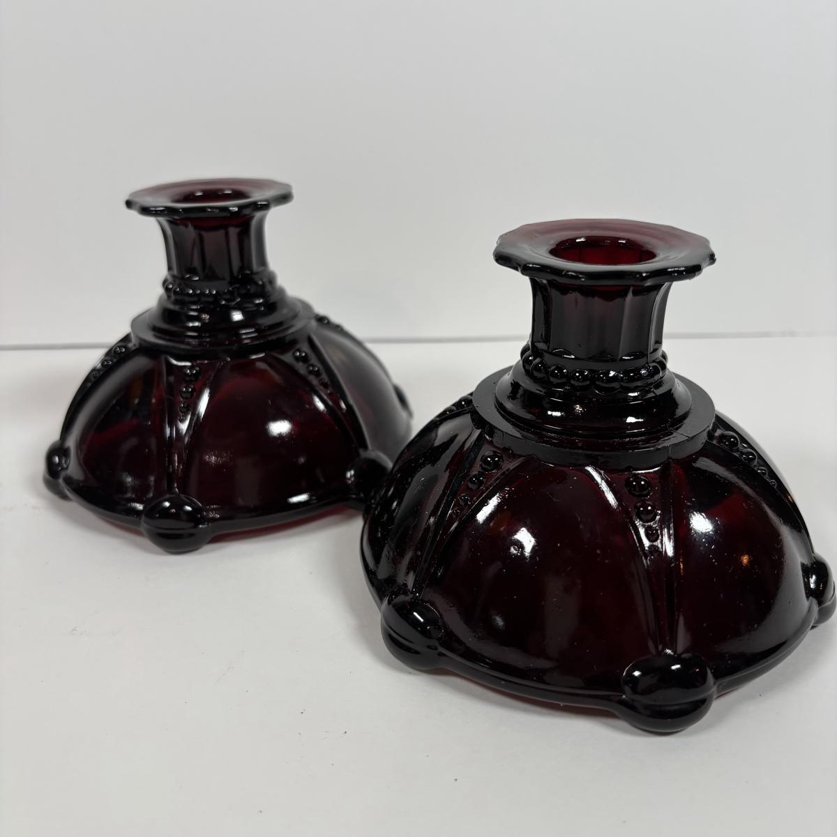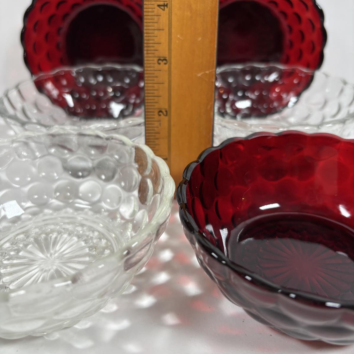 LOT 396: Ruby Red & Clear Bubble Glass Collection & "Oyster and Pearl" Style Depression Glass Candlestick Holders