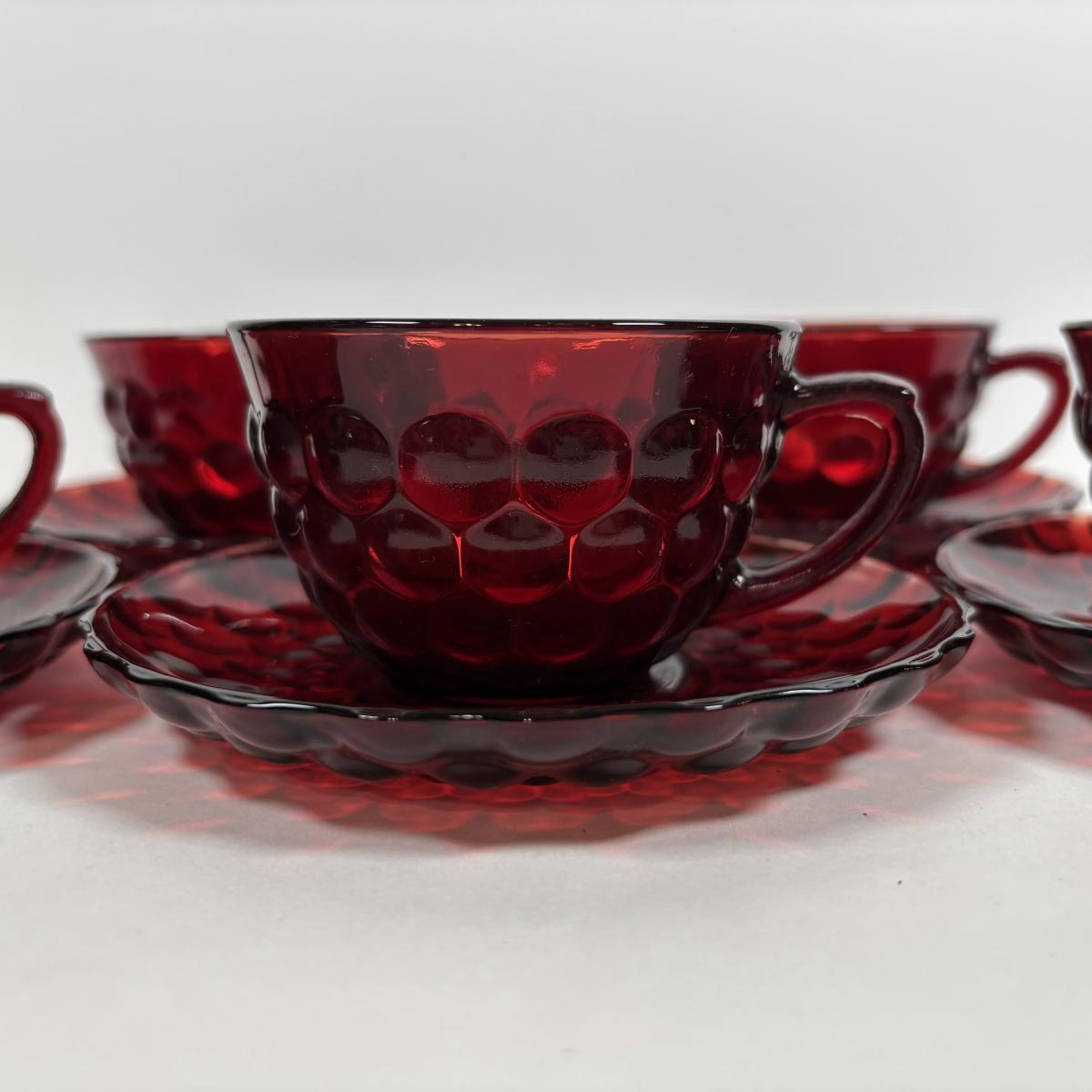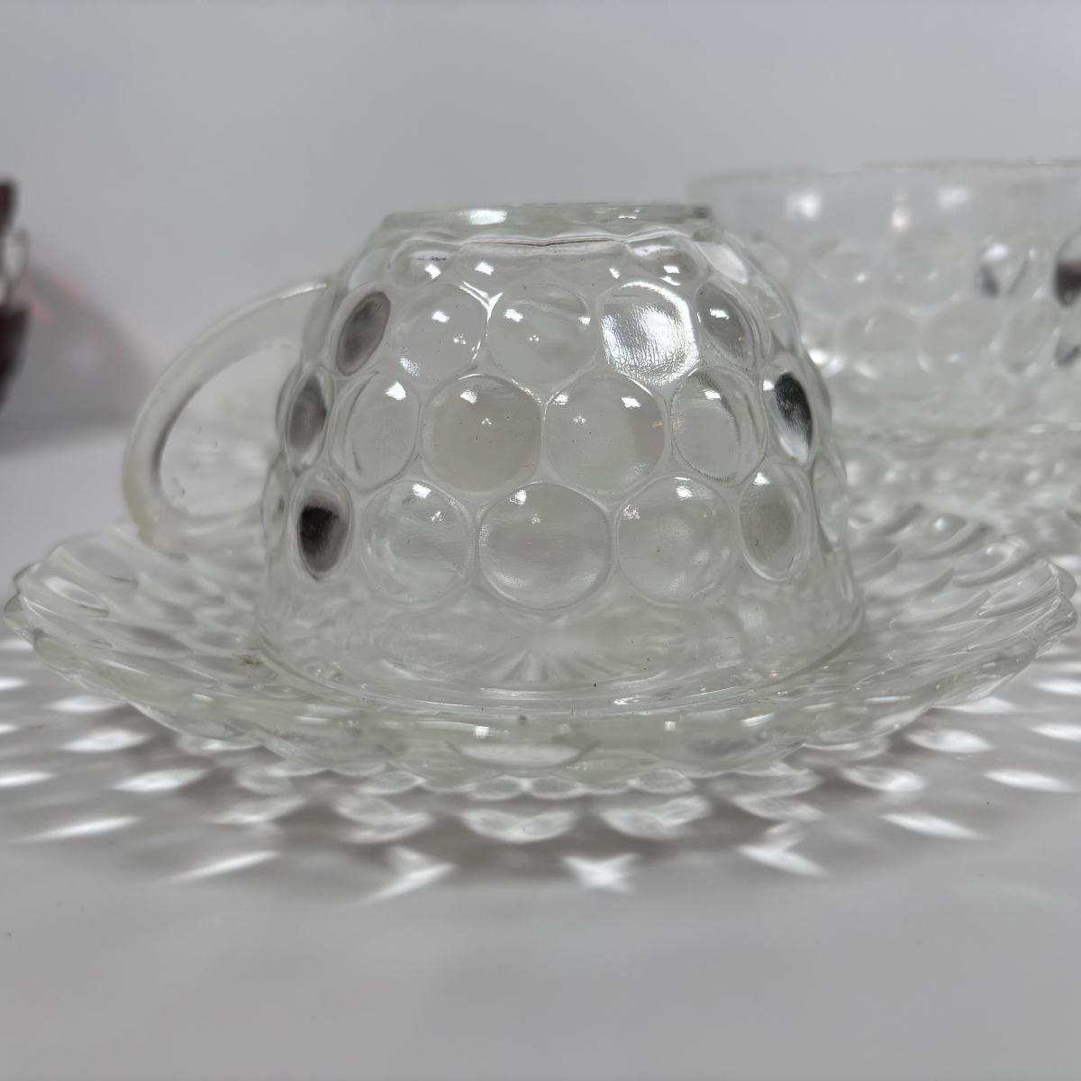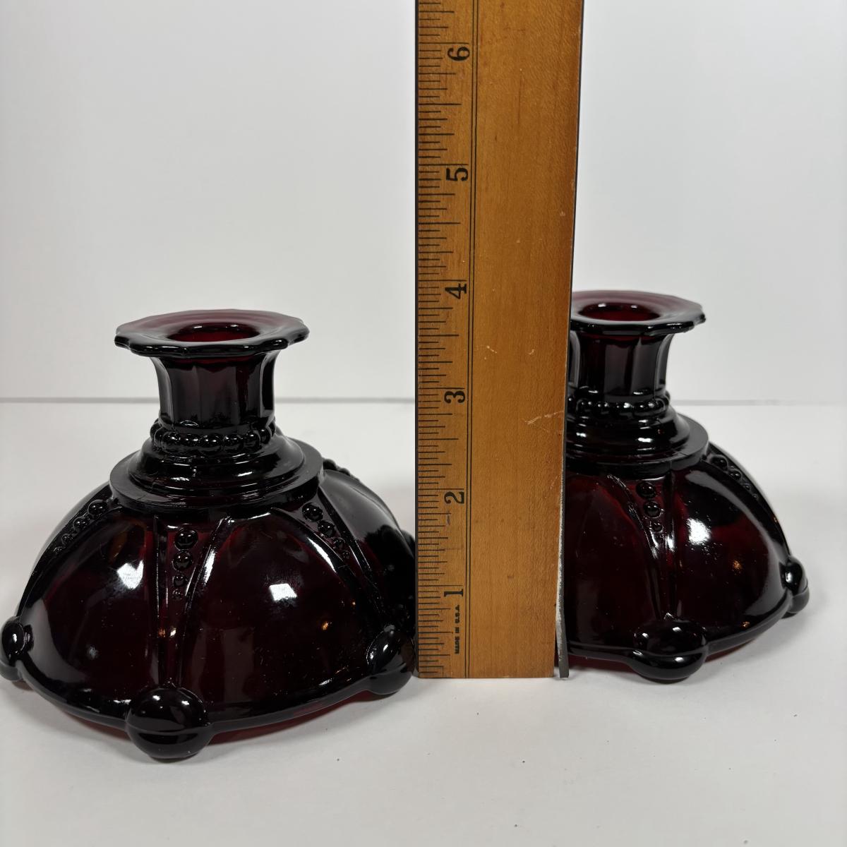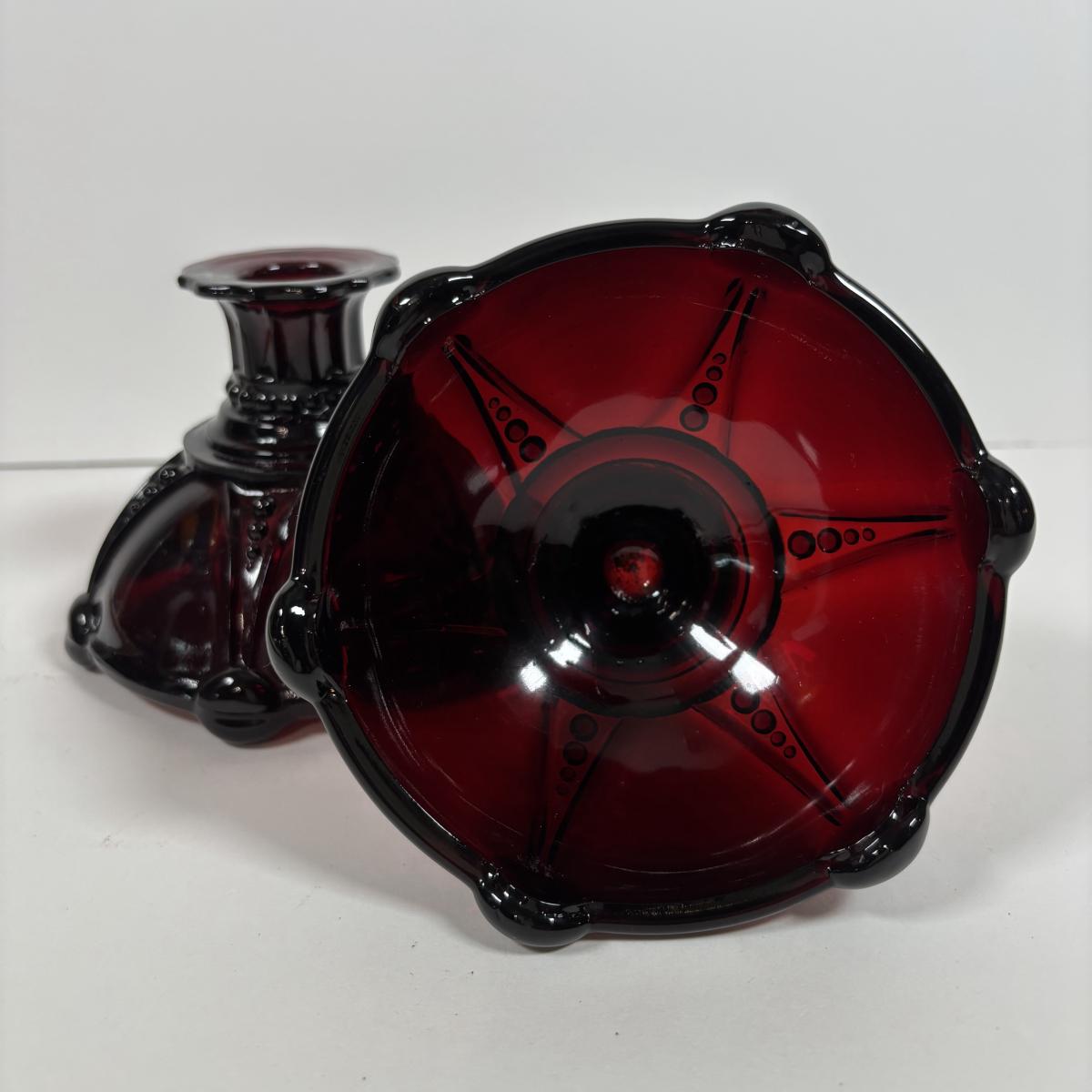 LOT 396: Ruby Red & Clear Bubble Glass Collection & "Oyster and Pearl" Style Depression Glass Candlestick Holders