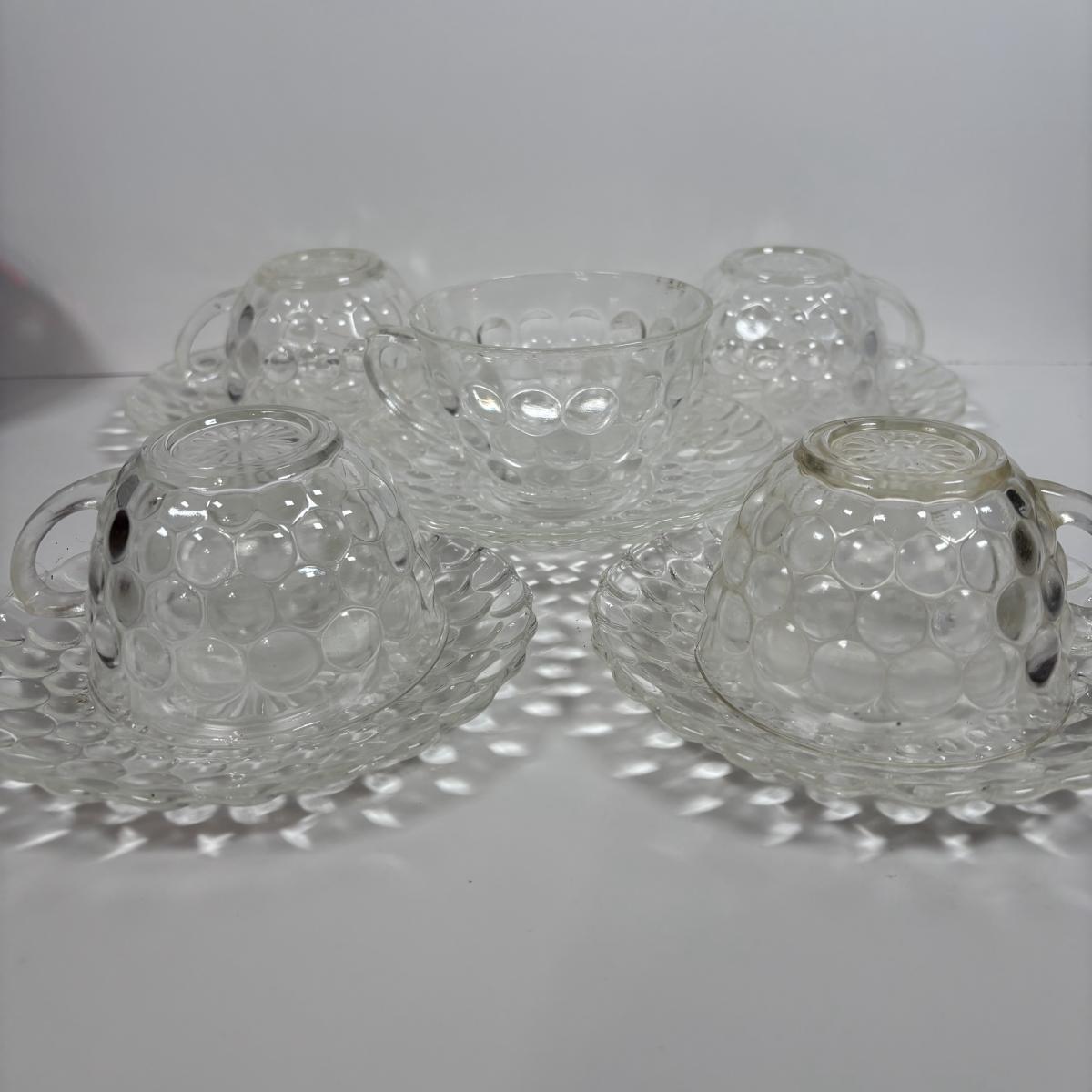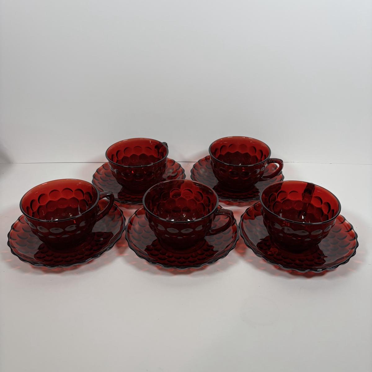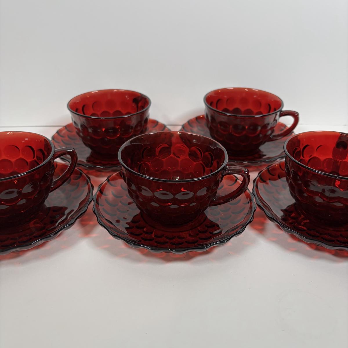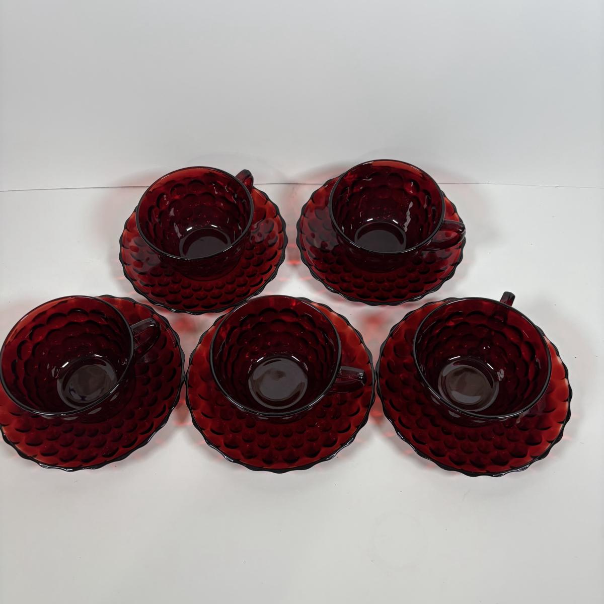 LOT 396: Ruby Red & Clear Bubble Glass Collection & "Oyster and Pearl" Style Depression Glass Candlestick Holders